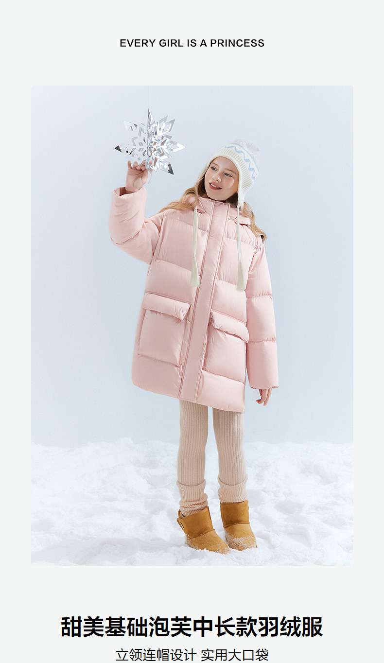 笛莎Deesha 童装女童羽绒服2025冬新款女童甜美基础泡芙中长款羽绒服