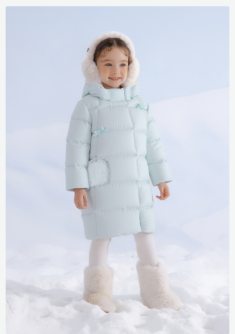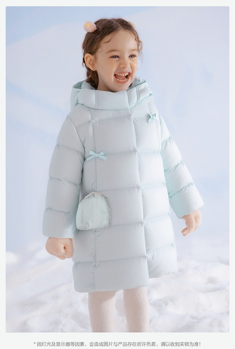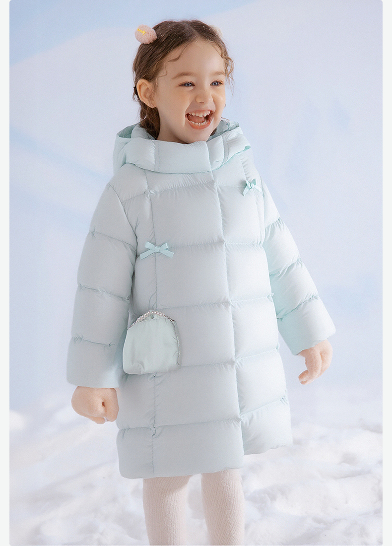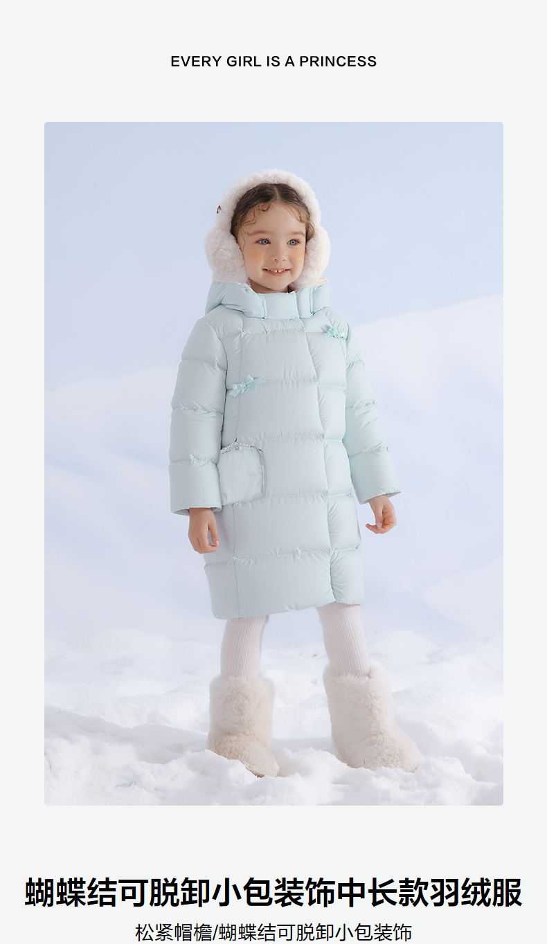 笛莎Deesha 童装女童羽绒服2025冬新款女童蝴蝶结可脱卸小包装饰中长款羽绒服