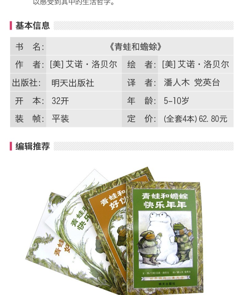 【学校指定读物】信谊世界精选儿童文学:青蛙和蟾蜍全四册