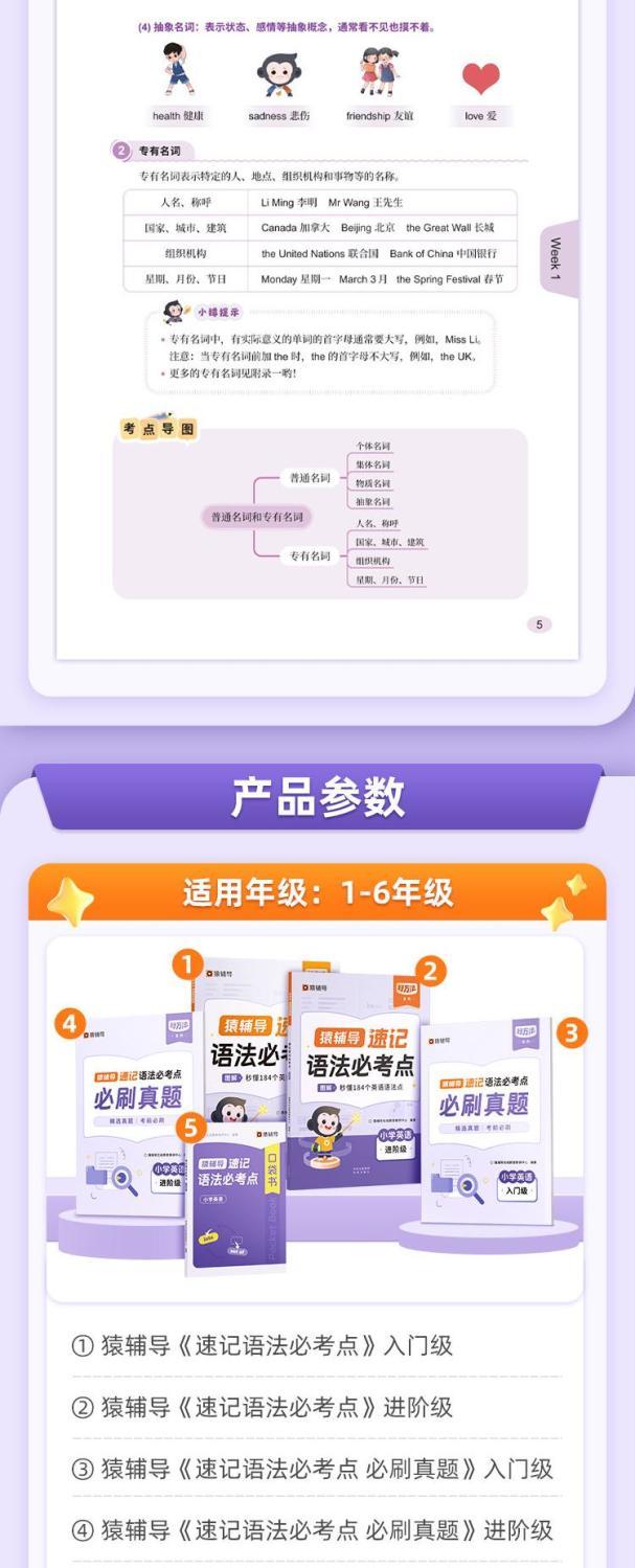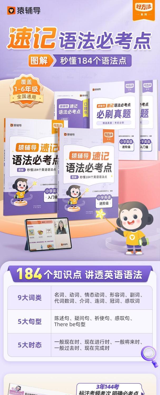 【猿辅导】1-6年级 速记语法必考点(全2册)赠真题册