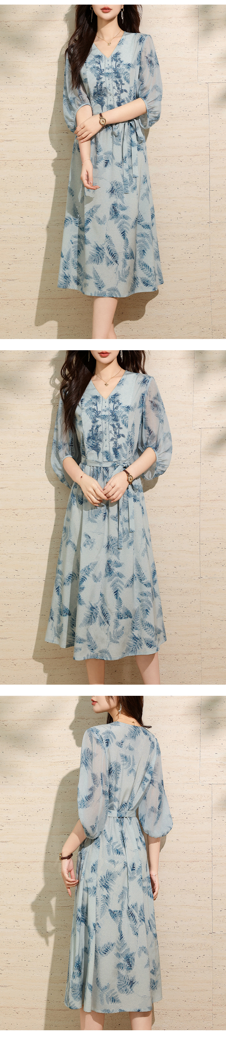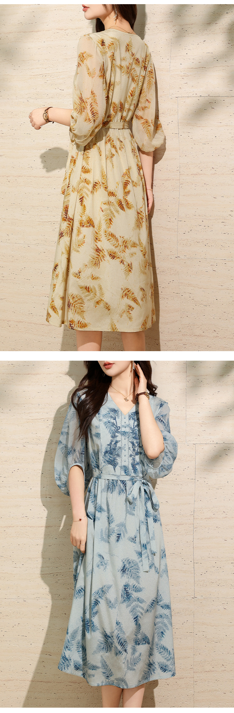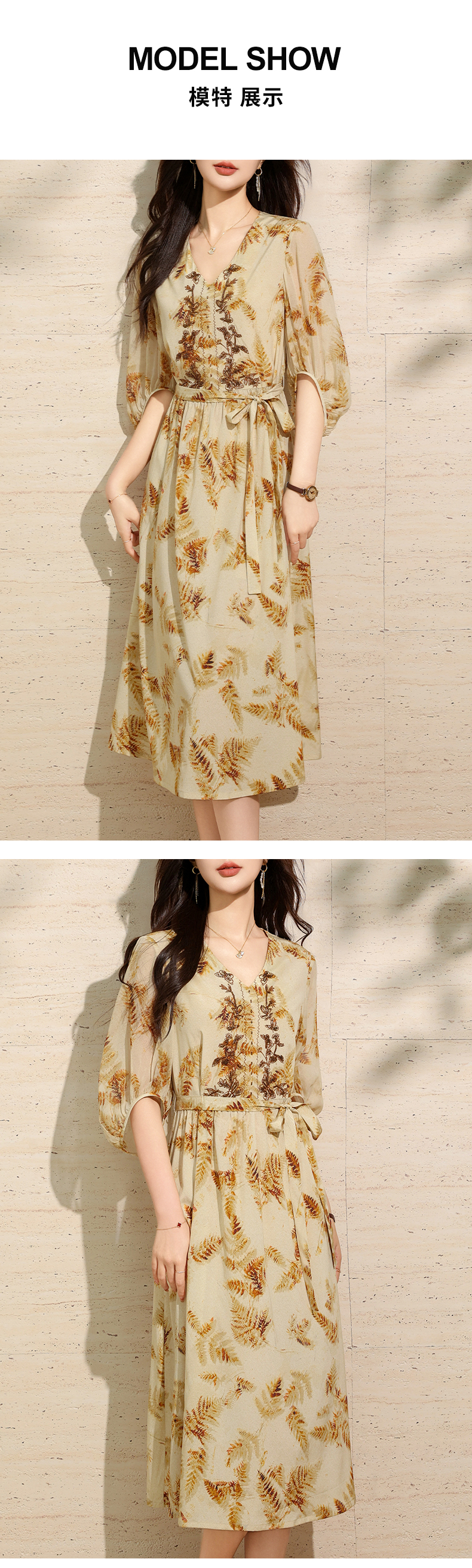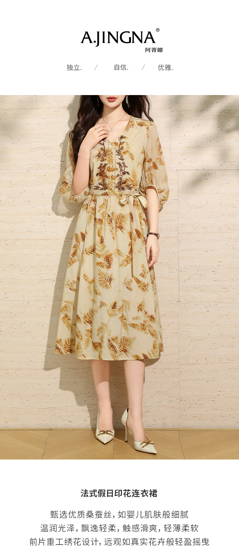 【温润光泽】阿菁娜法式假日印花连衣裙F30X212085