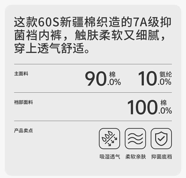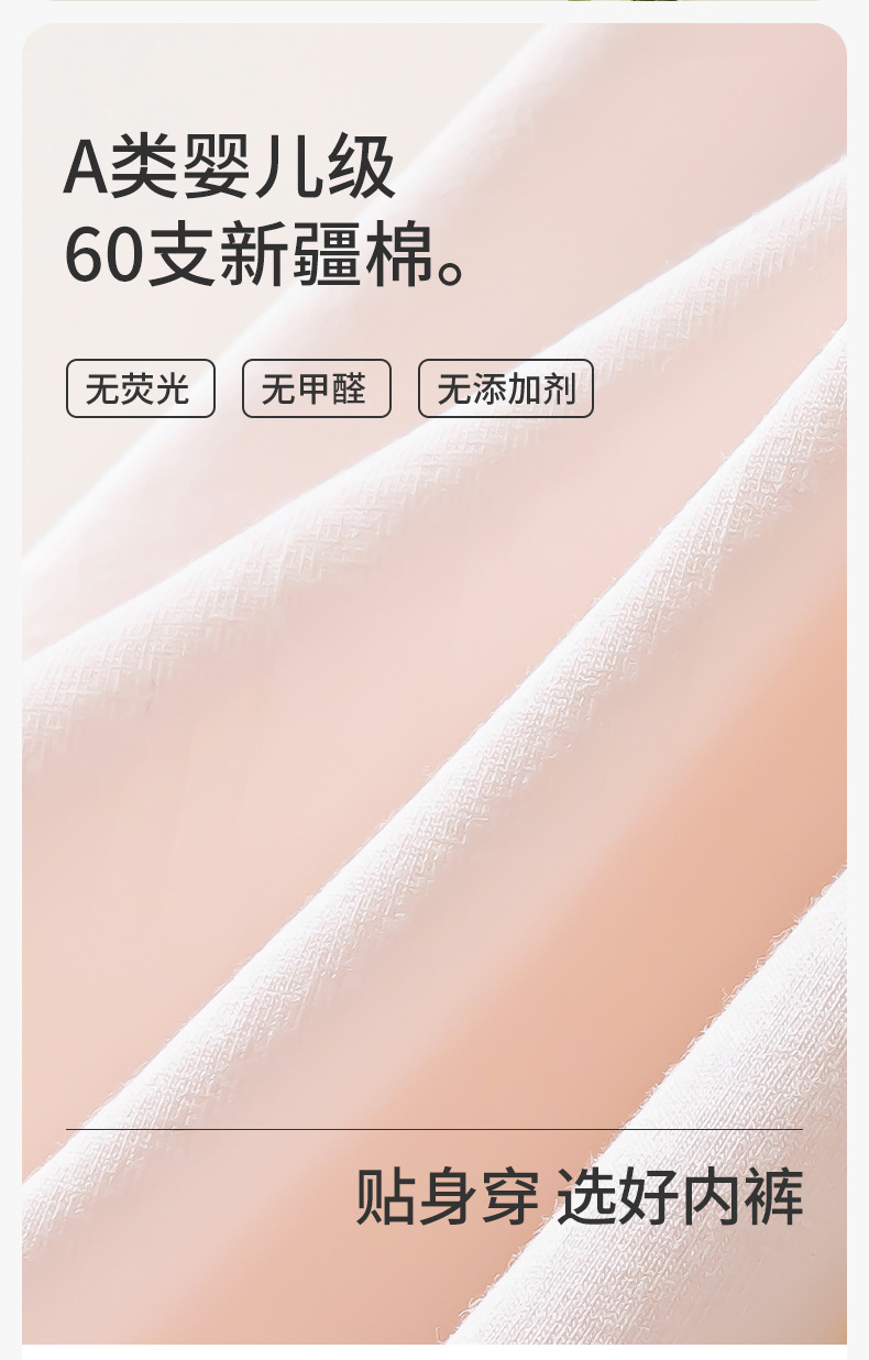 【39.9元3条】7A抗菌婴儿棉内裤 60支纯棉全棉裆中腰无痕内裤