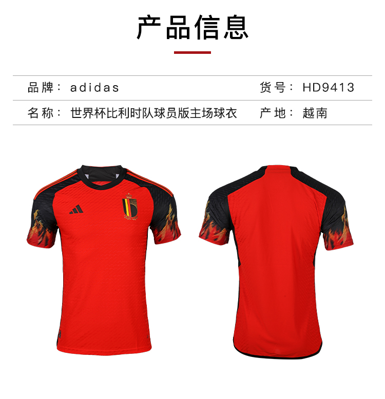 ADIDAS/阿迪达斯RBFA H JSY AU2022世界杯比利时队球员版主场比赛球衣HD9413