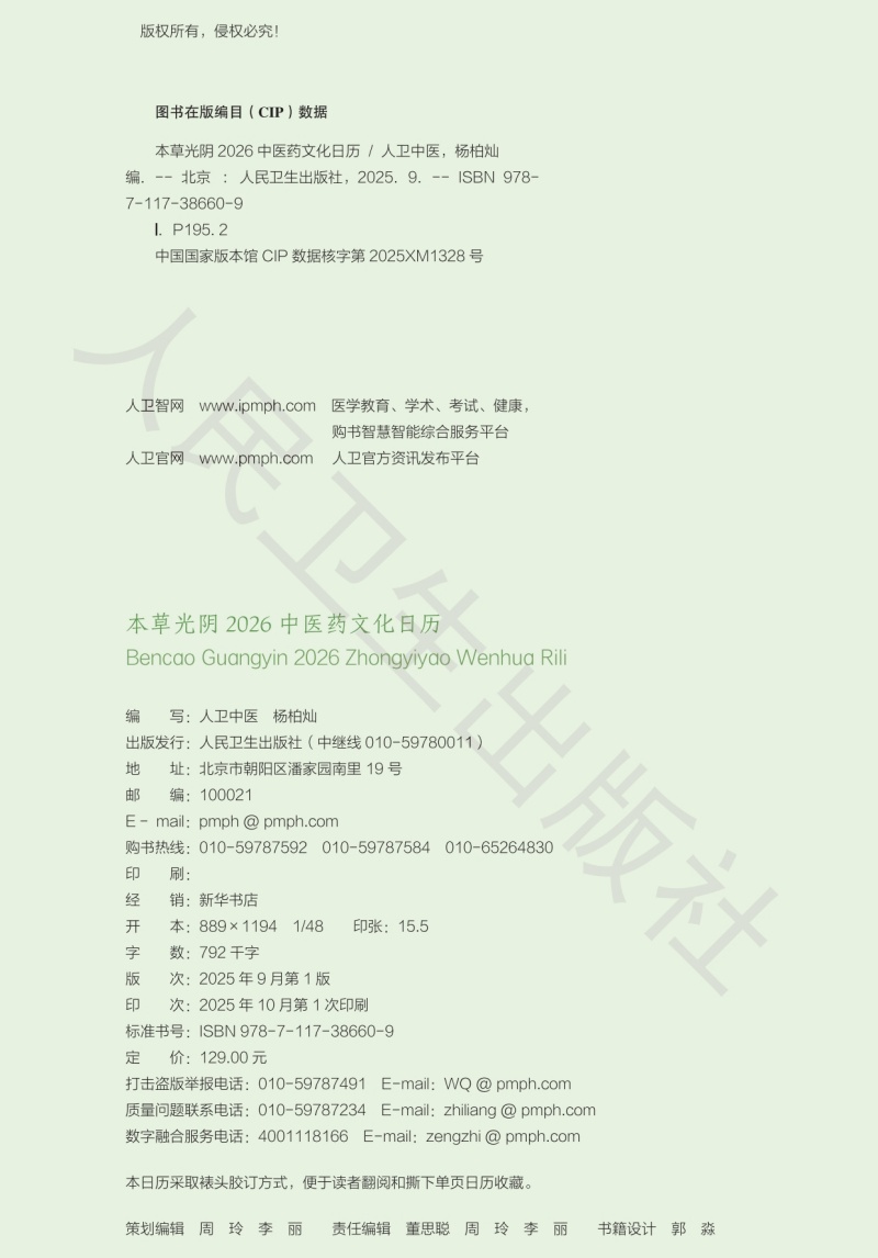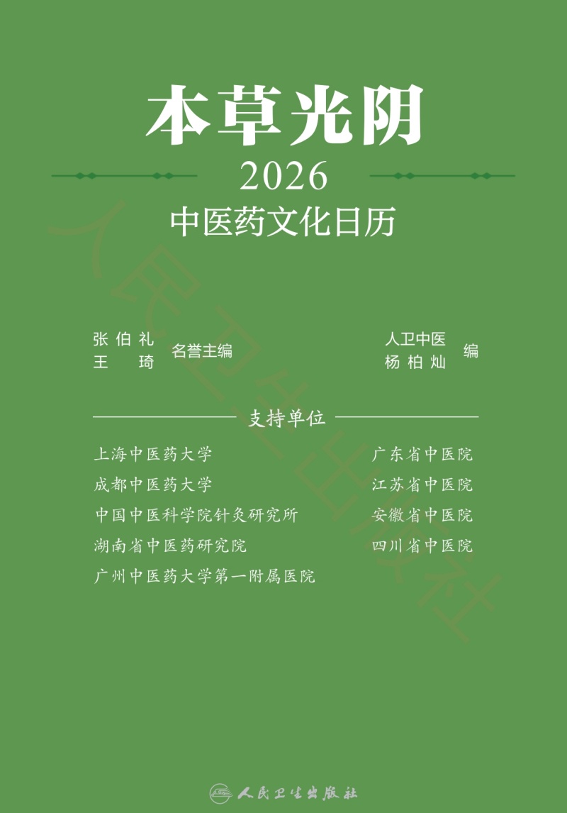 本草光阴2026中医药文化日历 人卫中医 杨柏灿 包括本草知识传统节日文化二十四节气养生与导引养生药膳与茶饮等 人民卫生出版社