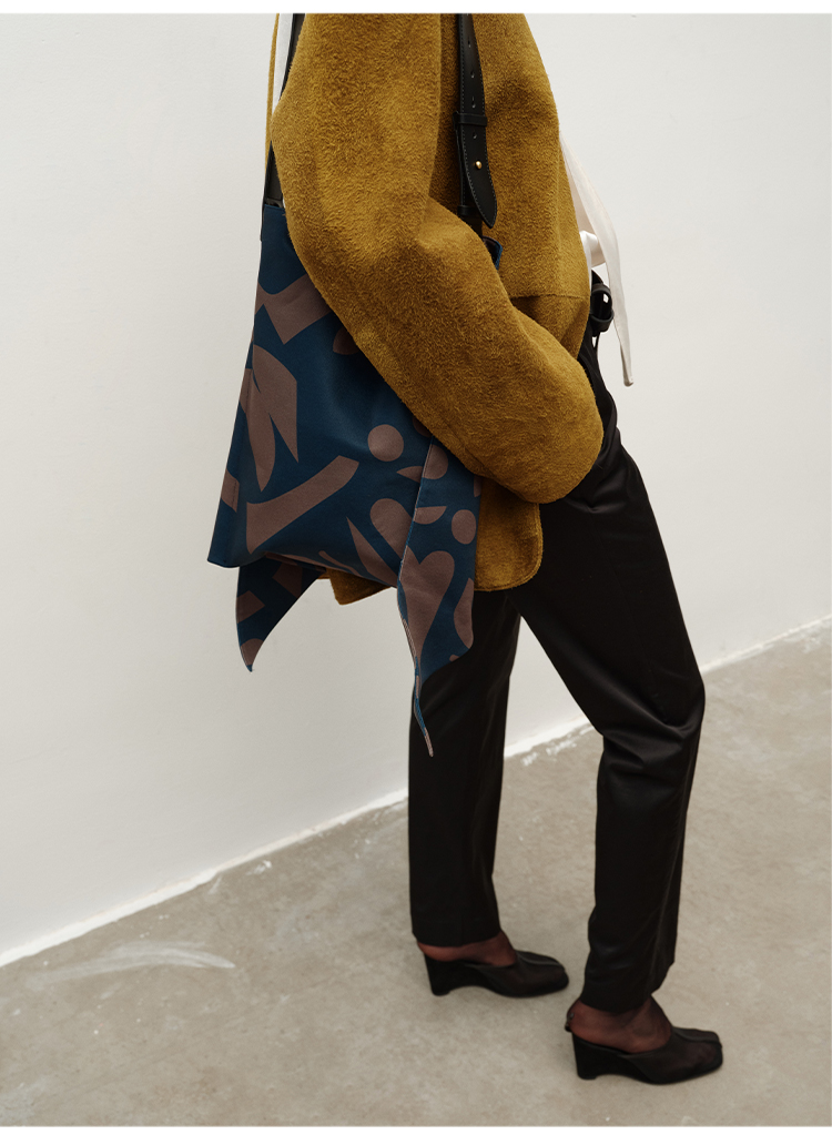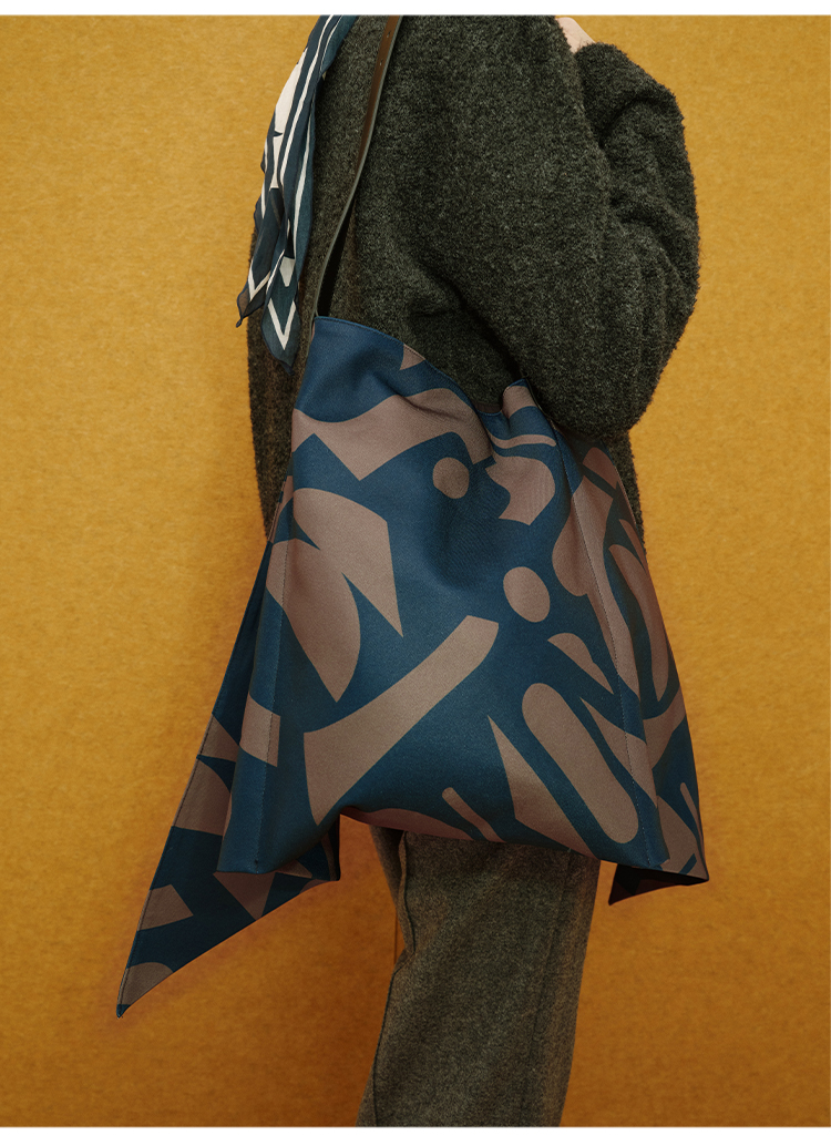 HIDEMI 我们做印花系列手绘纯原创抽象几何感艺术油画印花设计感缎面背包