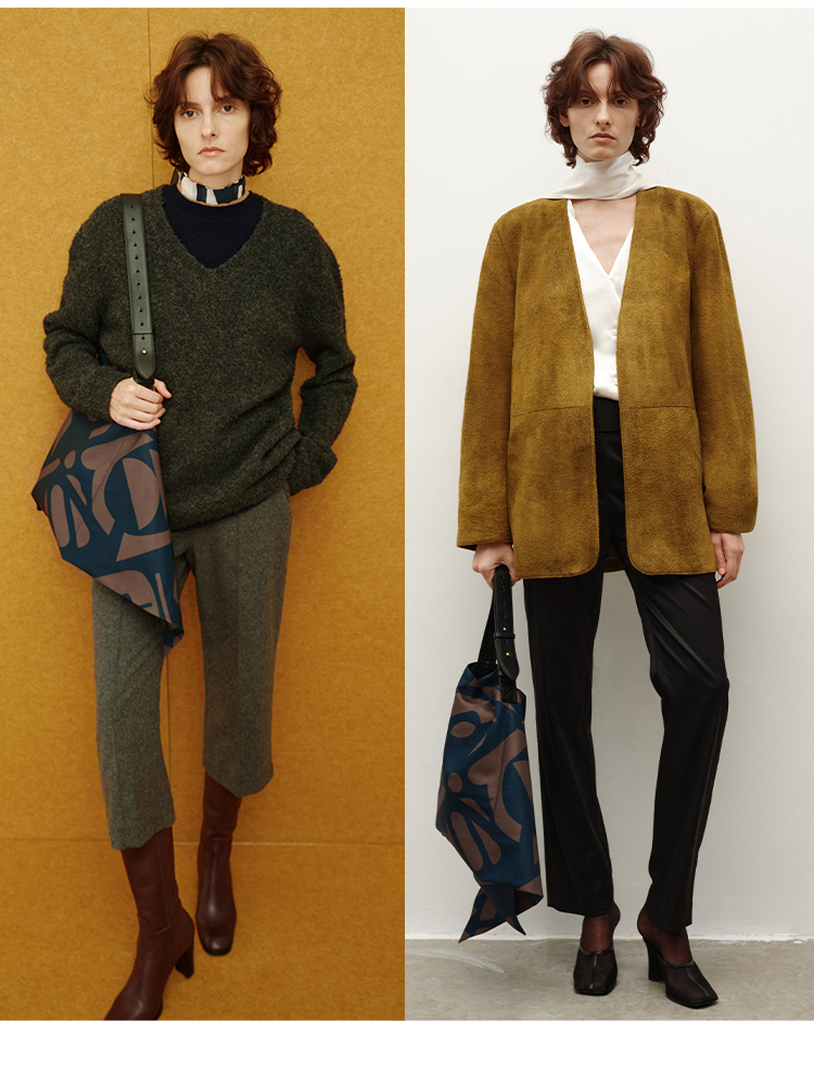 HIDEMI设计感水桶包中号/大号 帆布拼皮