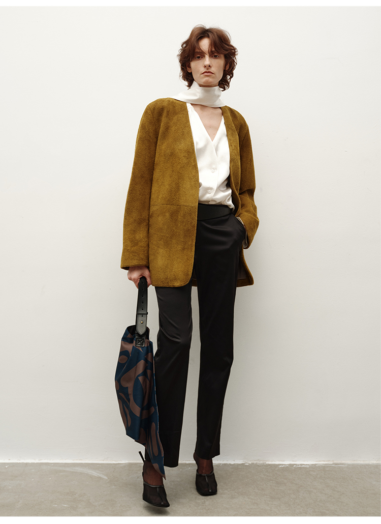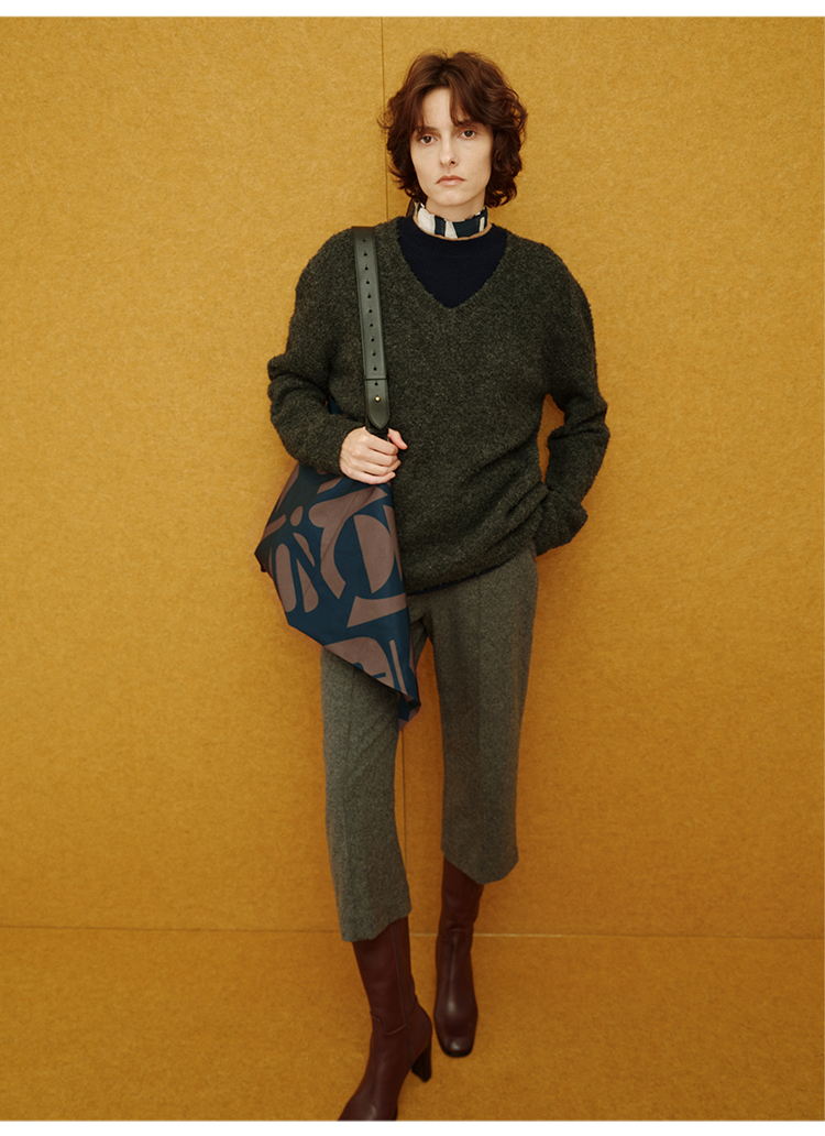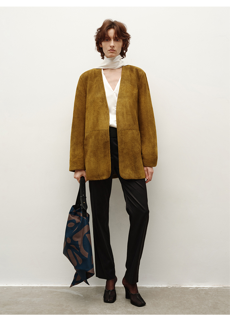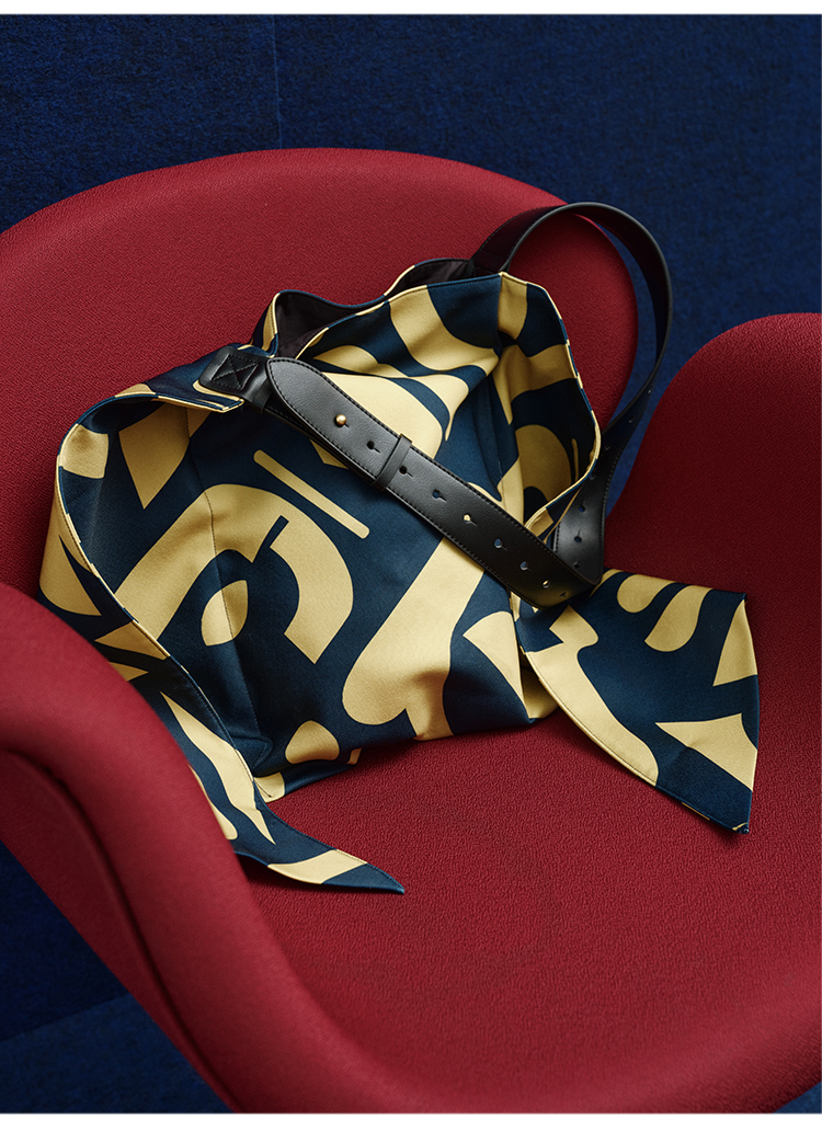 HIDEMI “我们做印花”特殊纸感几何桌椅剪影式印花廓形衬衫