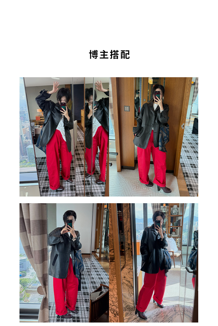 HIDEMI 简约设计感微荡立领半袖廓形套装 黑色/白色 上衣/半身裙