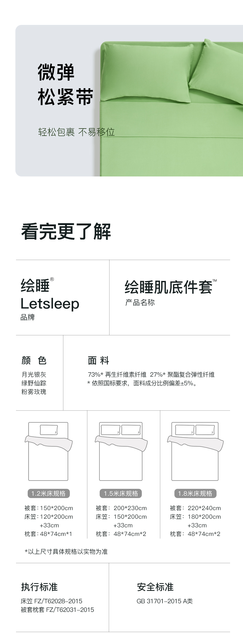 【CHAO柔软!】Letsleep/绘睡裸感肌底4件套,A类kang菌亲肤吸汗