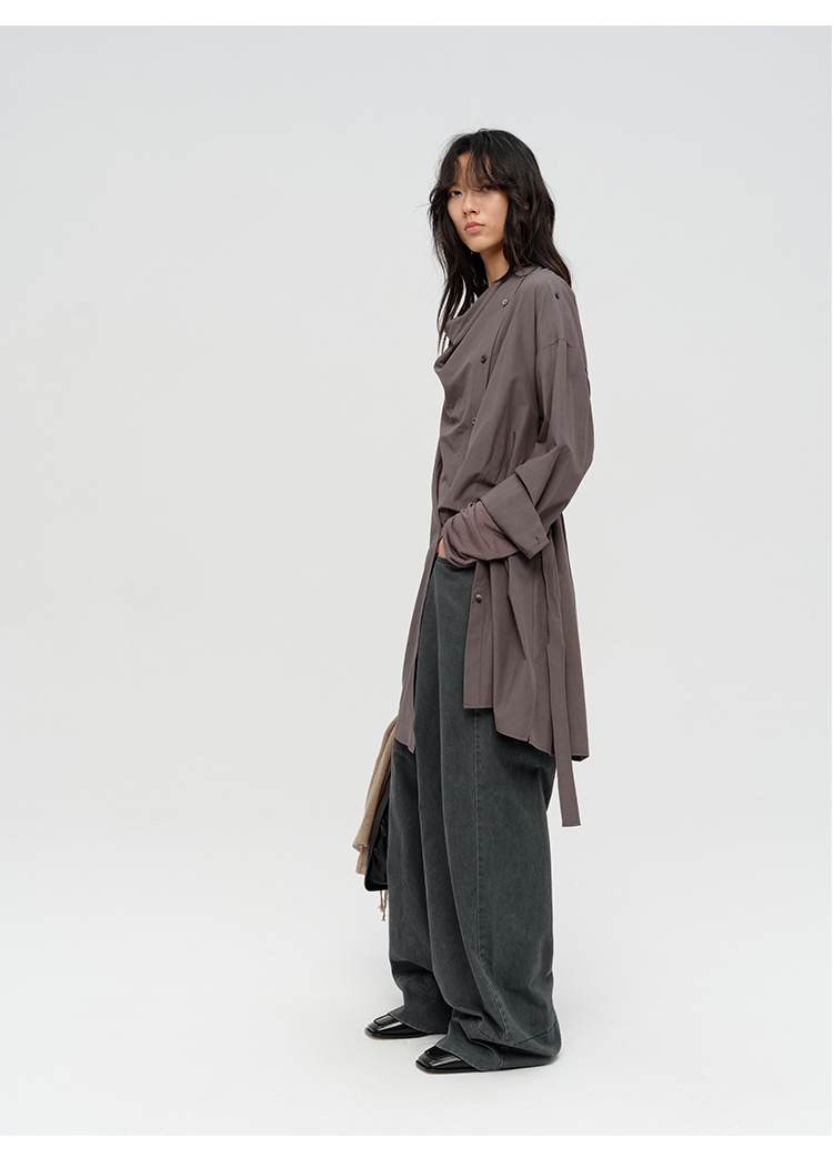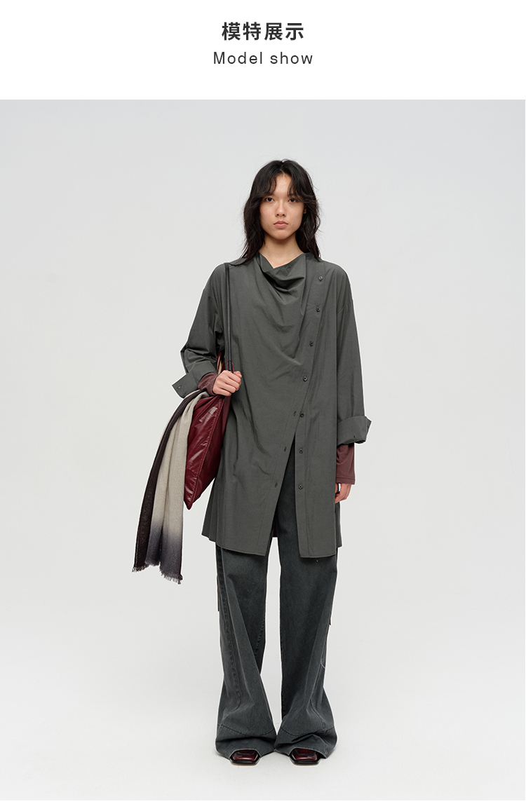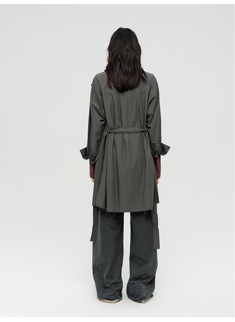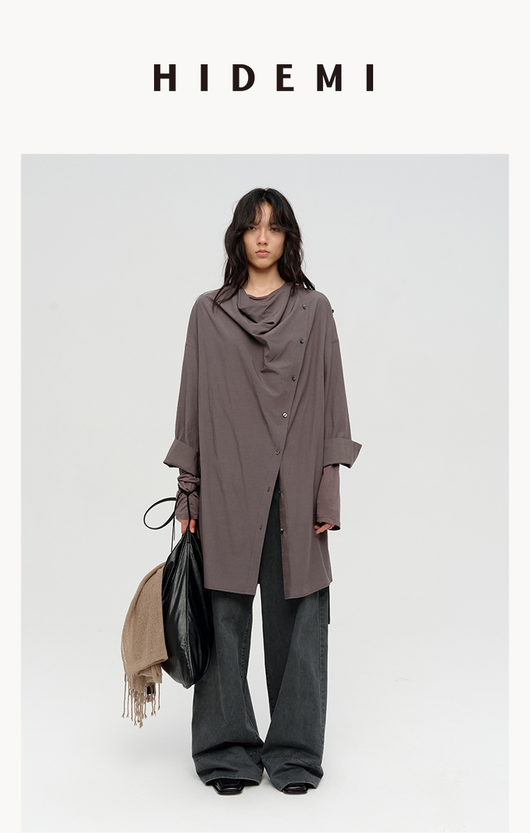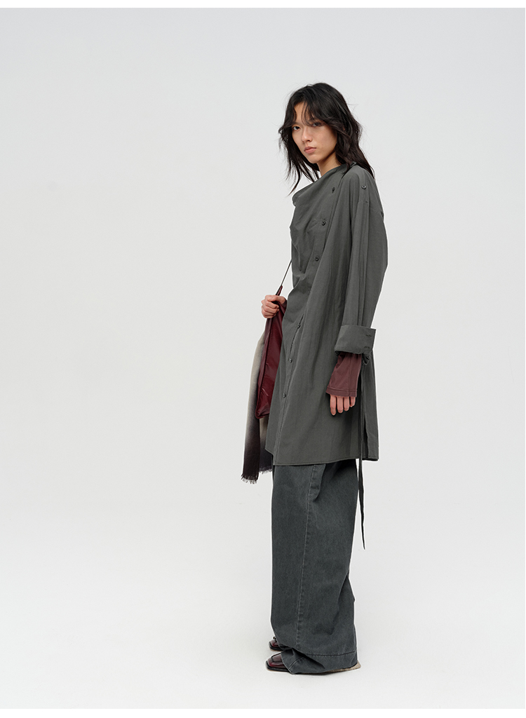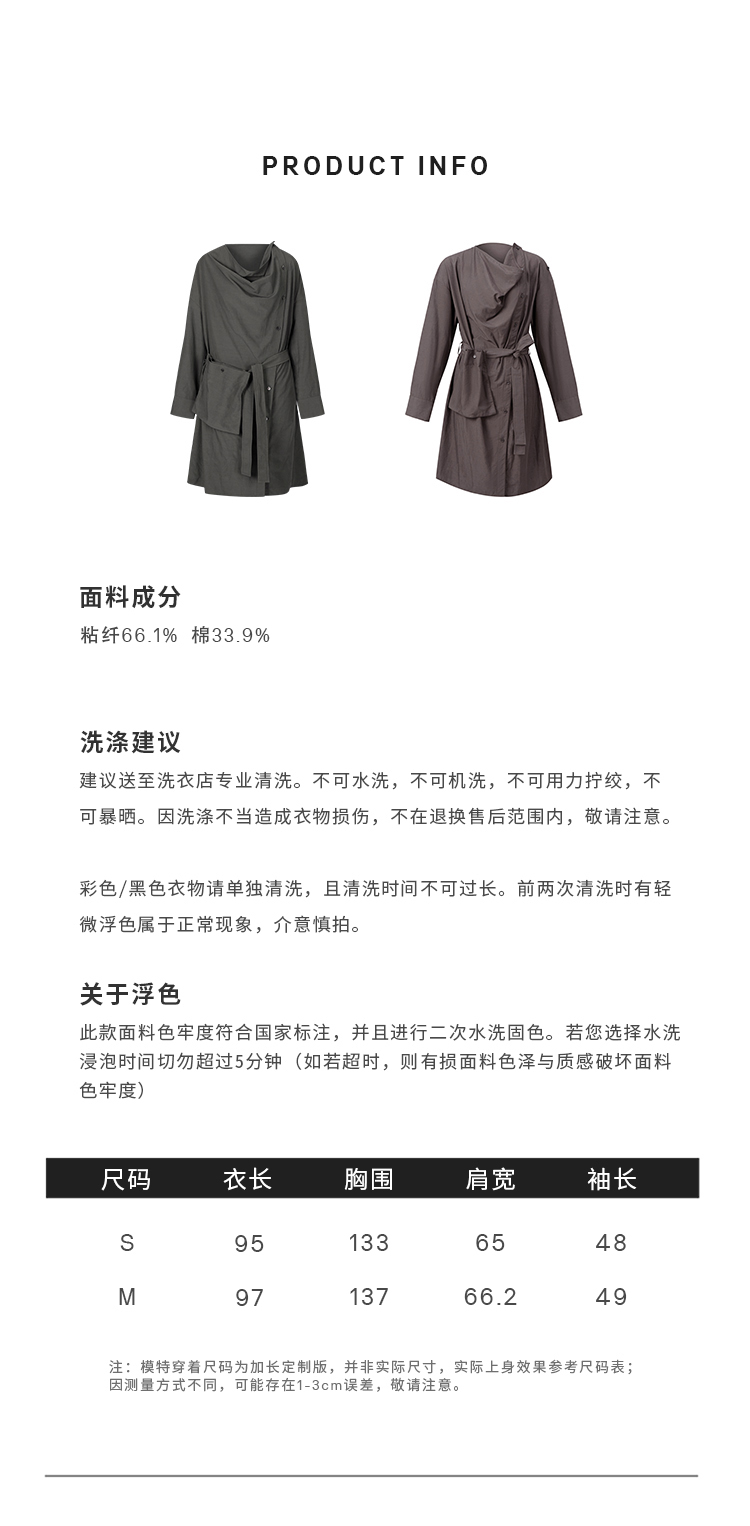 HIDEMI 极简设计感不对称纽扣门襟可拆卸腰包多穿式薄外套中长款上衣 赭石红/雾霾蓝灰
