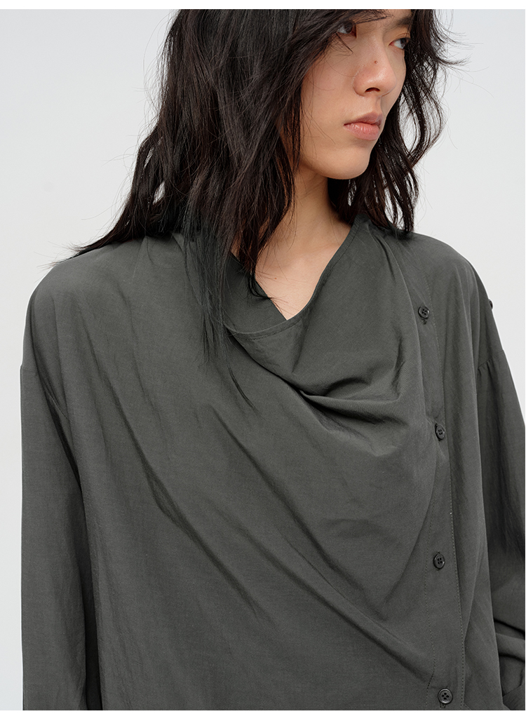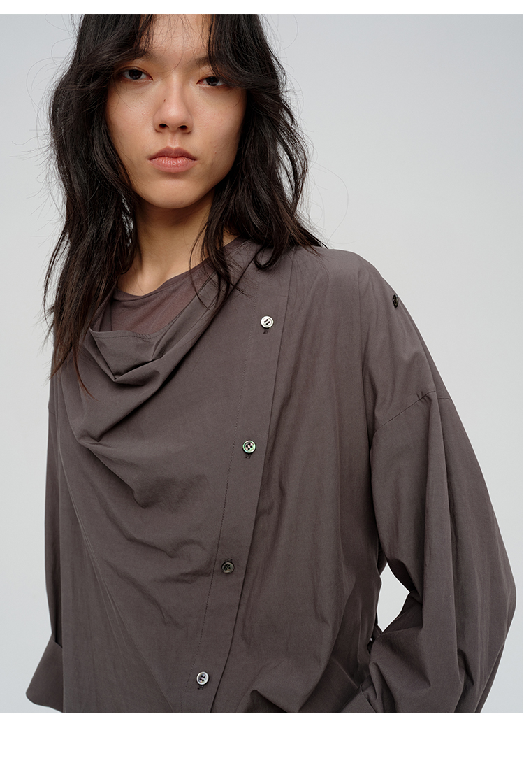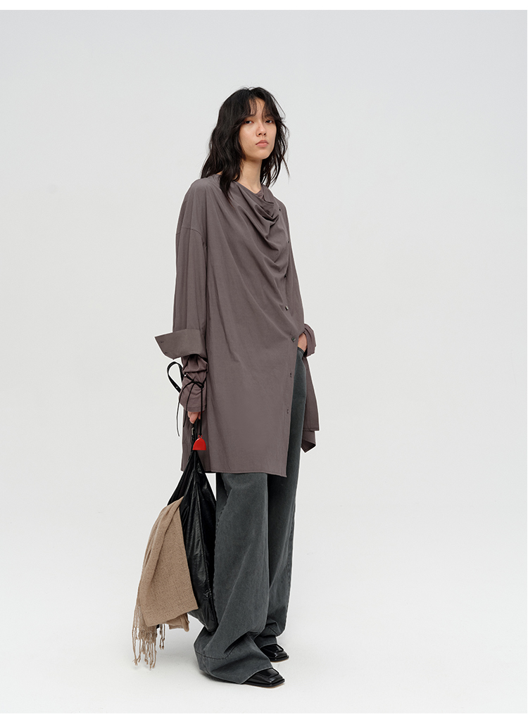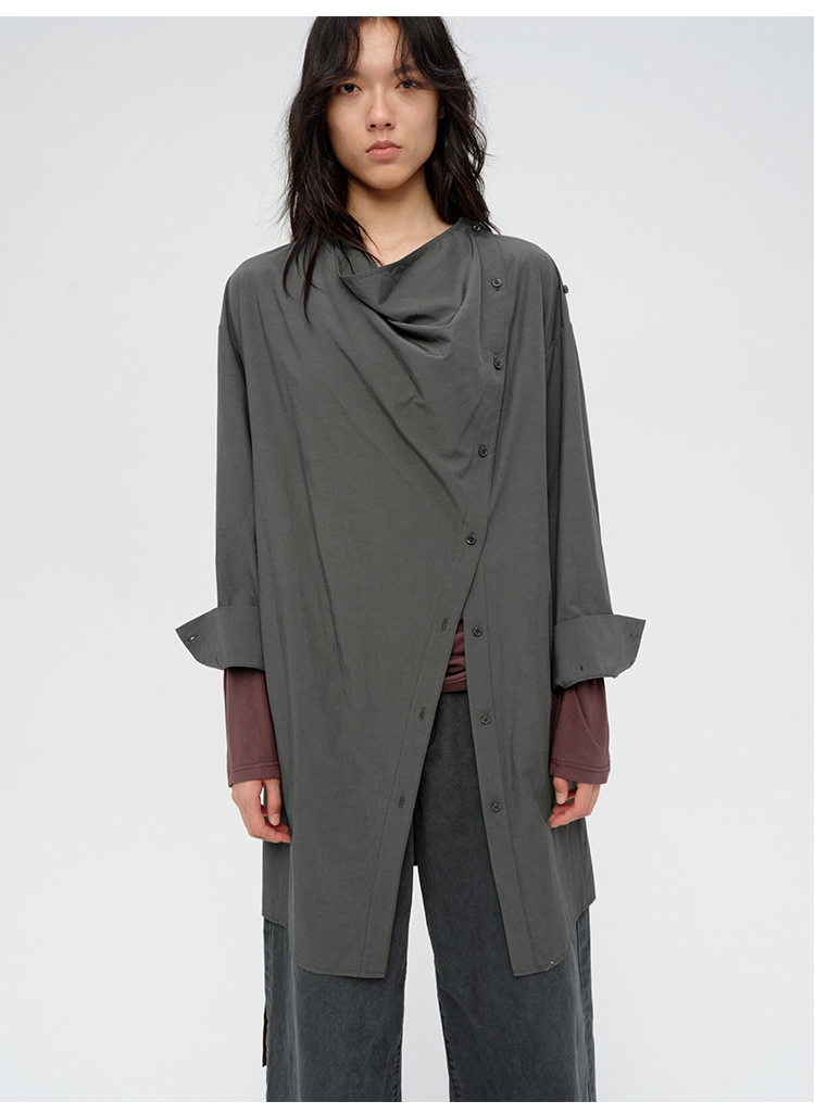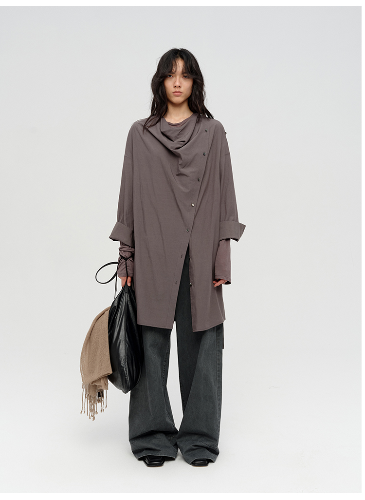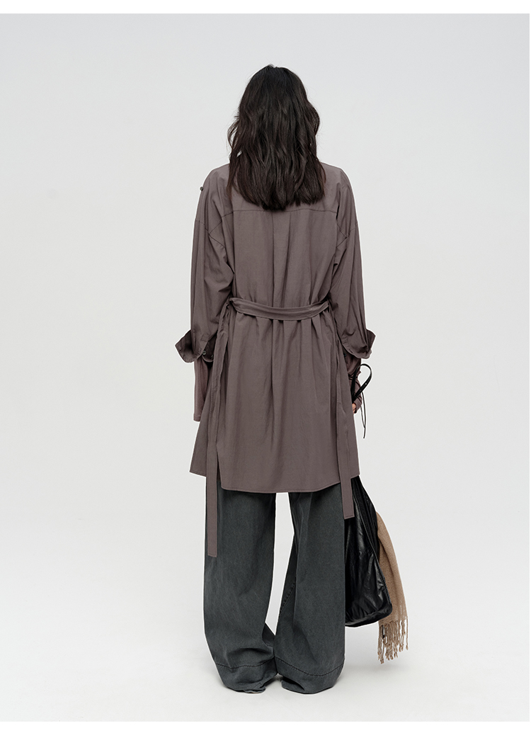 HIDEMI 极简设计感不对称纽扣门襟可拆卸腰包多穿式薄外套中长款上衣 赭石红/雾霾蓝灰