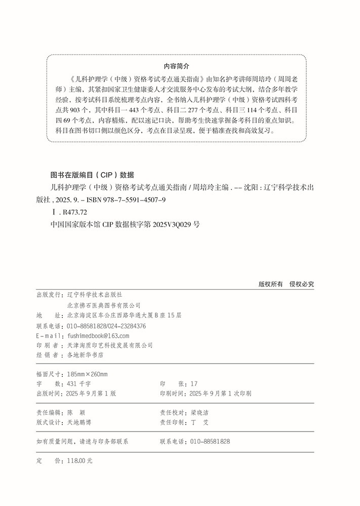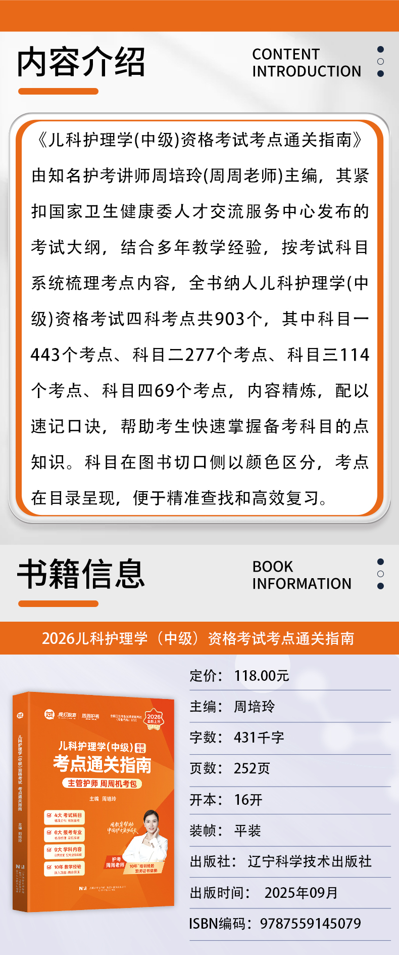 2026儿科护理学(中级)资格考试考点通关指南 全国卫生专业技术资格考试 周培玲 专业代码372 9787559145079 辽宁科学技术出版社