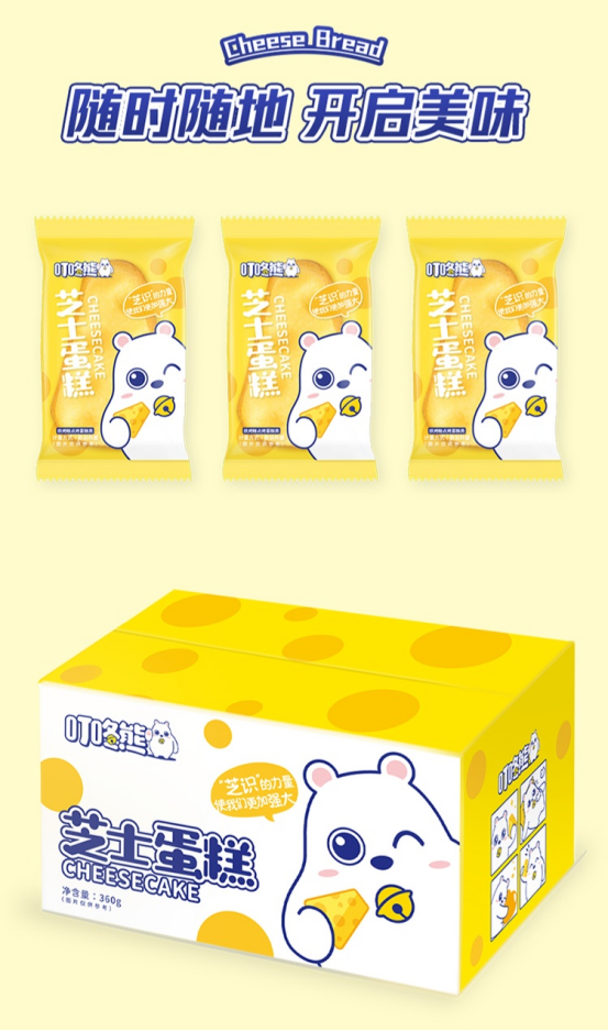 叮咚熊芝士蛋糕 浓浓芝士香 鲜香软嫩 丰富口高 唇齿留香 蛋糕恋上芝士 每一块都是美味松软 香浓的爱意沉浸在芝士的丝滑 留住蛋糕的香醇 感受芝士在舌尖融化的美味 甄选美味 真材实料 让你爱上芝士~