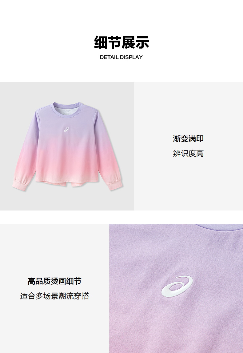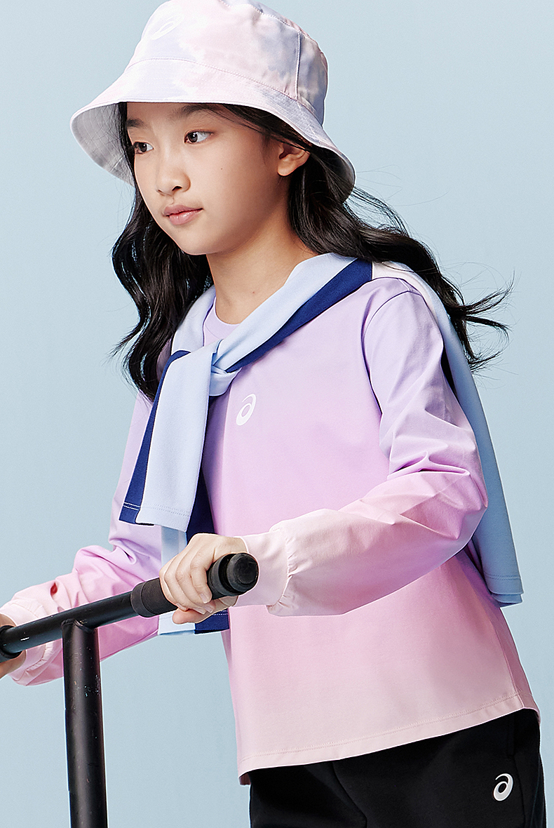 【商场同款】ASICS/亚瑟士儿童2026新款渐变满印女童长T吸湿速干