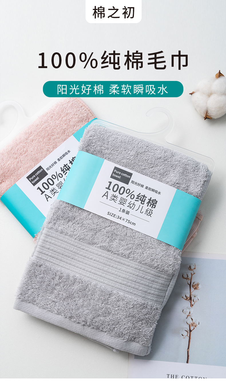 棉之初100%纯棉毛巾(霞光粉-月光灰)(240744-240745)