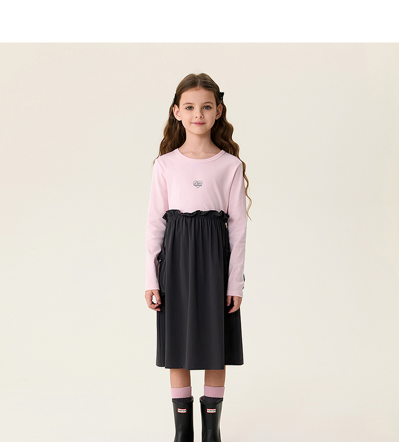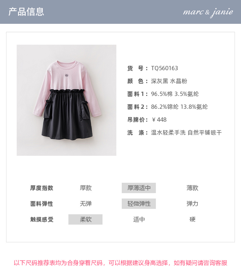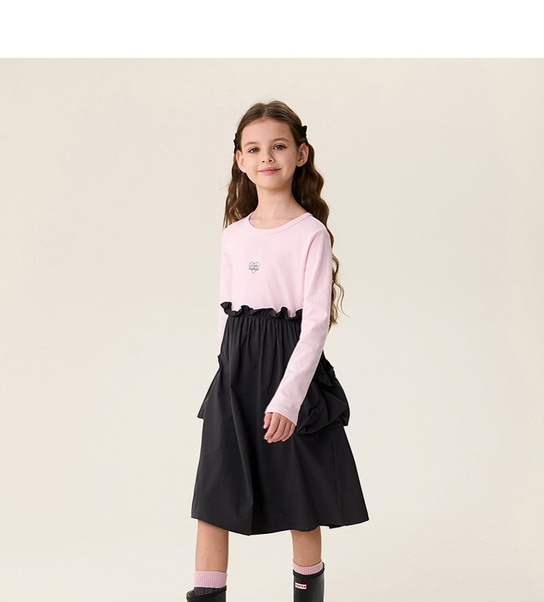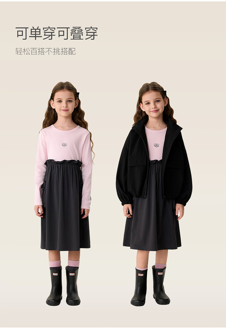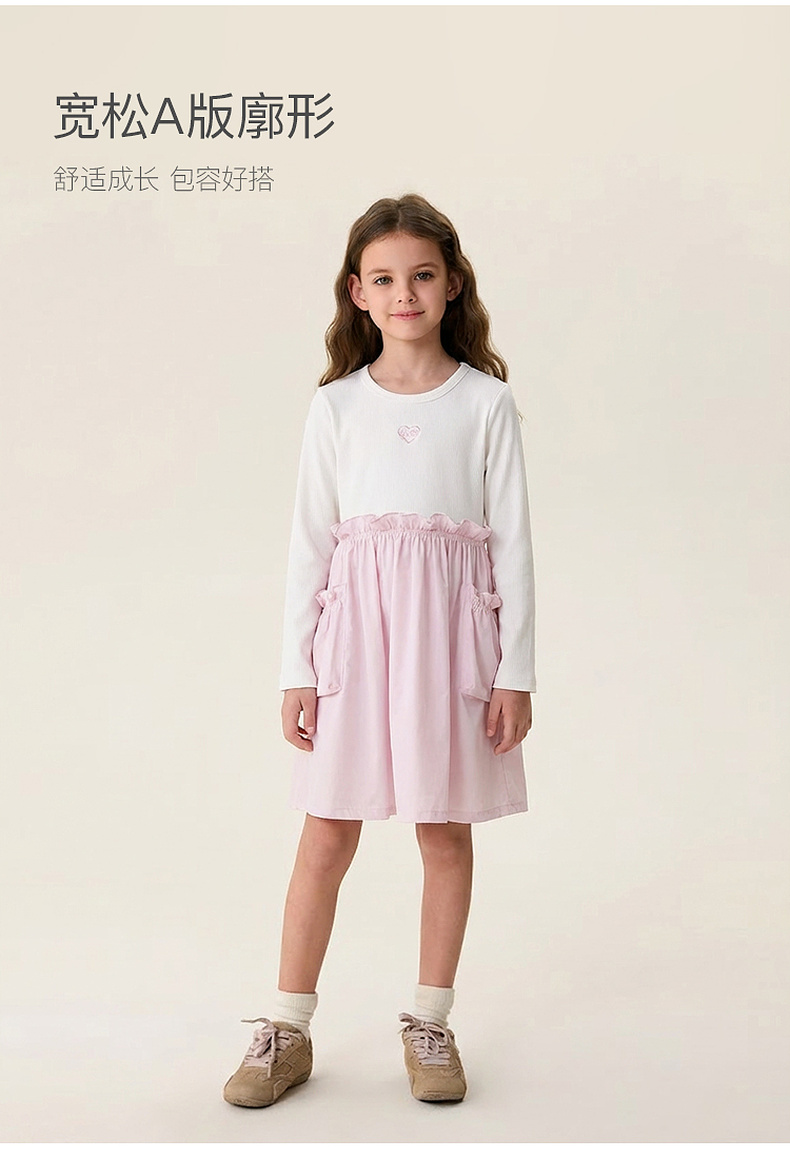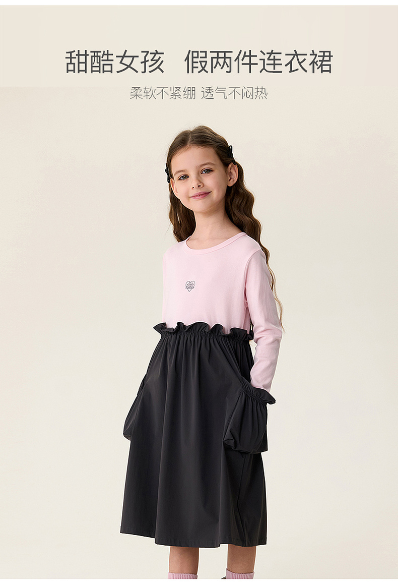马克珍妮甜酷女孩女童花边假两件连衣裙2026年春装新款560163