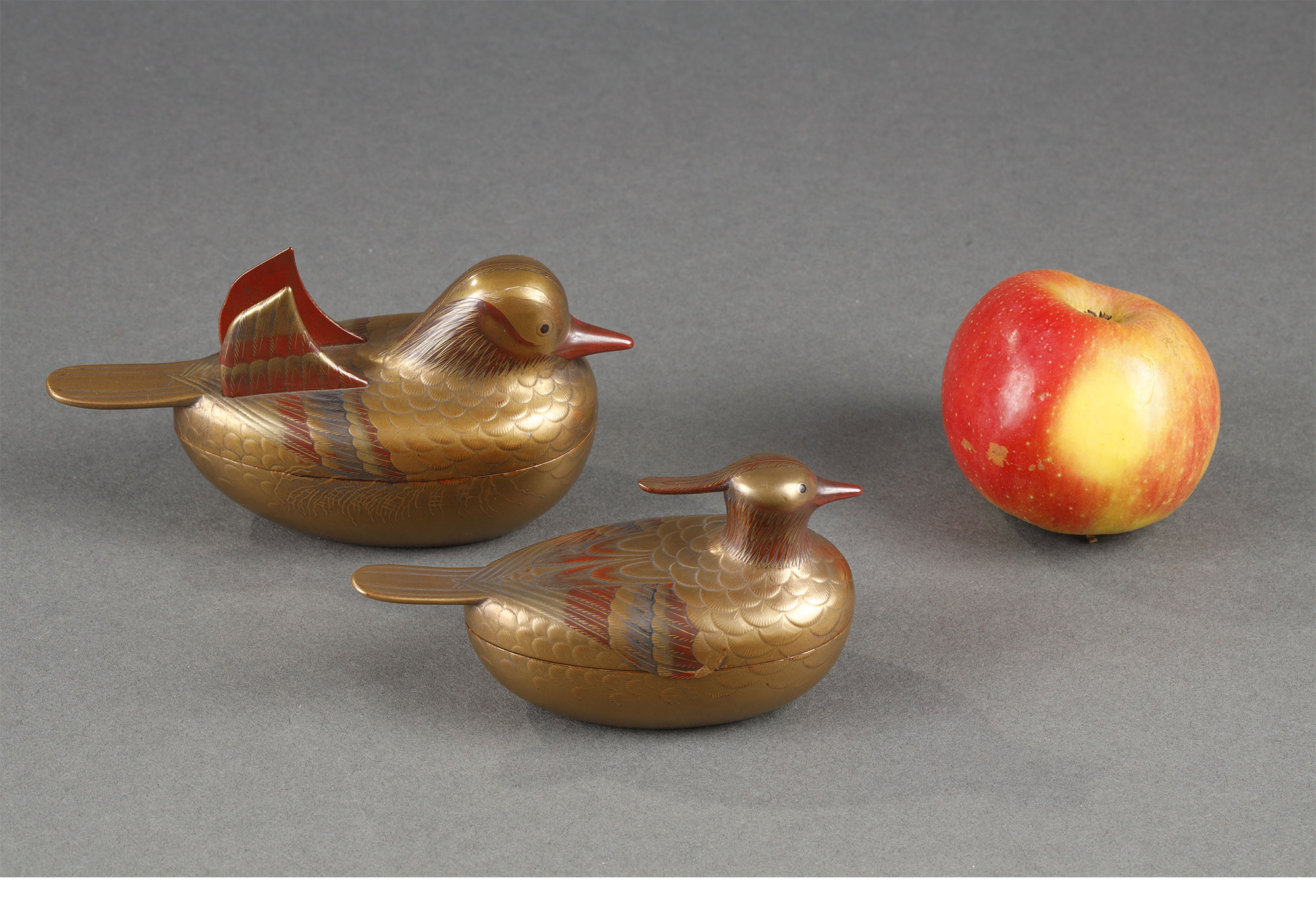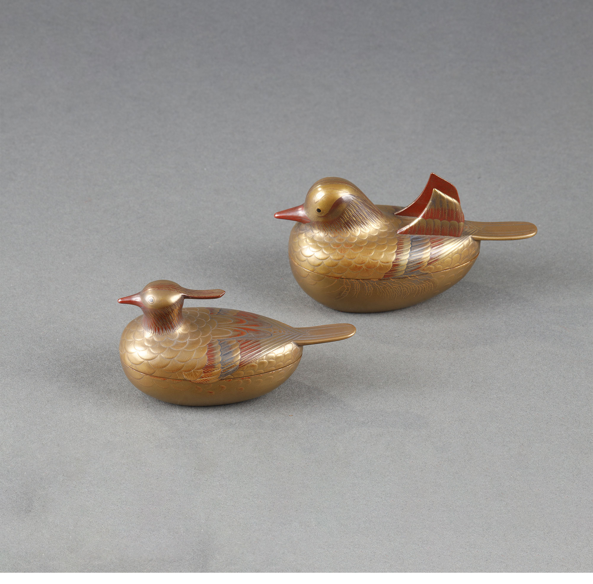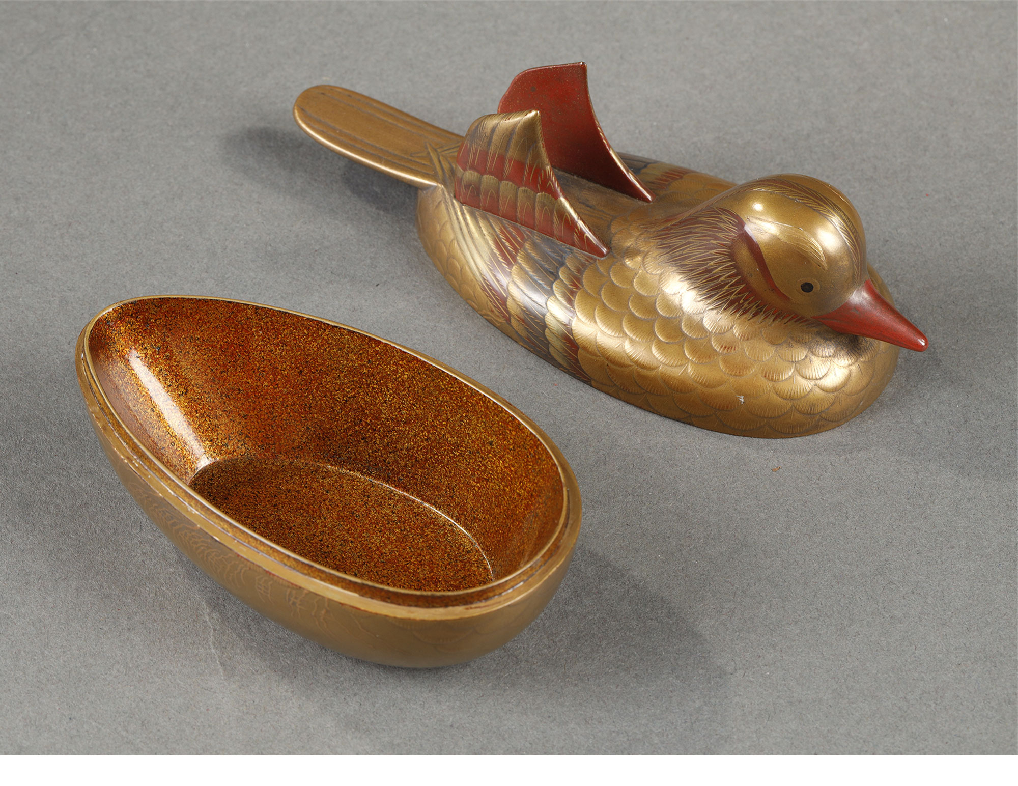 19世纪末日本明治时期出品「鸳鸯」主题金漆莳绘香盒 一对