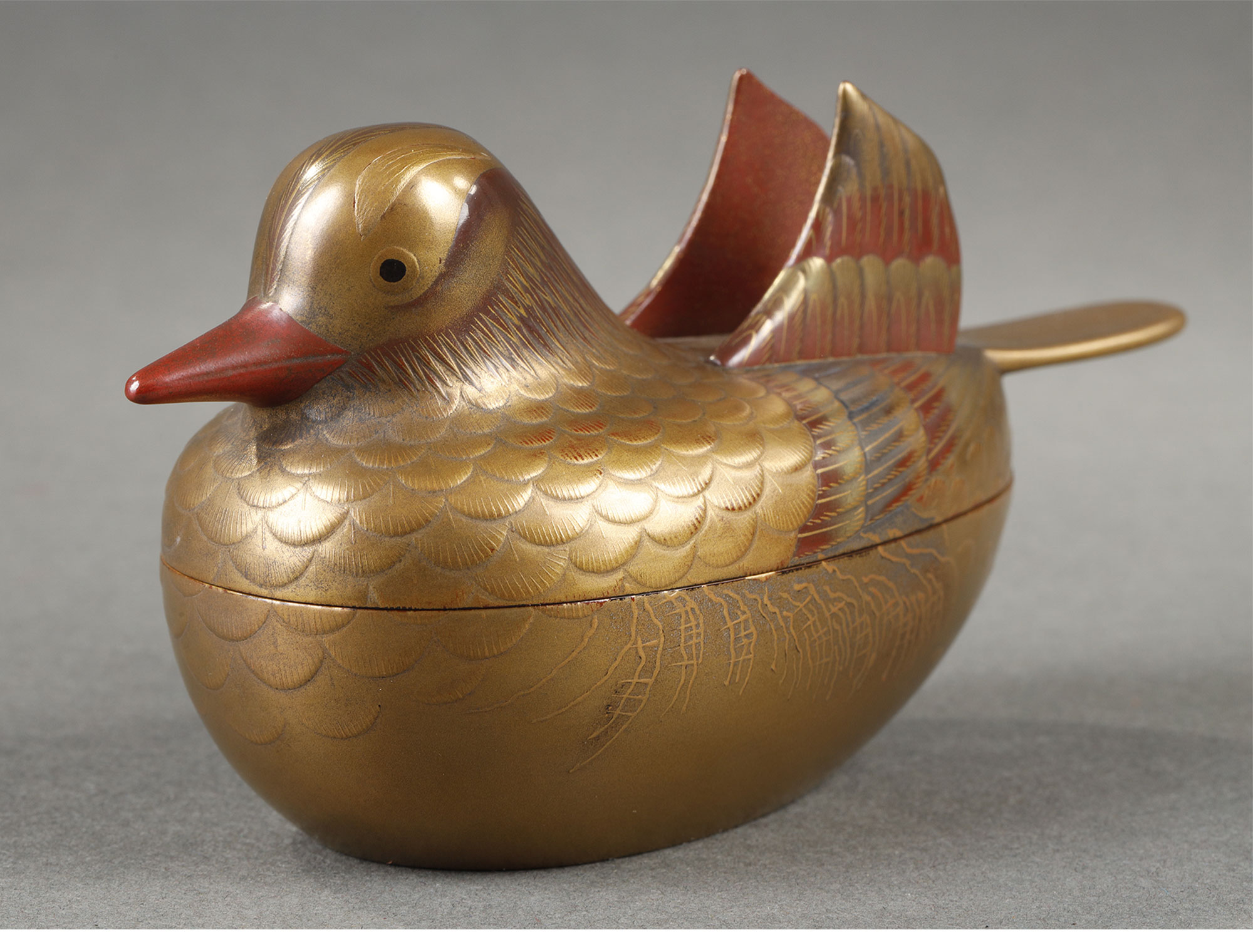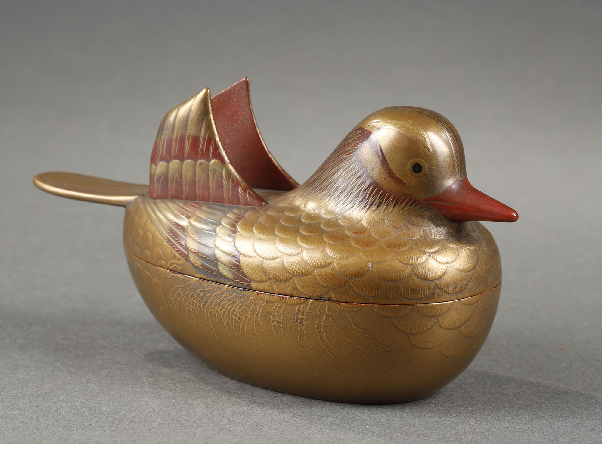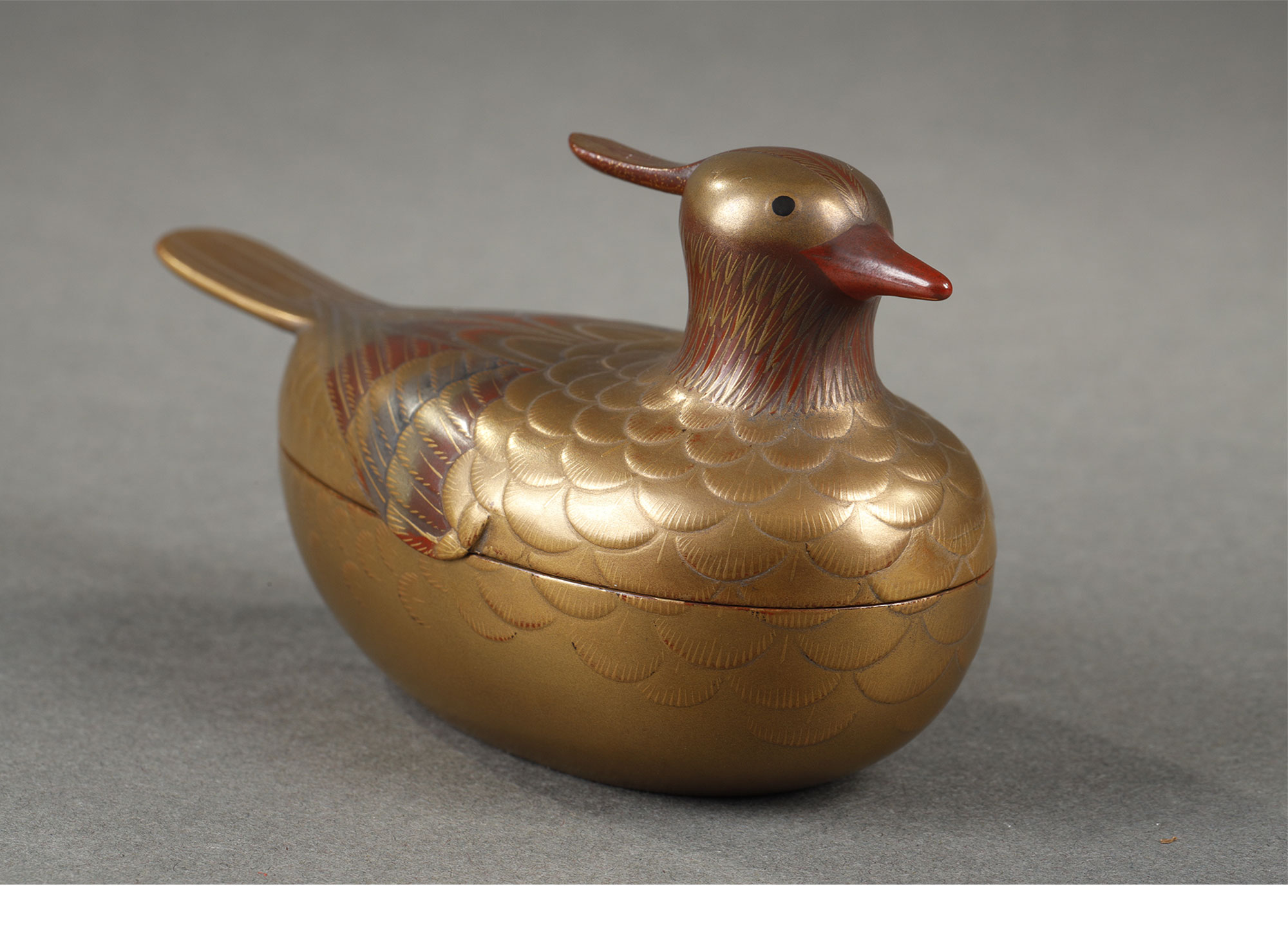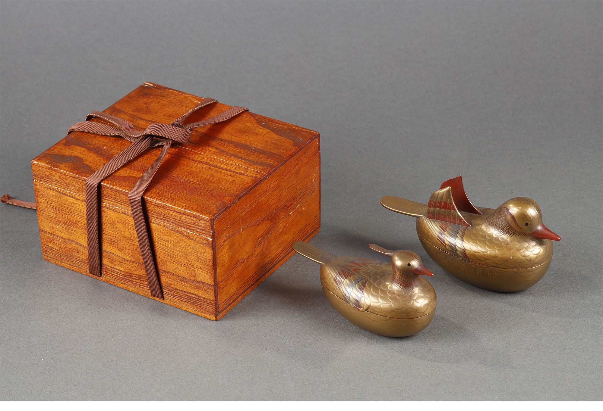 19世纪末日本明治时期出品「鸳鸯」主题金漆莳绘香盒 一对
