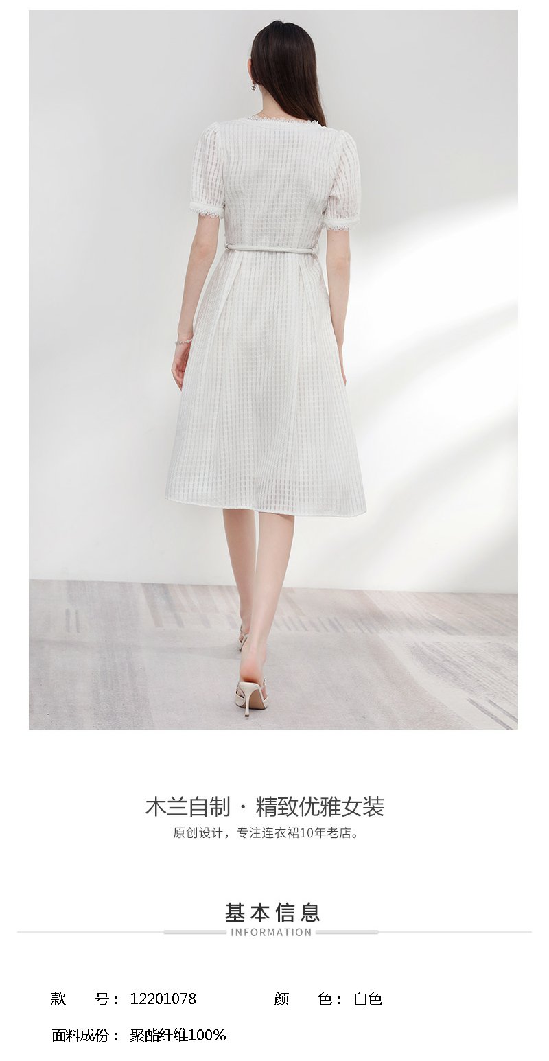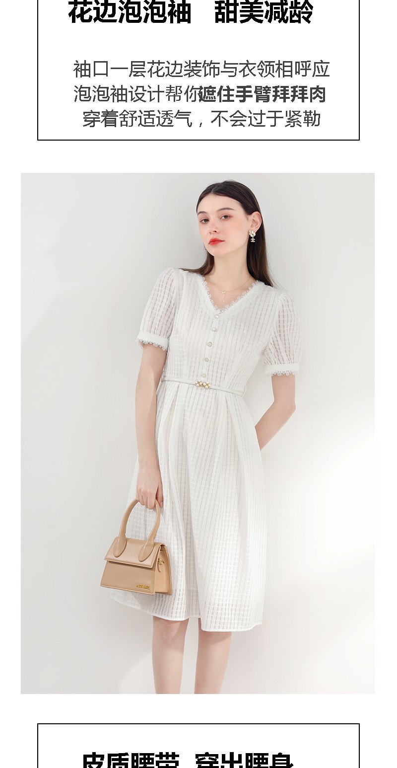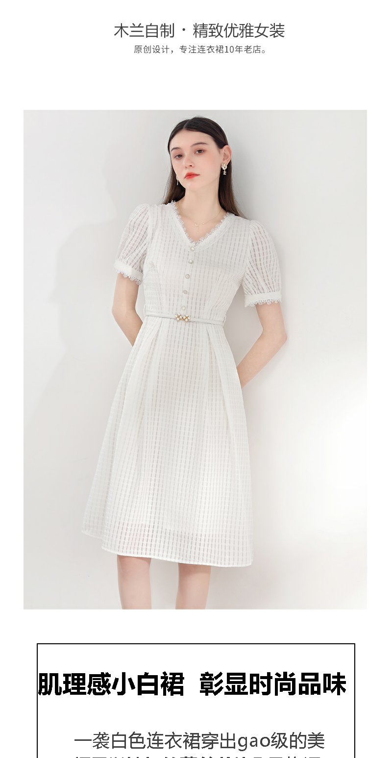 未风白色简约连衣裙女夏2024夏季新款女装法式气质收腰泡泡袖裙子
