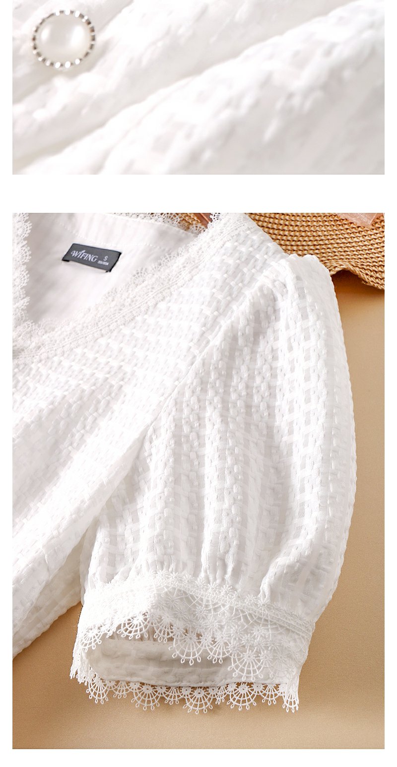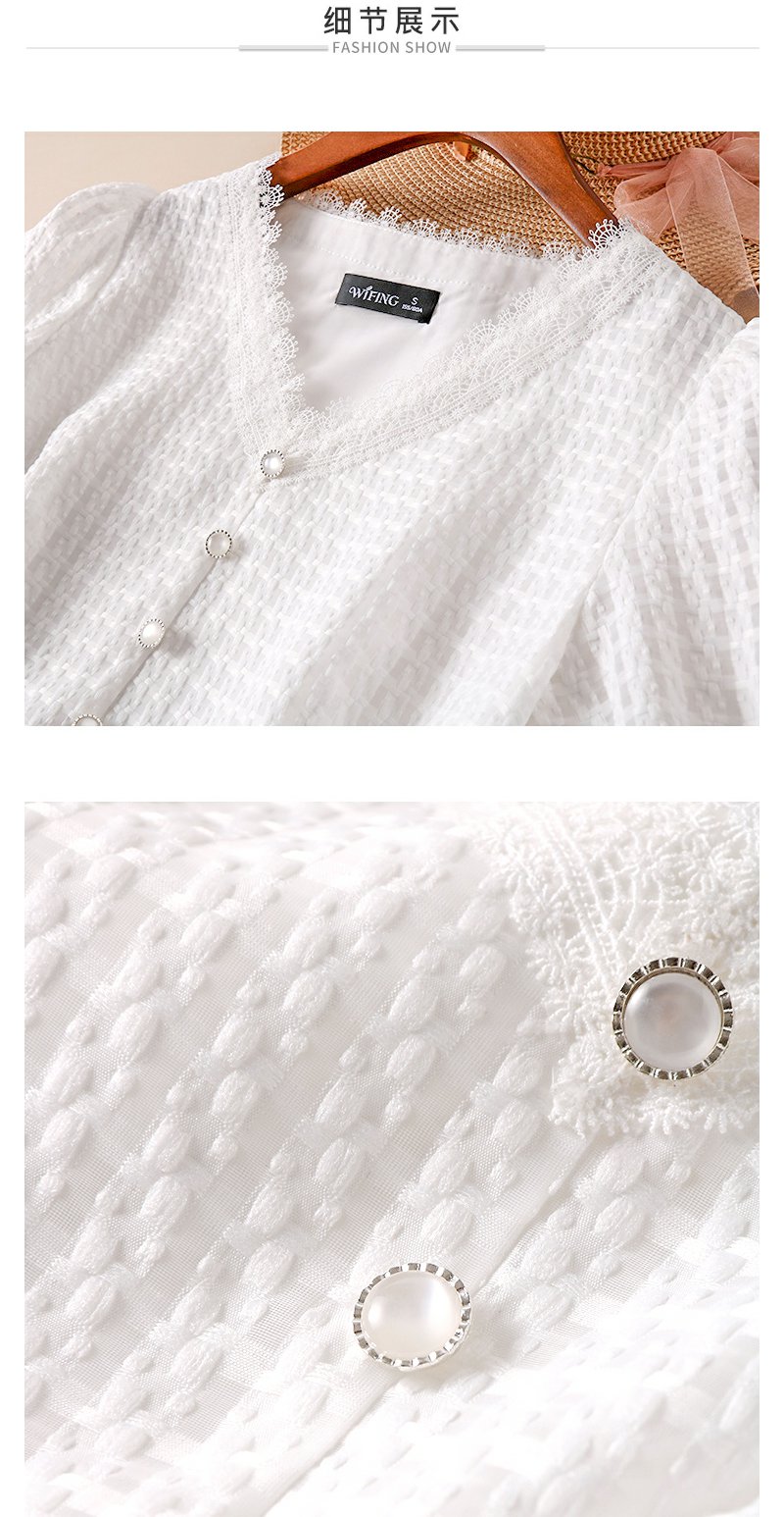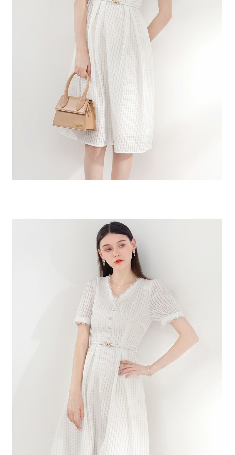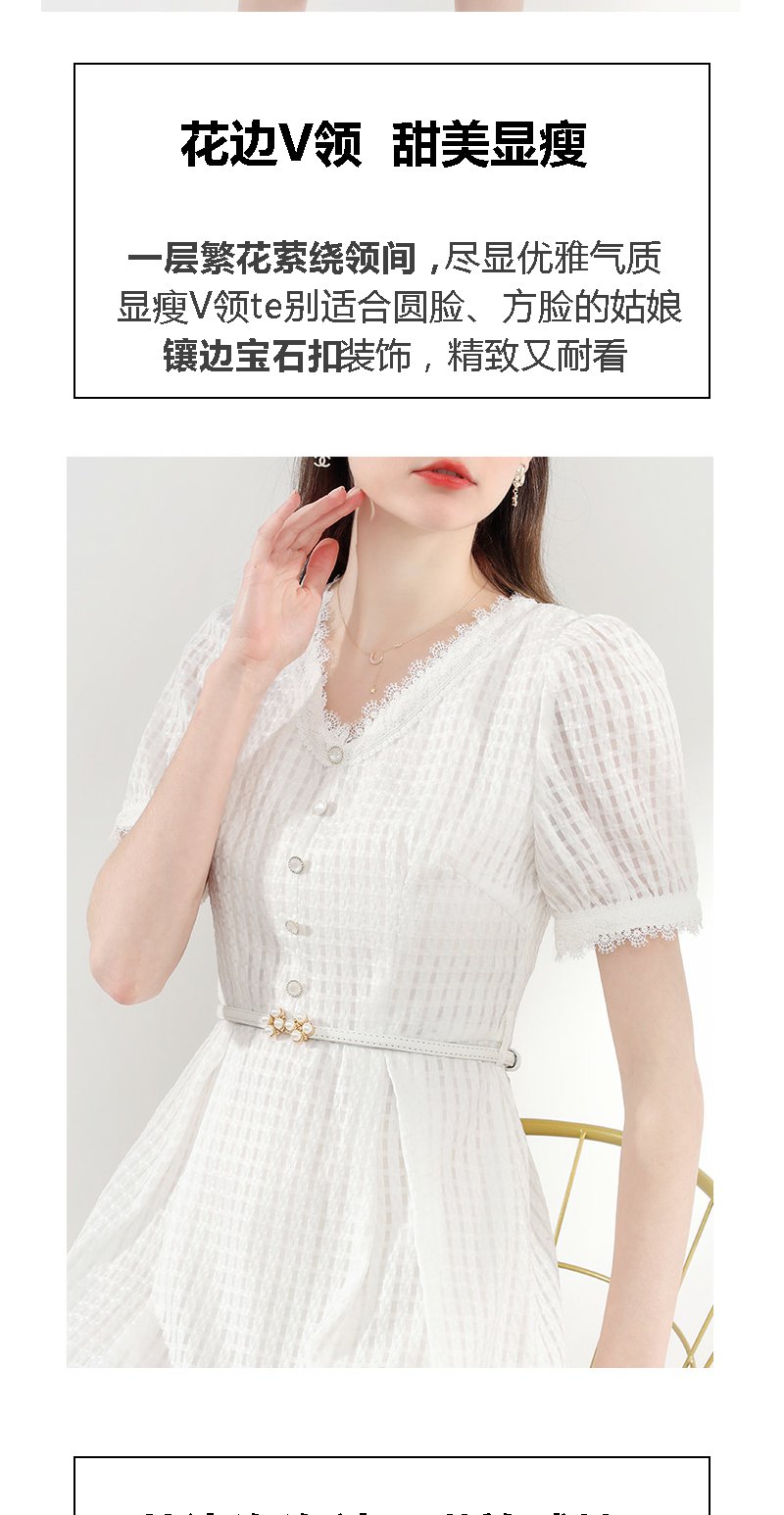 未风白色简约连衣裙女夏2024夏季新款女装法式气质收腰泡泡袖裙子