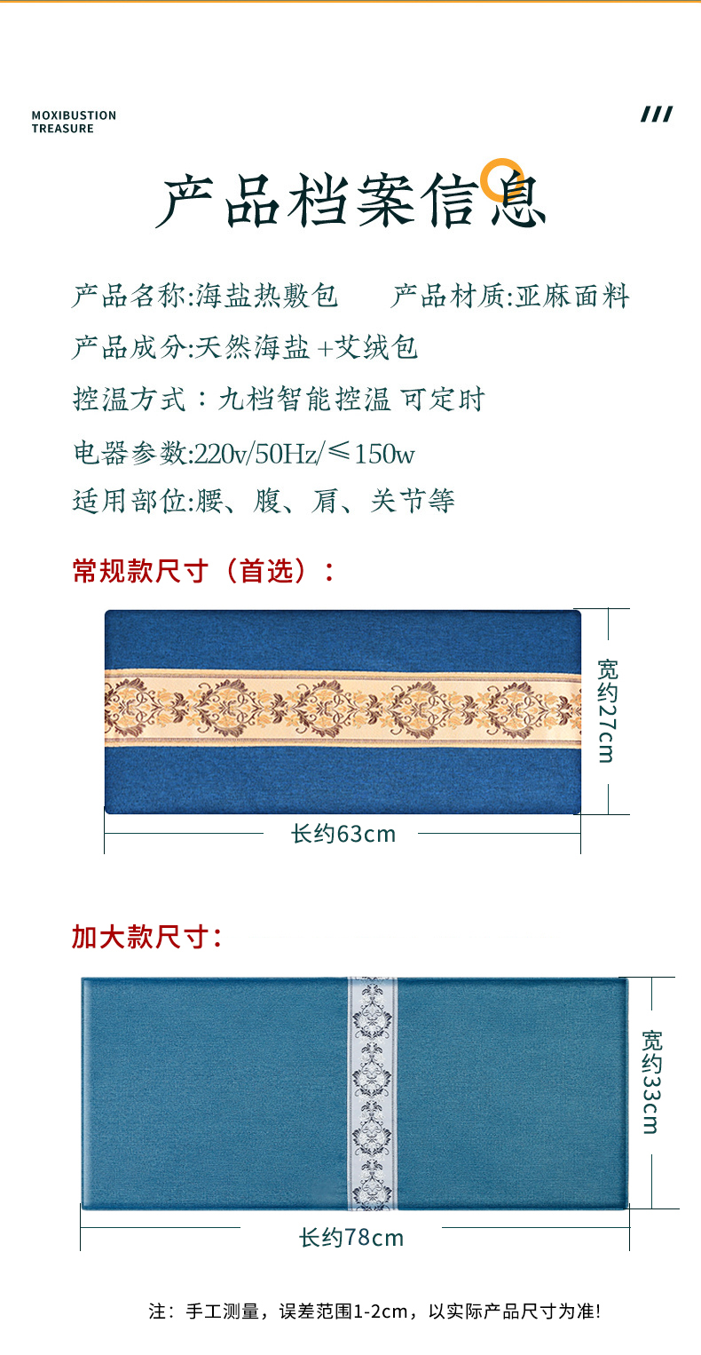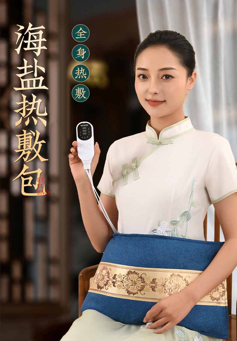 【2海盐热敷包、艾绒包、电加热亚麻盐袋子、9档定时控温、理疗热敷毯、加大粗盐热敷袋礼盒装