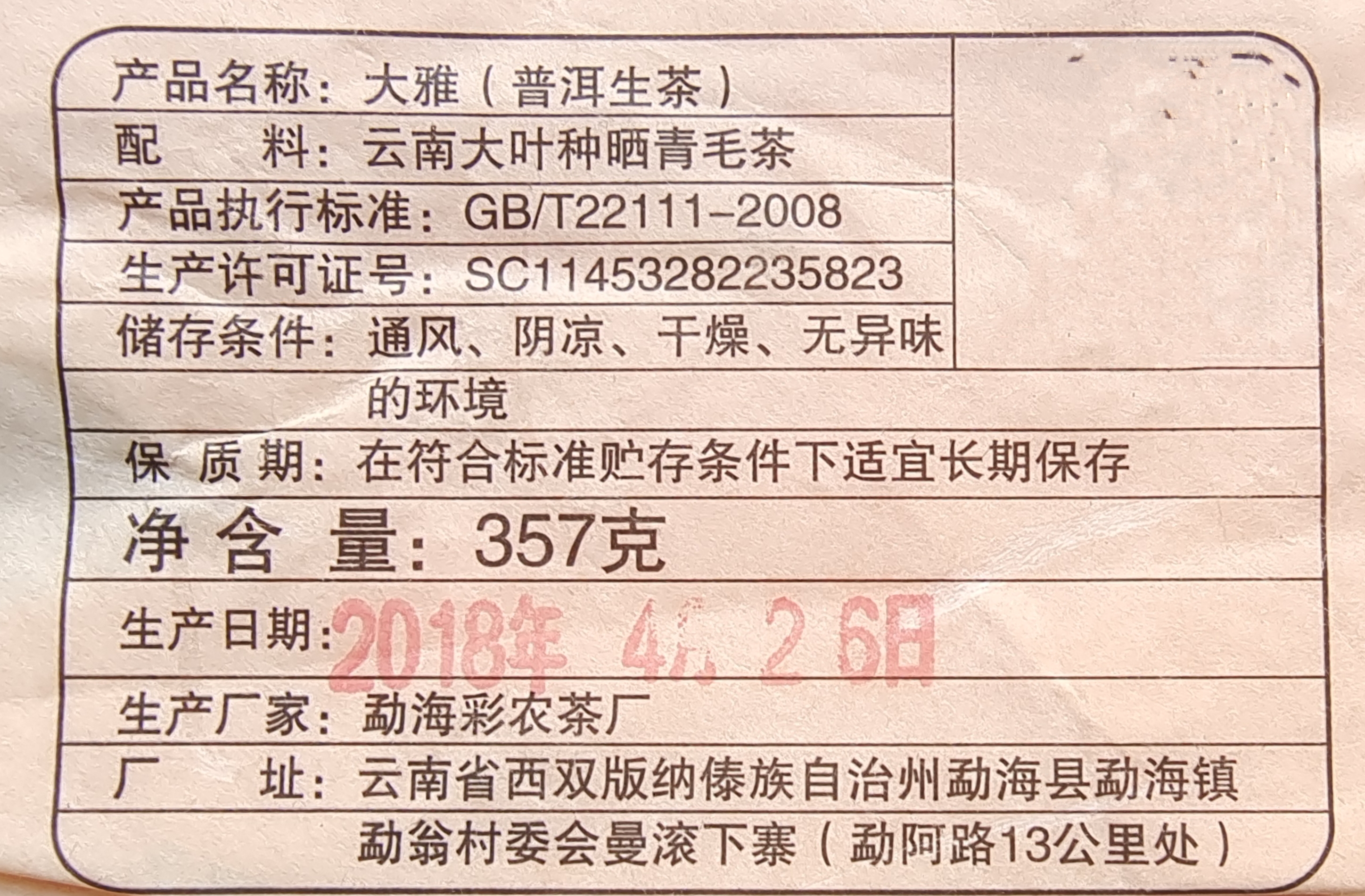 彩农茶|易武大雅2018头春古树纯料青饼