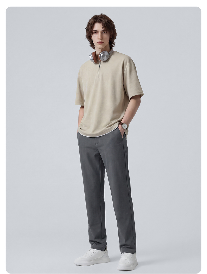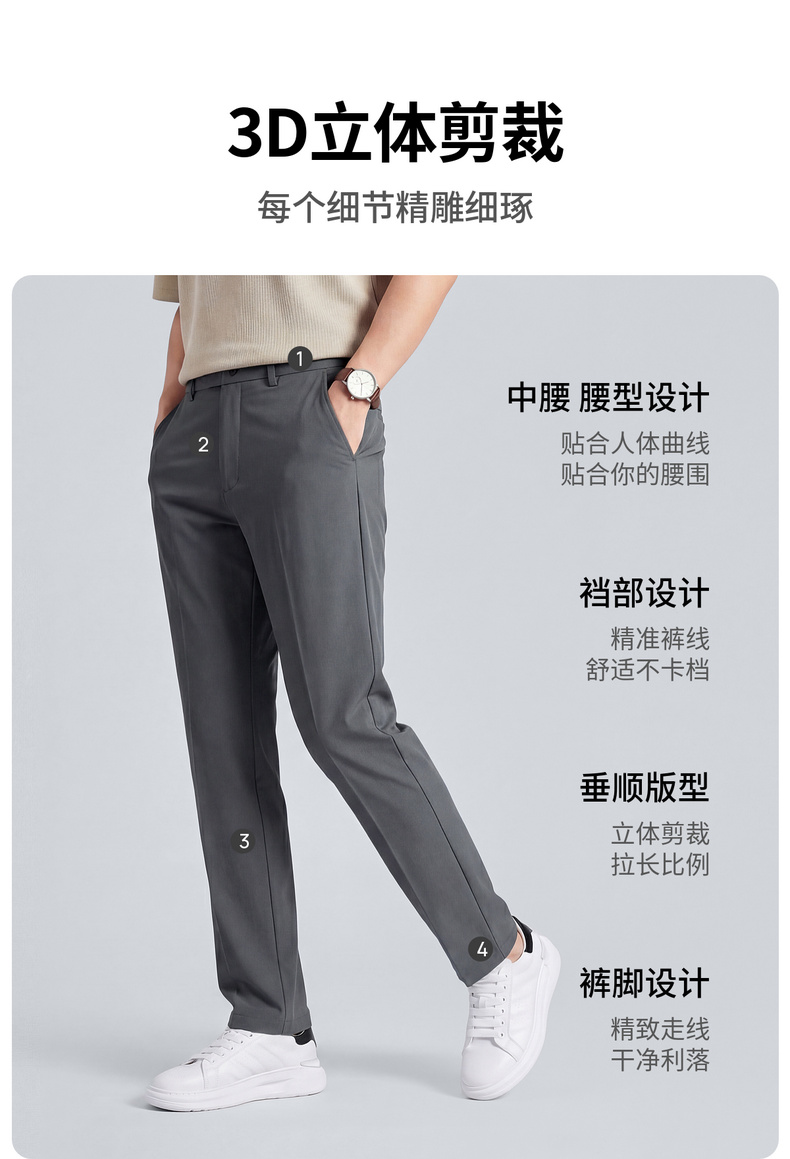 【高弹自在】圣得西休闲裤男款2026新款春季通勤百搭薄款直筒裤子