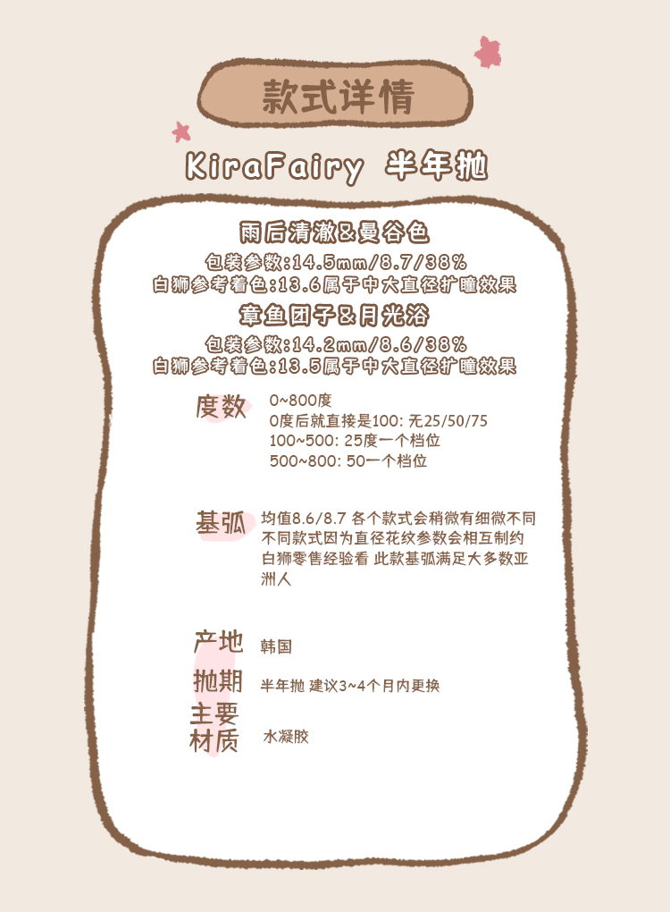 Kira Fairy半年抛 · 雨后清澈&曼谷色&月光浴&章鱼团子|白狮参考着色中大直径| 韩产半年抛2片