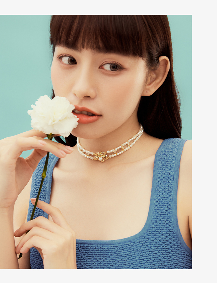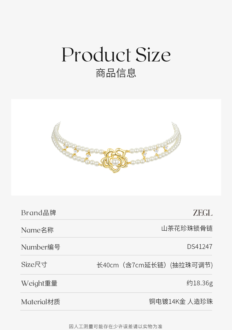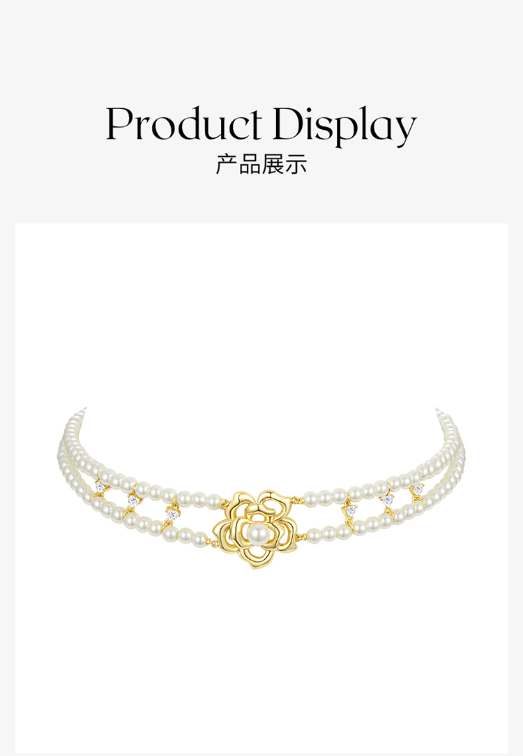 ZEGL设计师秘密花园系列山茶花人造珍珠项链女轻奢小众锁骨链颈链