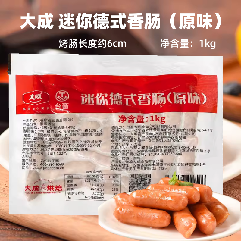 1kg 大成台畜【迷你】德式香肠(原味) 早餐肠烧烤肠烘焙料理面包热狗肠