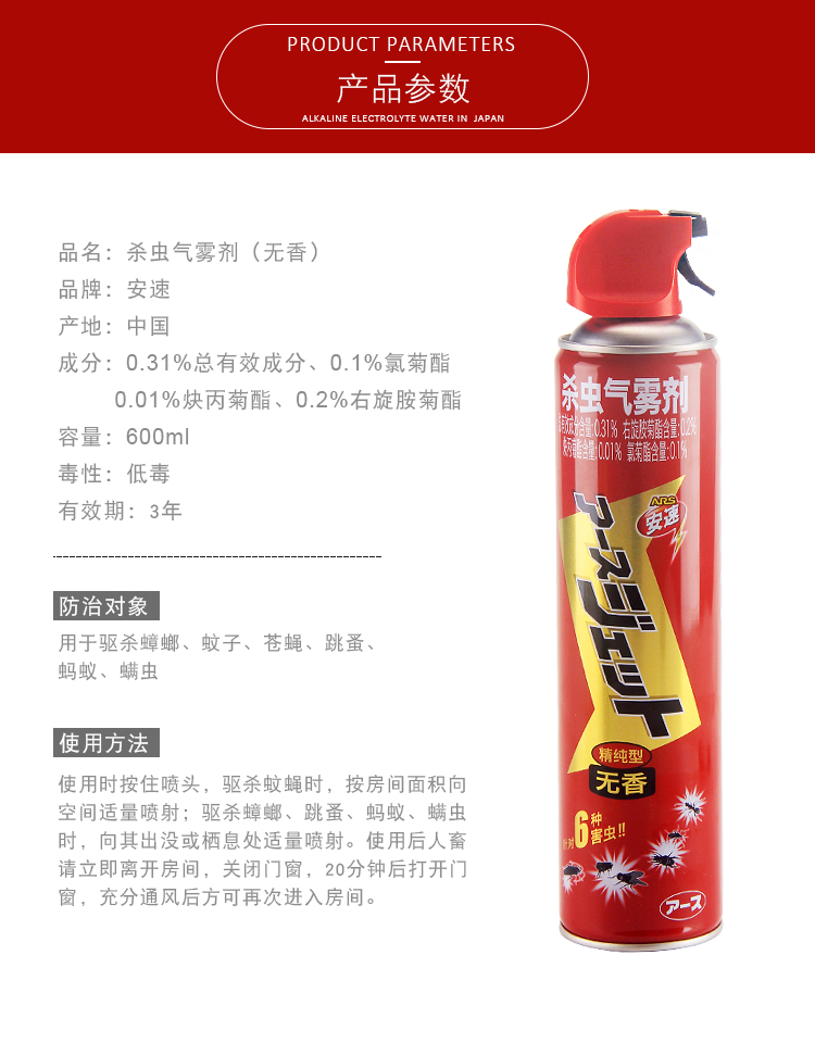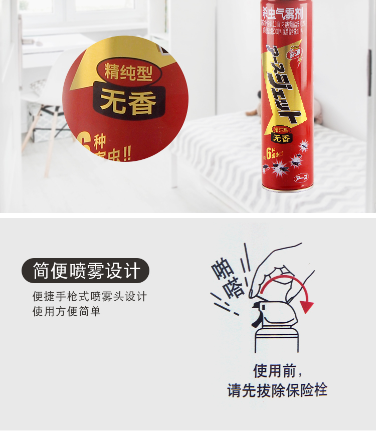 日本安速ARS杀虫气雾剂精纯型无味600ml 家用杀虫剂除螨蚊子蟑螂