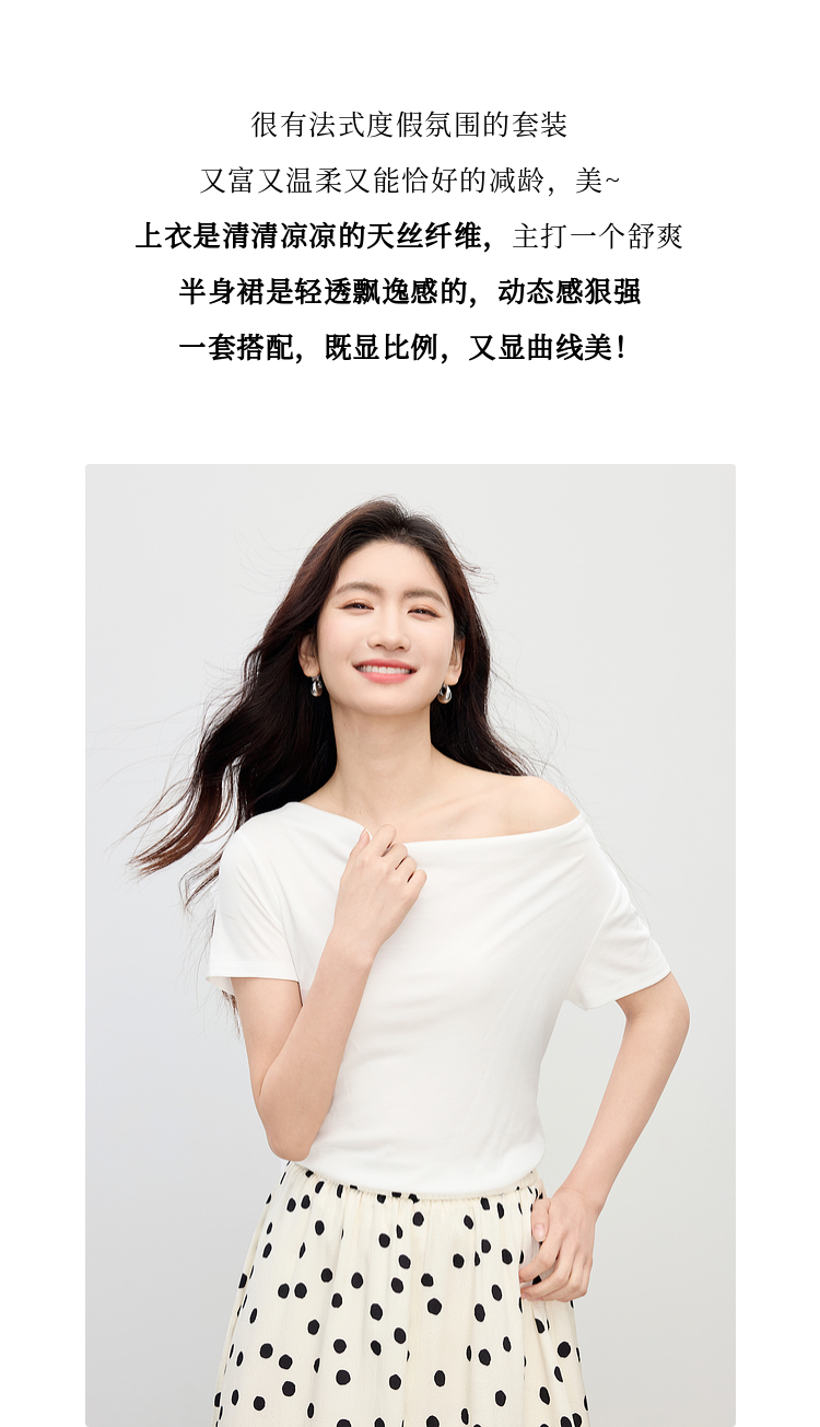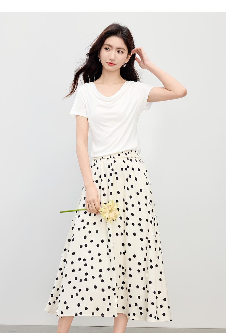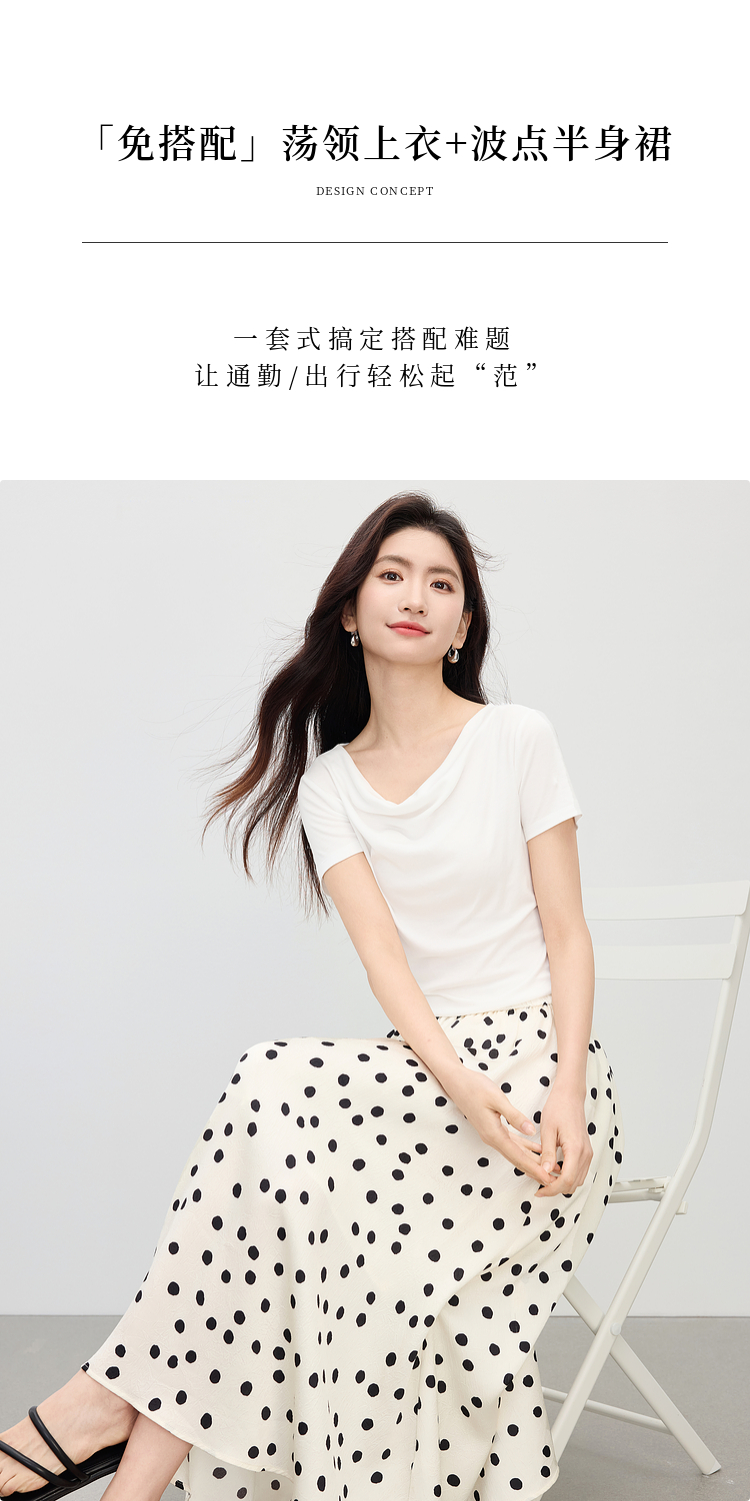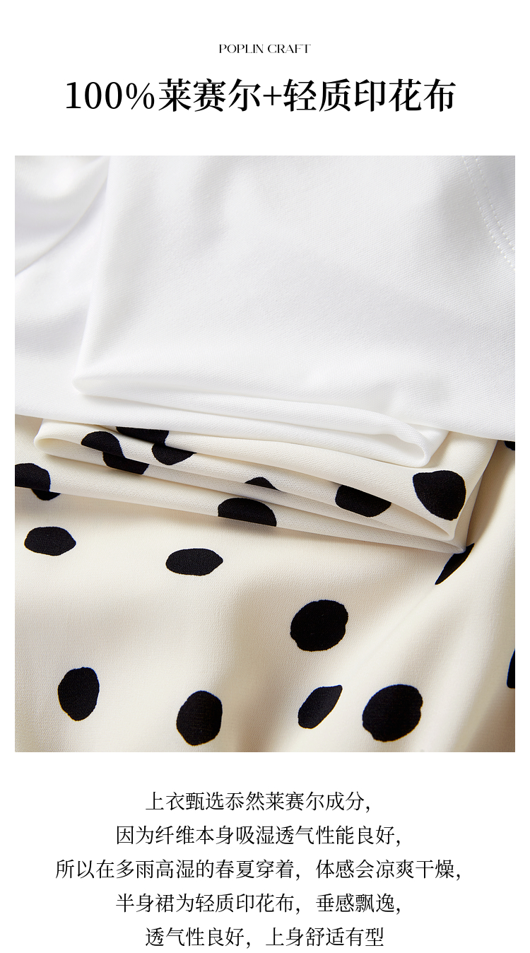【专属特价】熙世界夏日绝美套装裙女2025新款莱赛尔荡领上衣波点半身裙两件套