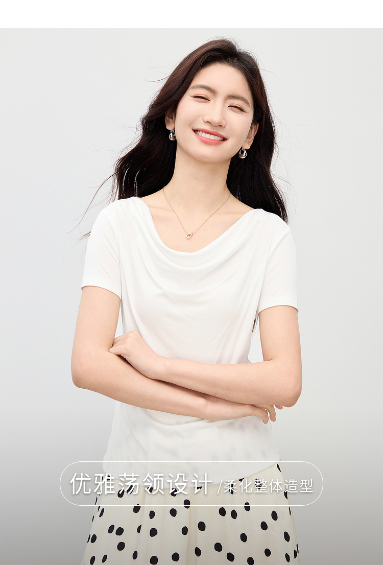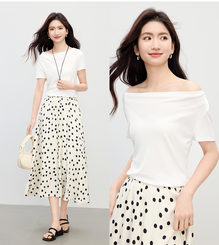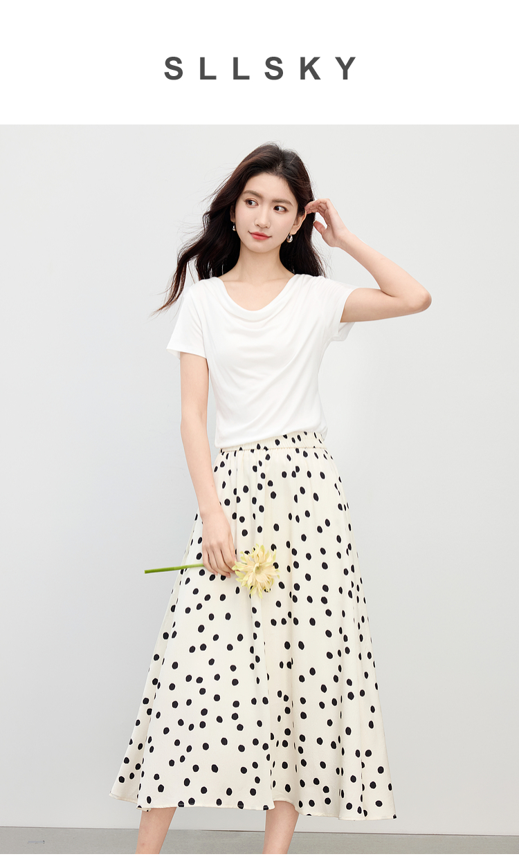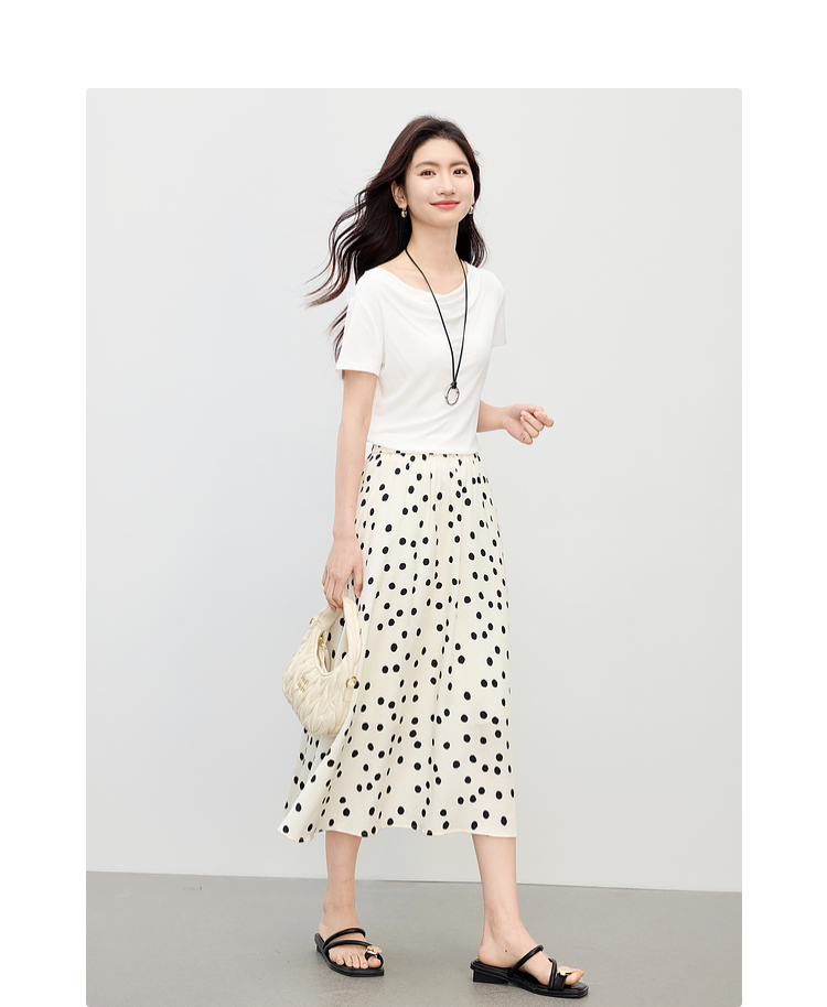 【专属特价】熙世界夏日绝美套装裙女2025新款莱赛尔荡领上衣波点半身裙两件套