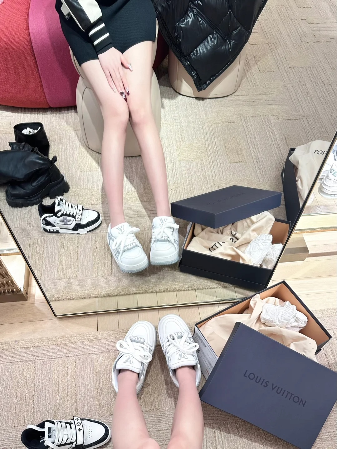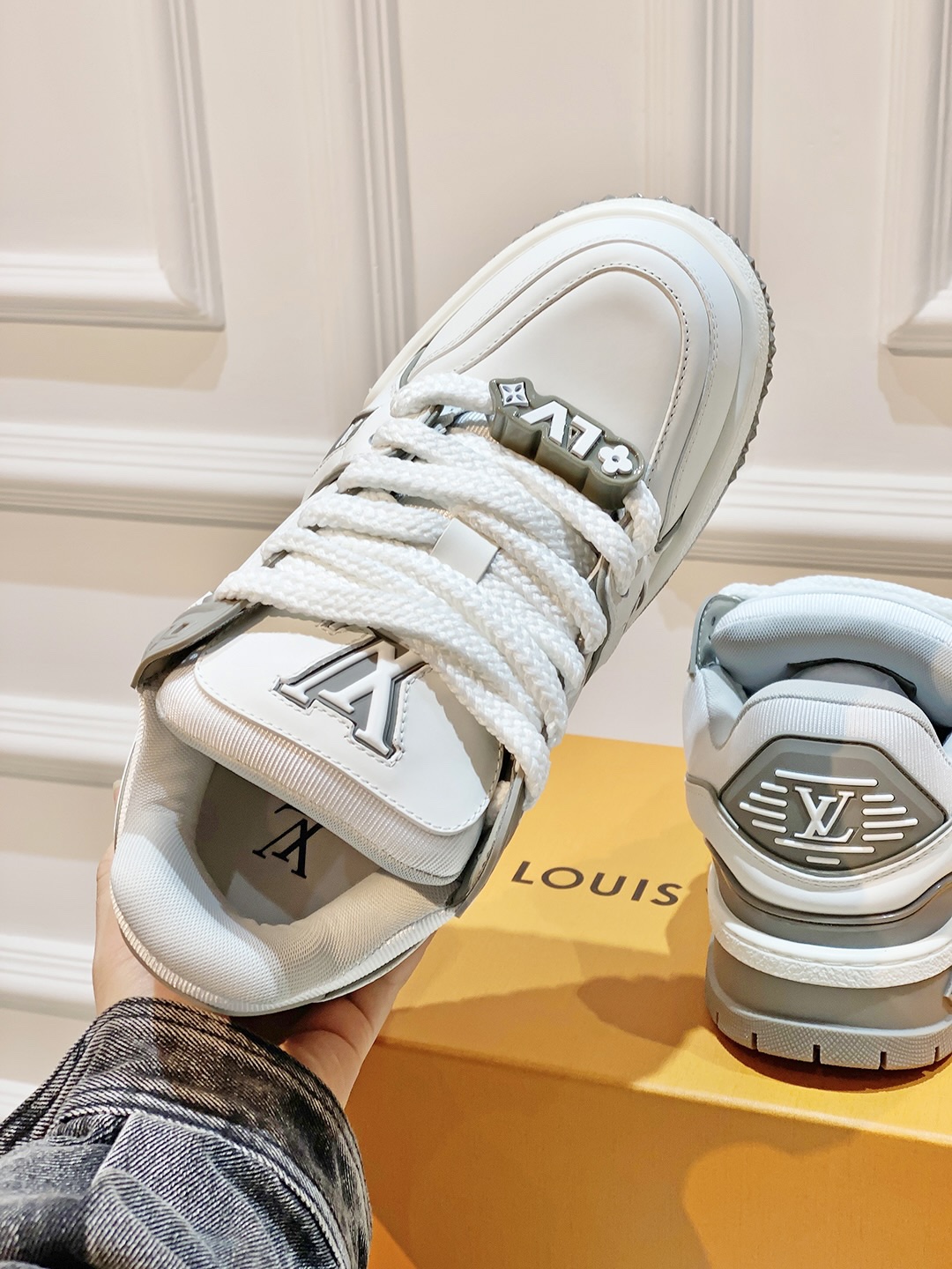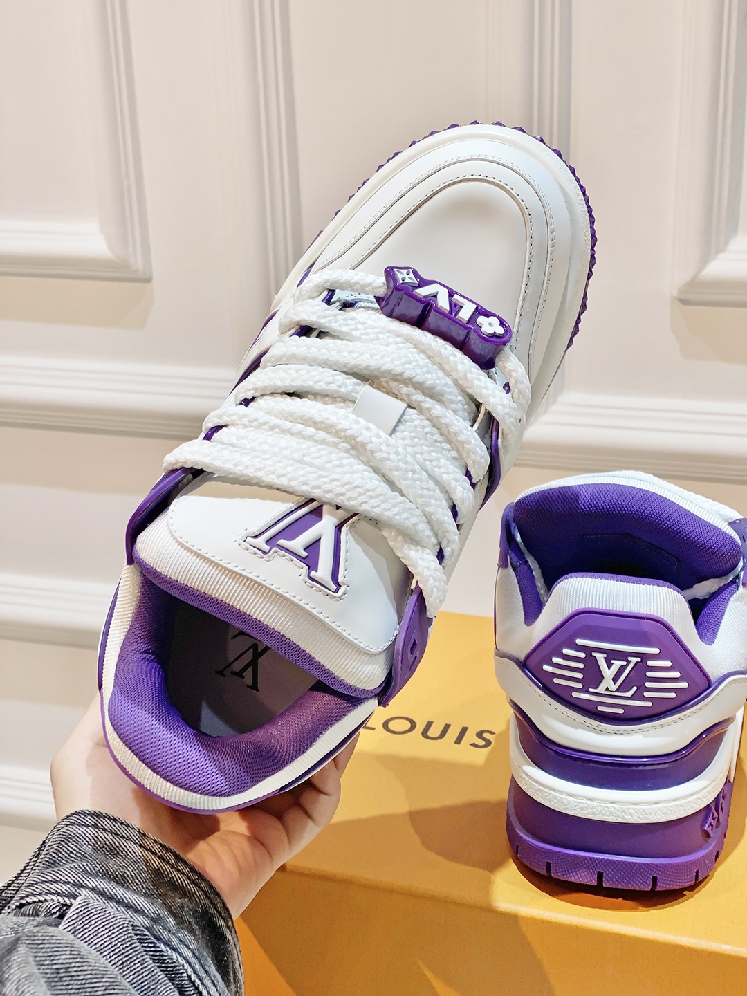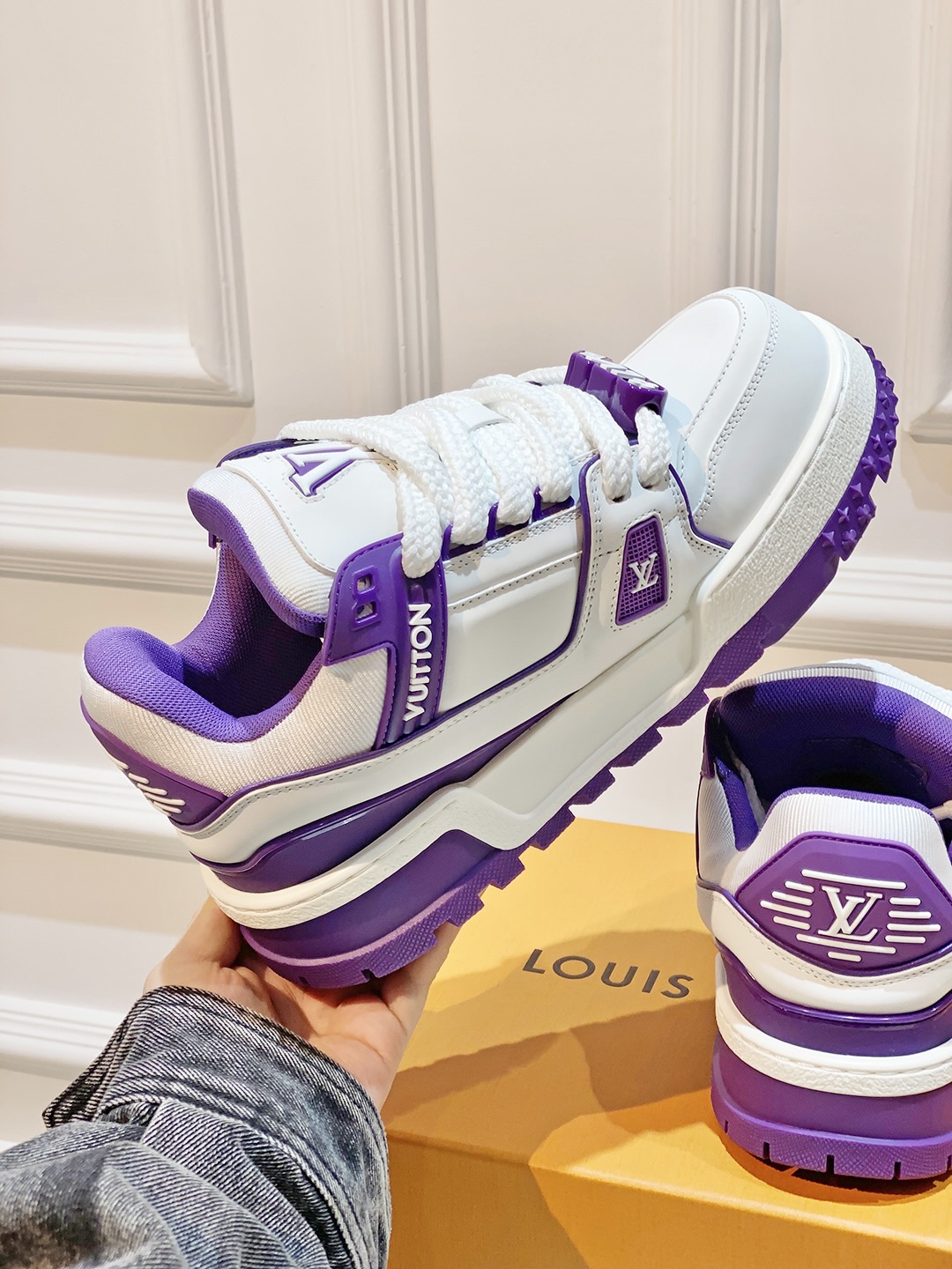 可可爱爱! LV Trainer 小胖丁 上脚直接惊艳到我,太喜欢这个啦!特别显腿细 穿搭毫无压力,我真的会爱死! 胖胖的穿上很可爱 还增高好几厘米!