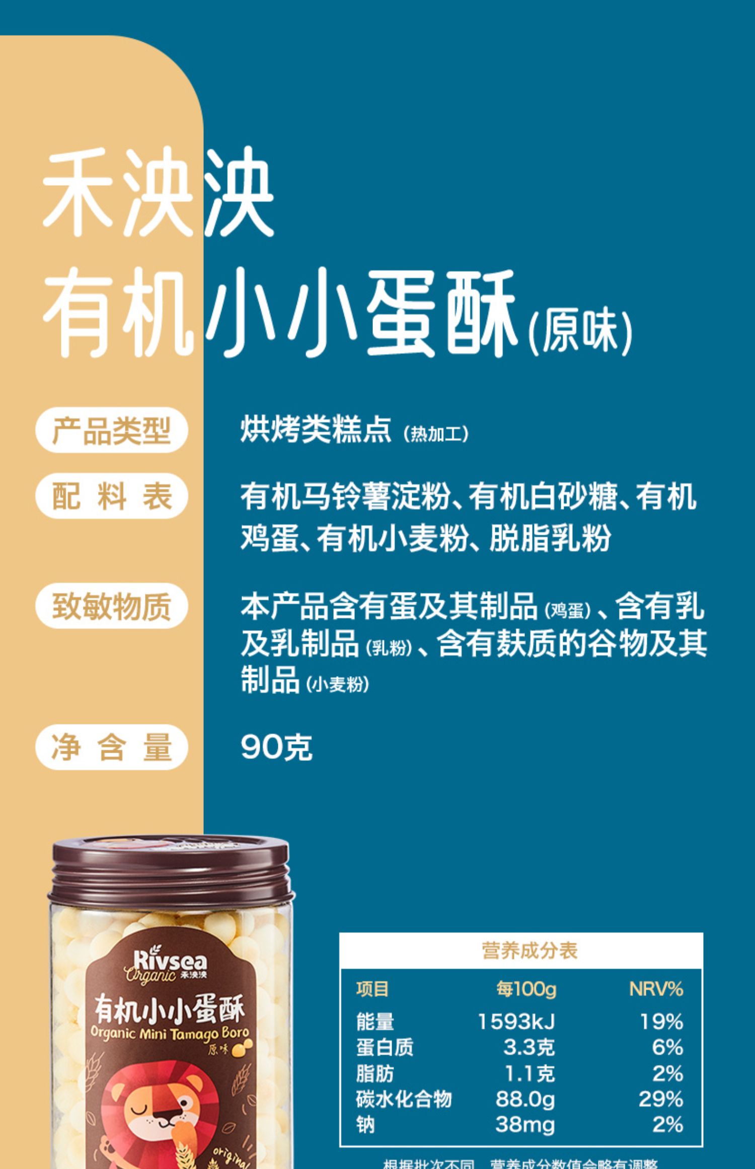 禾泱泱有机蛋酥 儿童牛奶饼干低钠宝宝零食小小蛋酥无添加食盐