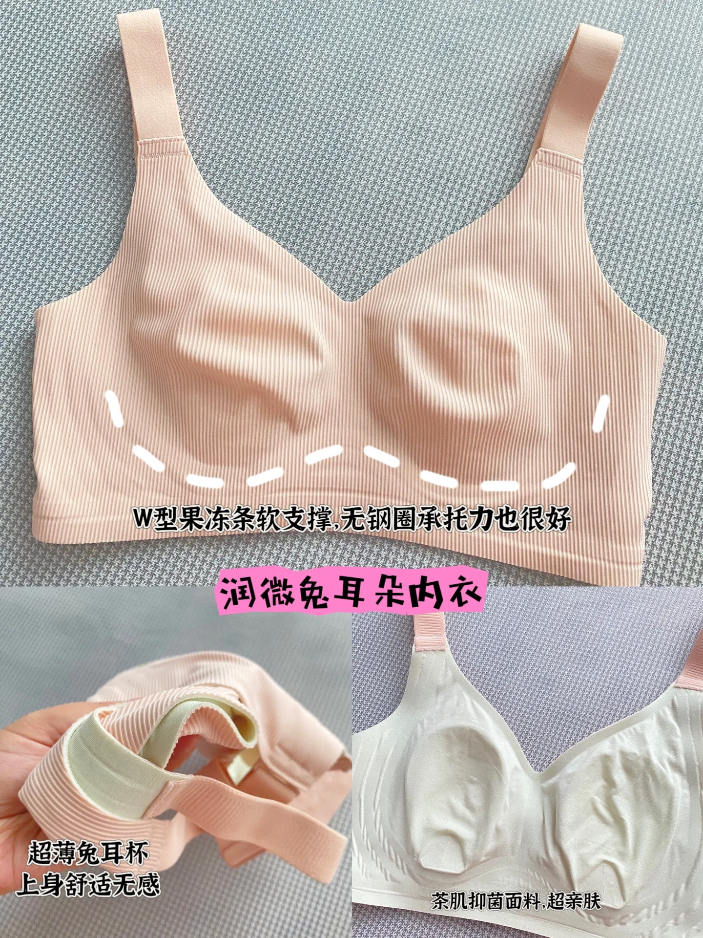 【润微内衣99元/2件! 】润微兔耳朵薄款大胸显瘦内衣文胸氧气茶肌