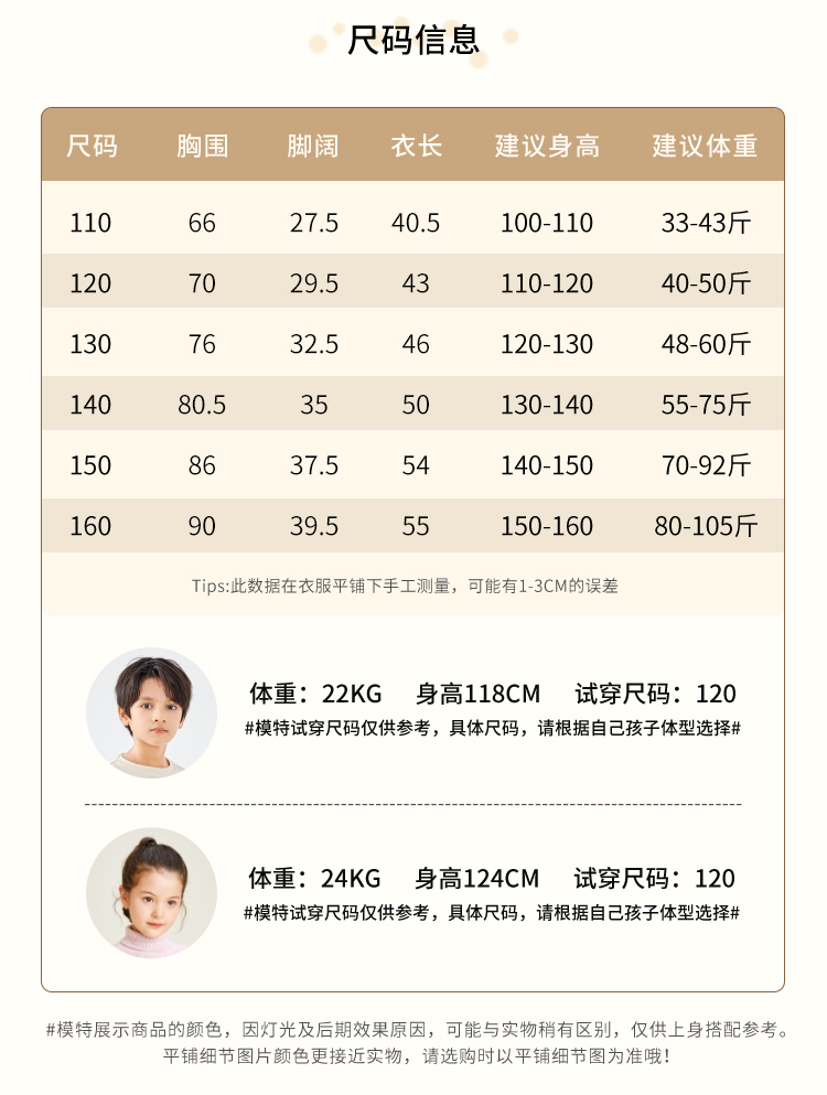 | 参考身高: 110/52 120/56 130/60 140/64 150/68 160/72 | 适用季节: 春秋 |