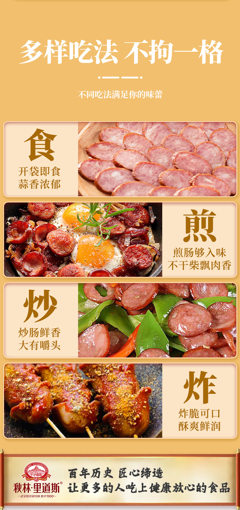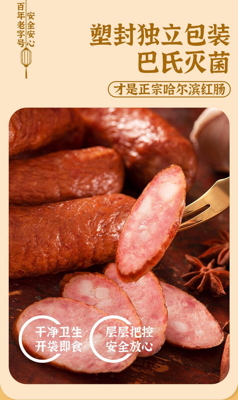 秋林里道斯食品 哈尔滨红肠580g袋中华老字号 休闲零食猪肉肠东北特产地道小吃香肠 开袋即食 哈尔滨红肠580g量贩装【加入购物车优先发货】 蒜香味