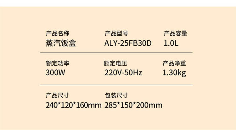 欧洲生活馆 ACA蒸汽电饭盒 1L,ALY-25FB30D