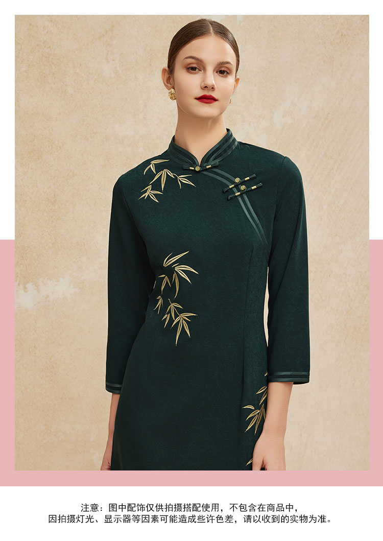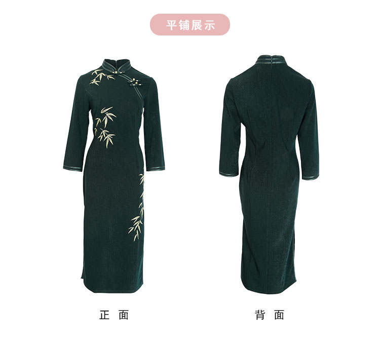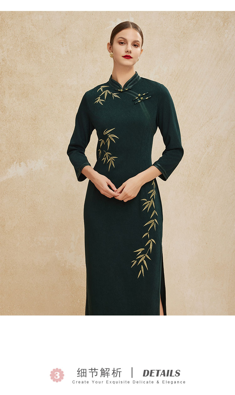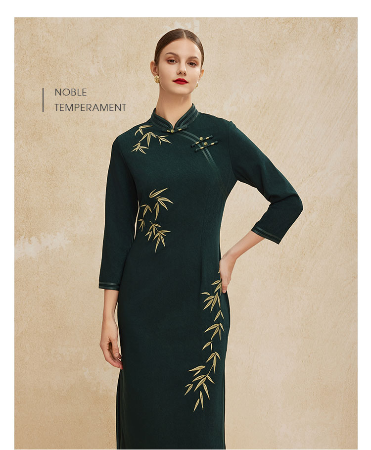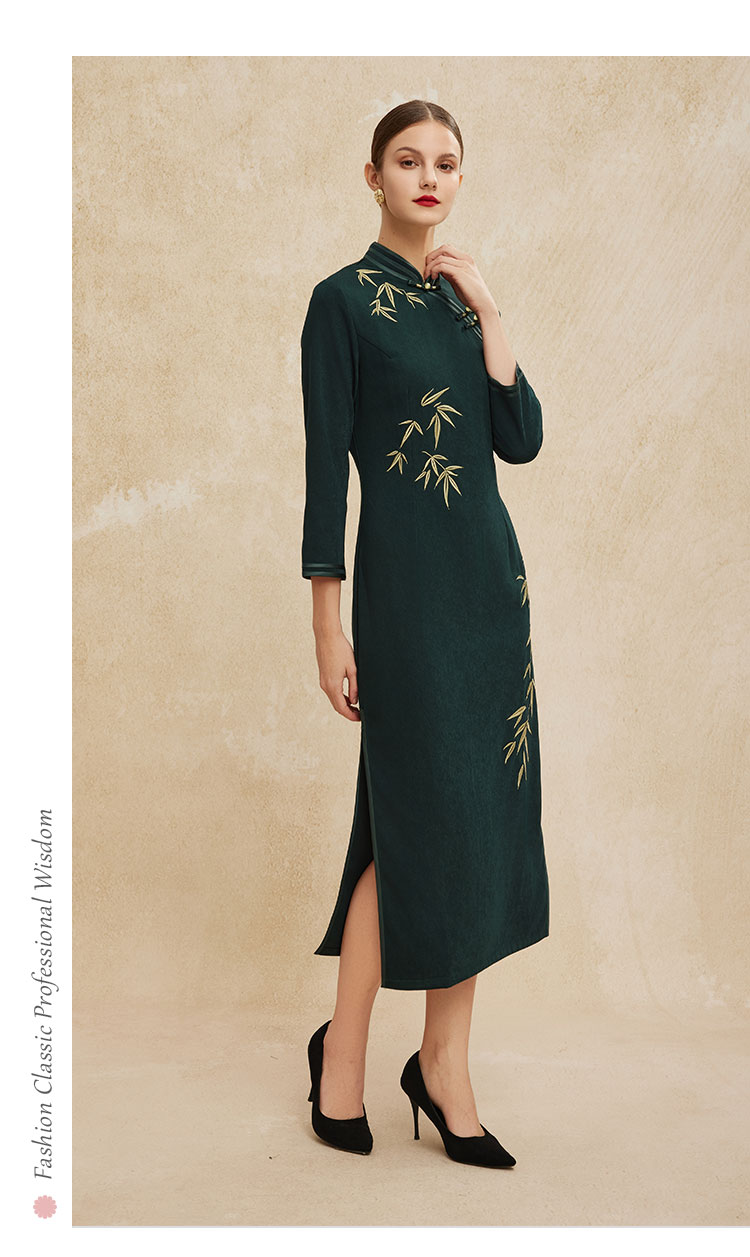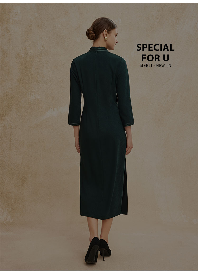 PH804斯尔丽24新款新国风改良版针织弹力罗马布金丝盘扣绣花长袖连衣裙
