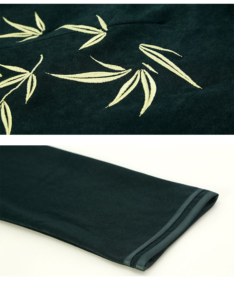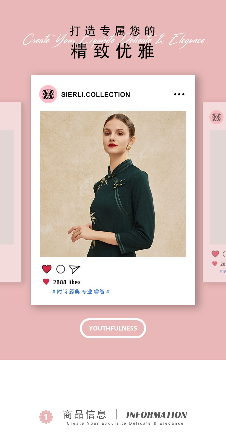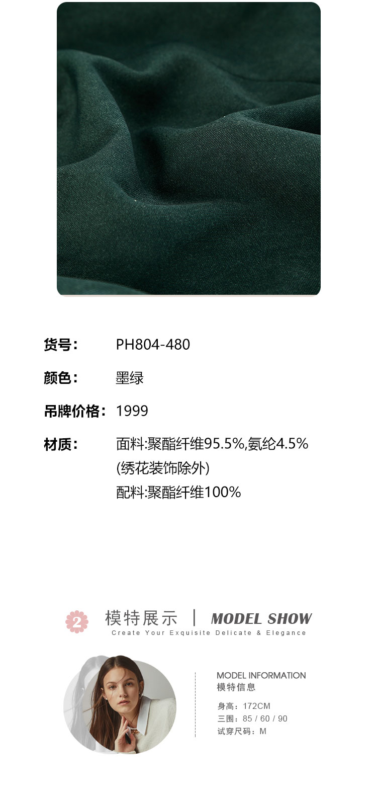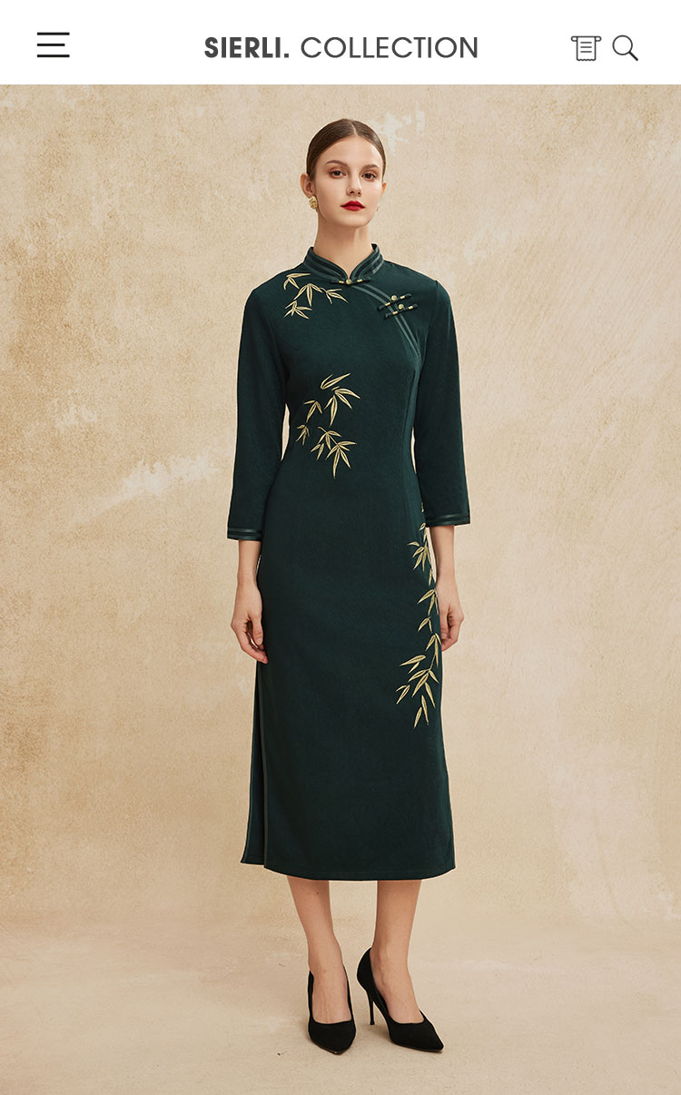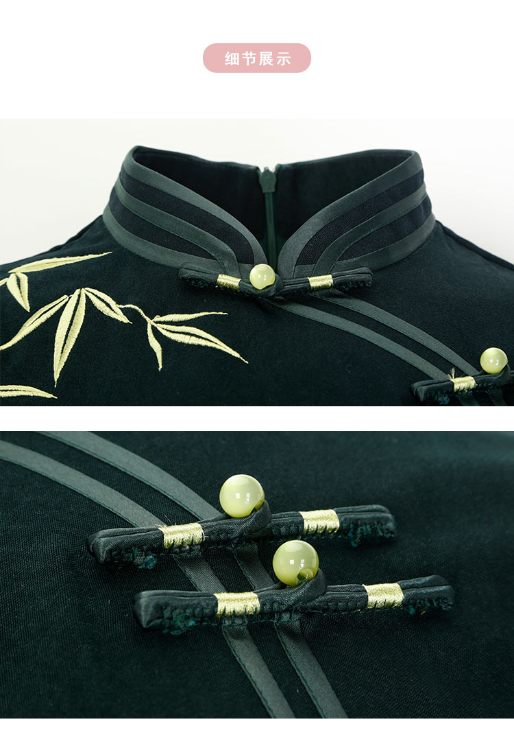 PH804斯尔丽24新款新国风改良版针织弹力罗马布金丝盘扣绣花长袖连衣裙