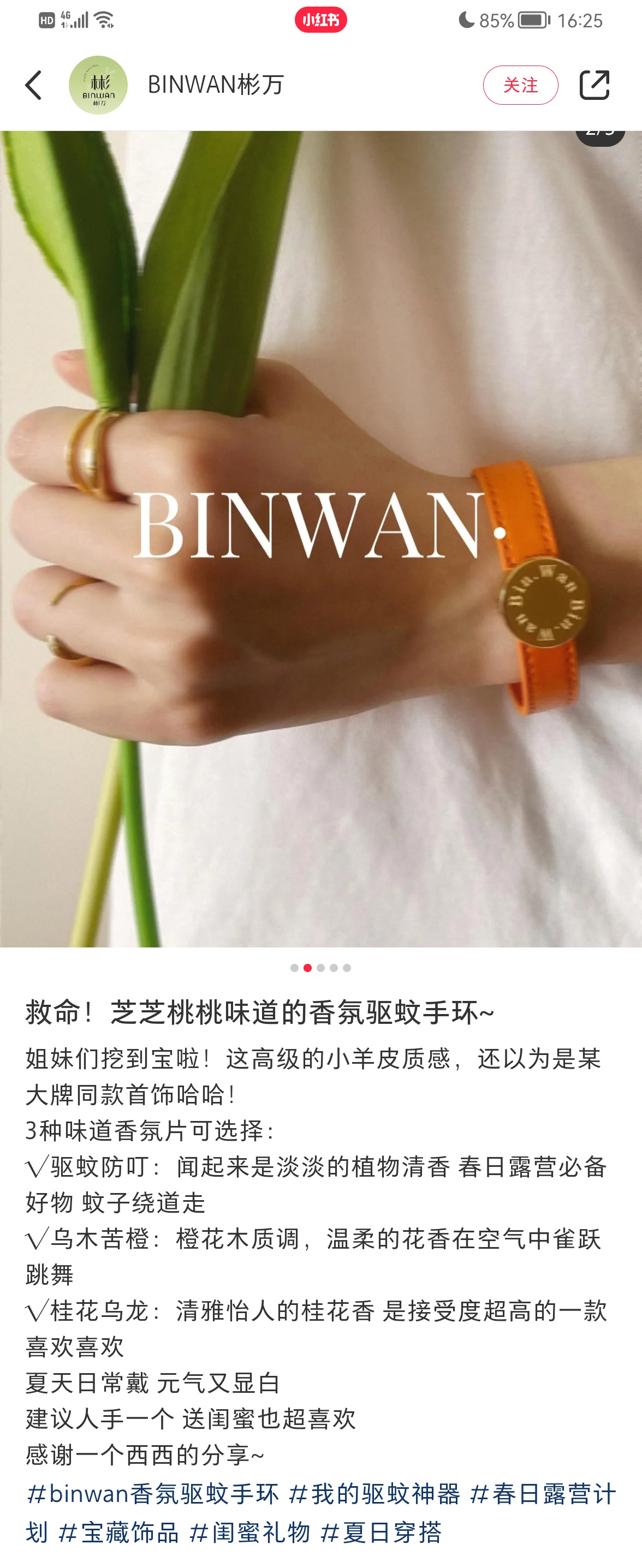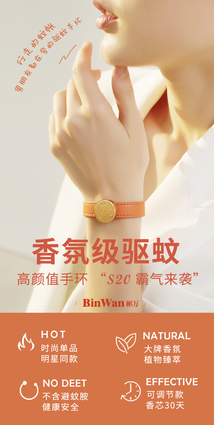 老米优品 / 行走的蚊帐!!《BINWAN彬万香氛驱蚊手环S20 》轻奢品质精美礼盒手环*1+替换芯香片*2【加赠3片替换芯到手5片】!