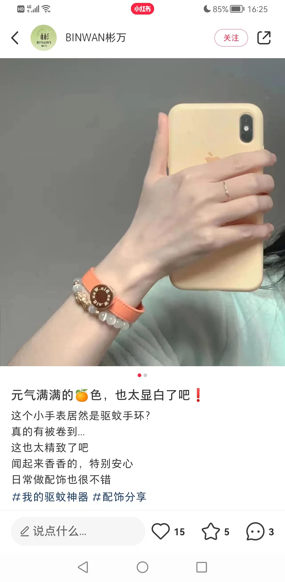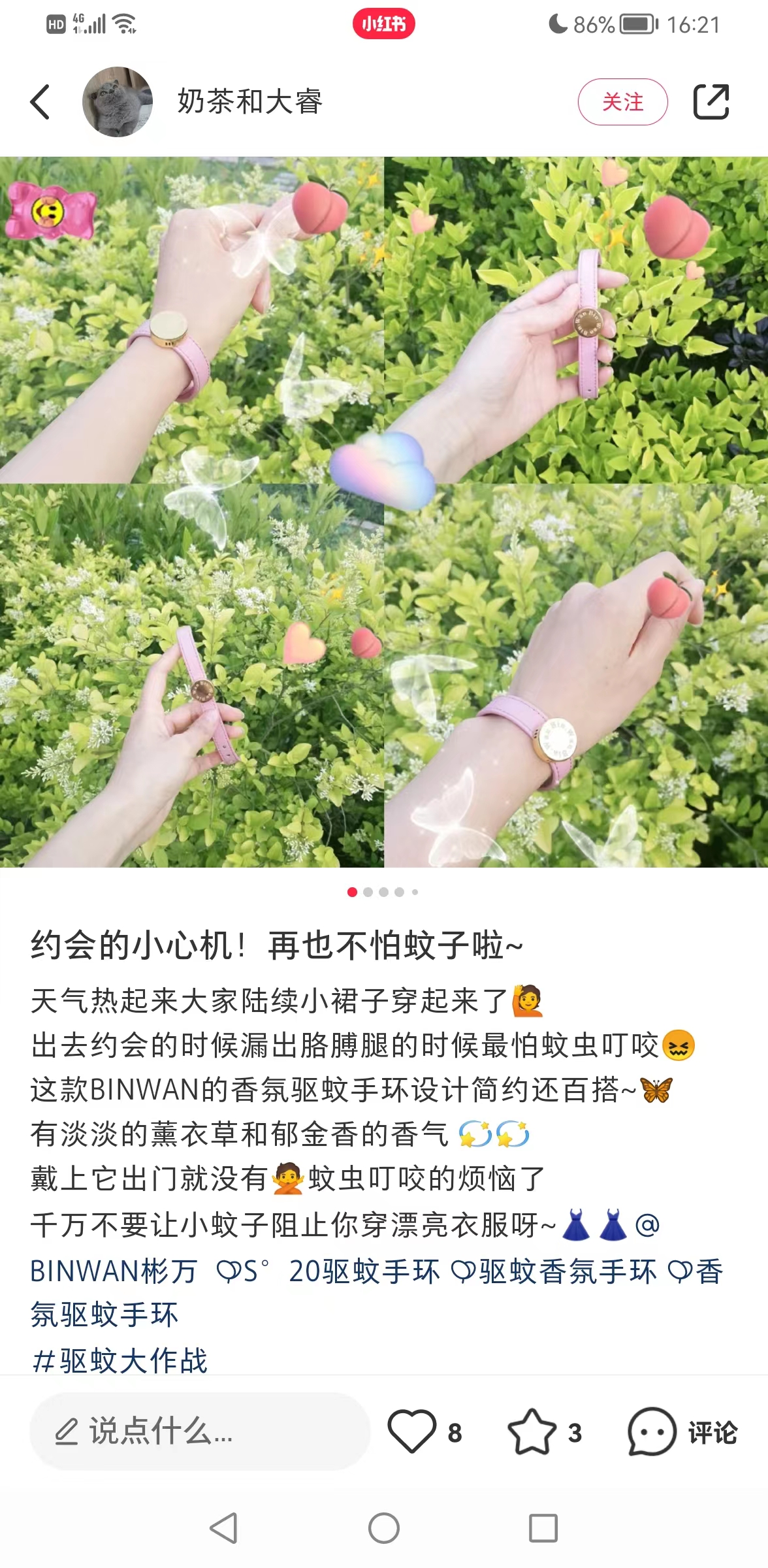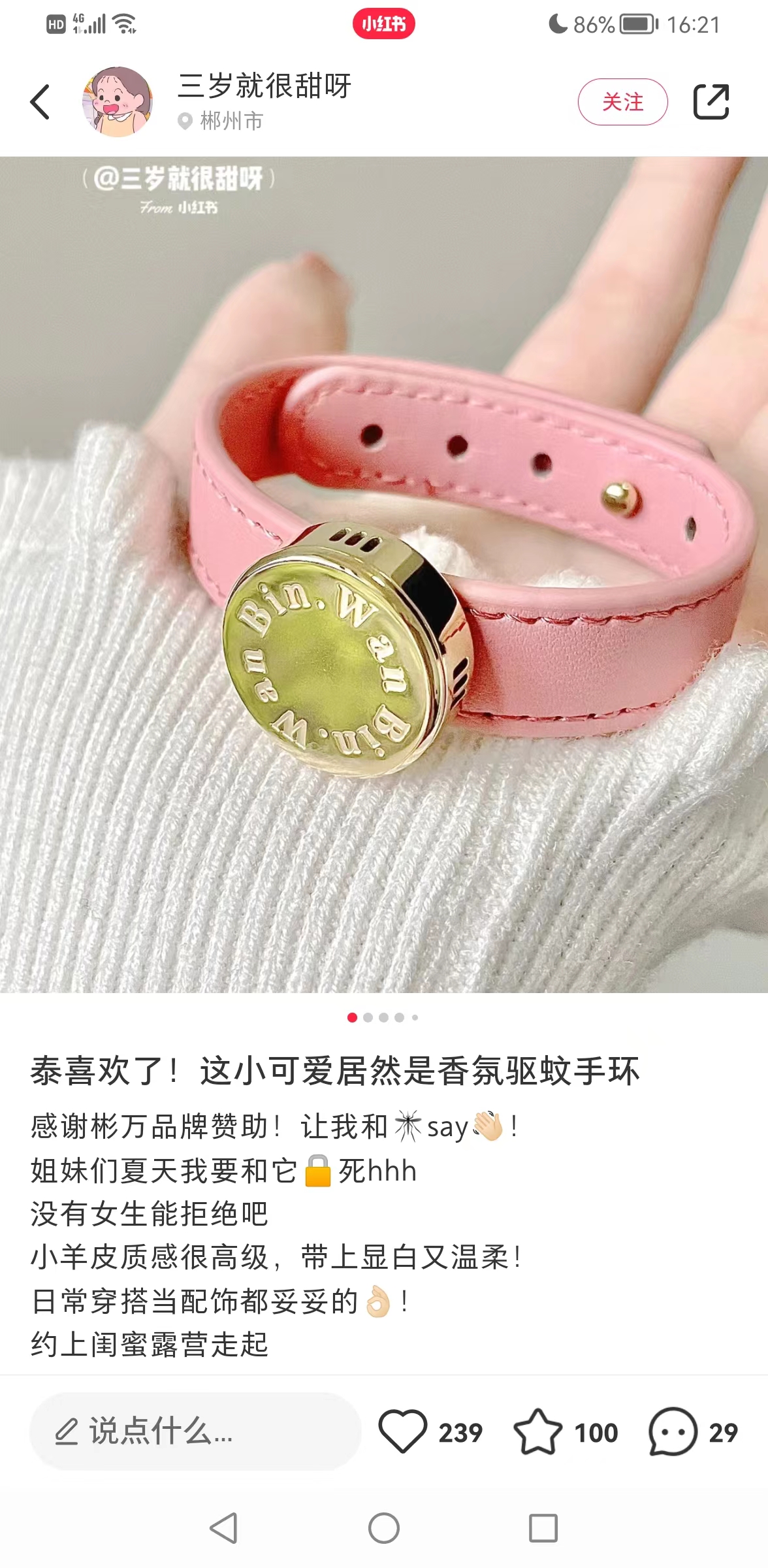 安利一款驱蚊手环,天热了蚊虫马上都要出来了,招蚊体质的姑娘用的上。高颜值,像个手表一样还可以当装饰品,实用好看!