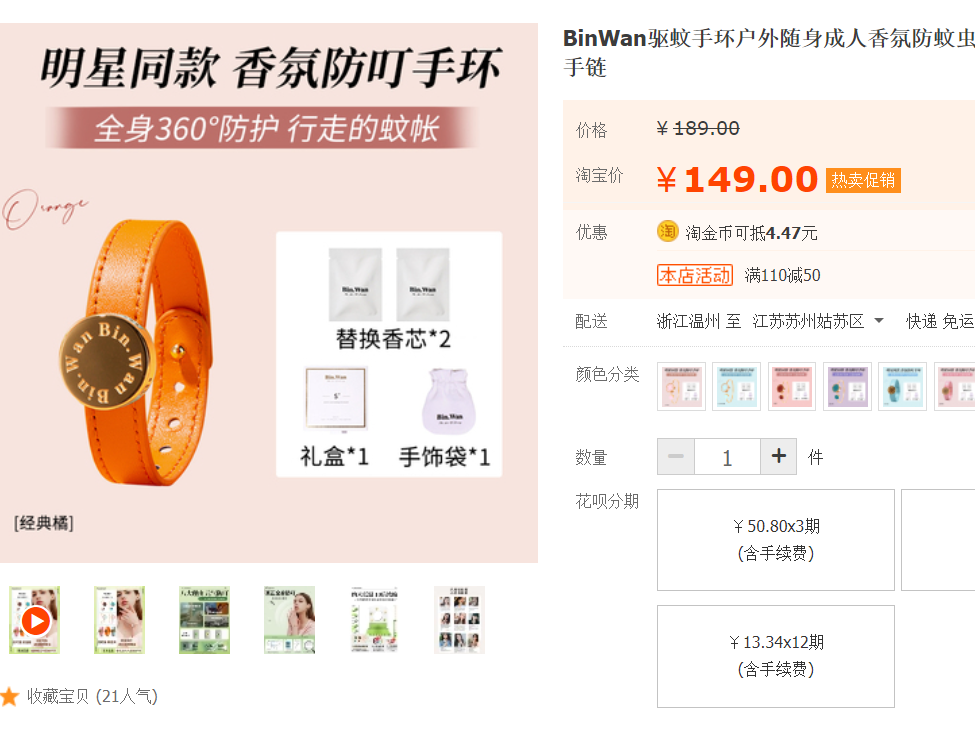 旗下产品中,驱蚊手环是zui受欢迎品类之一!