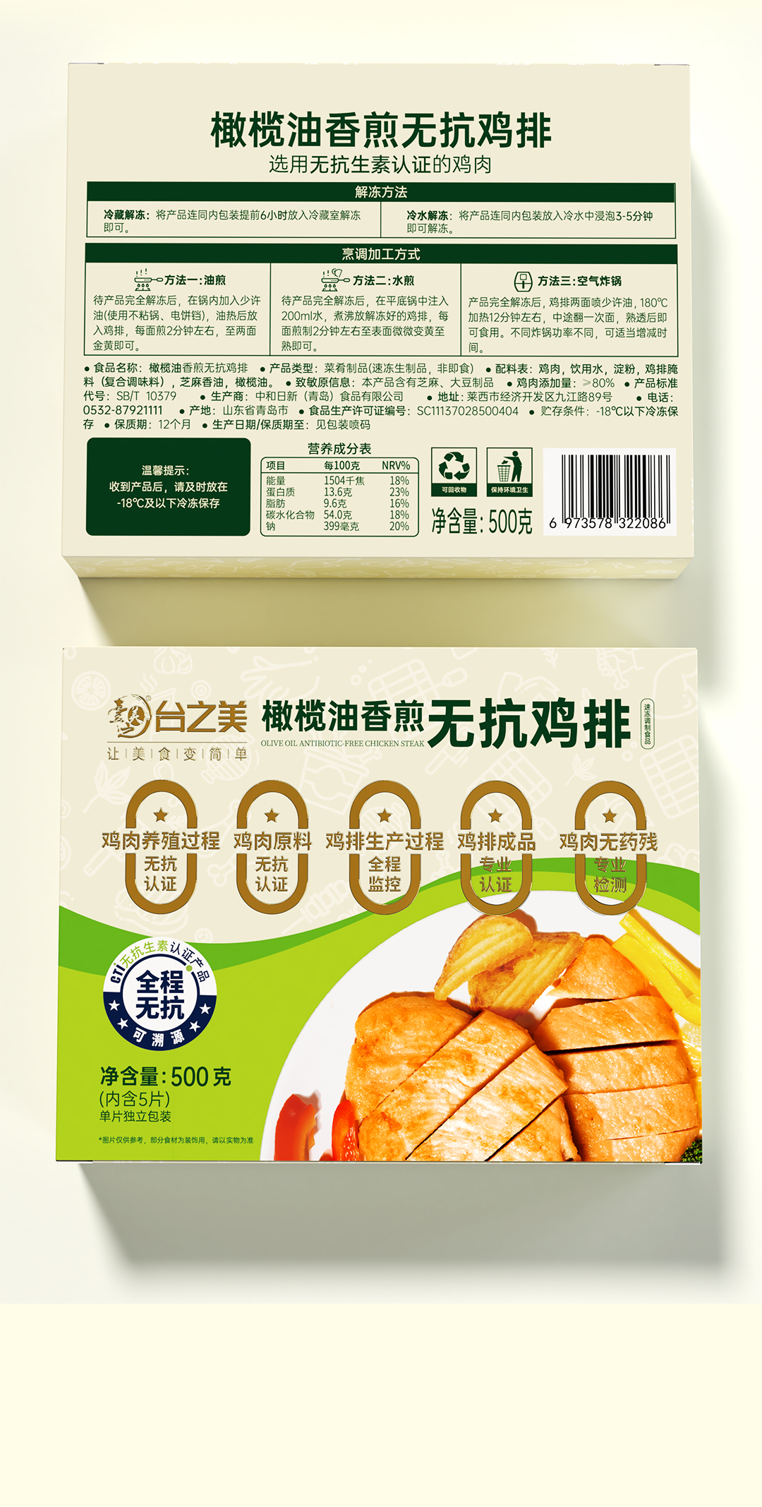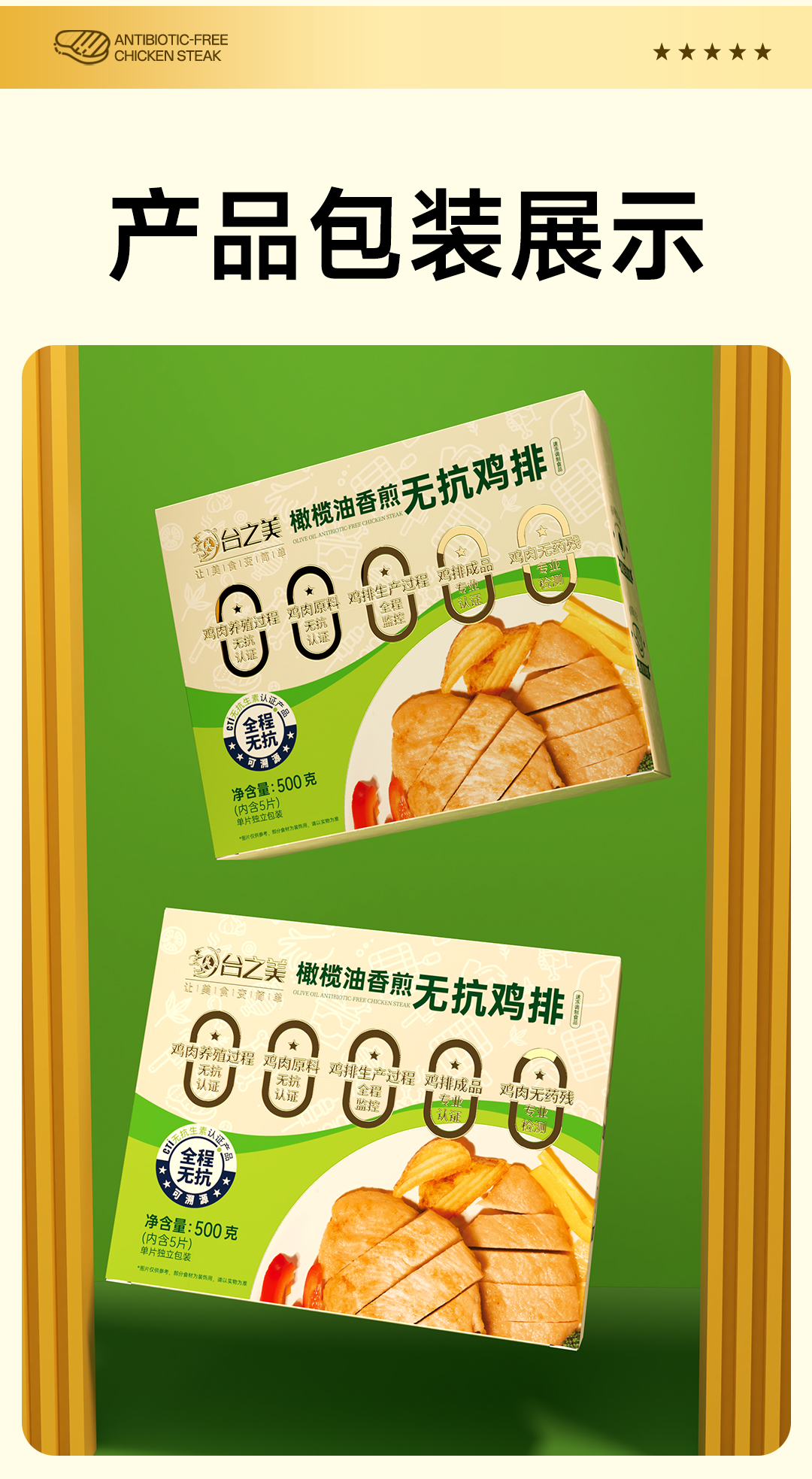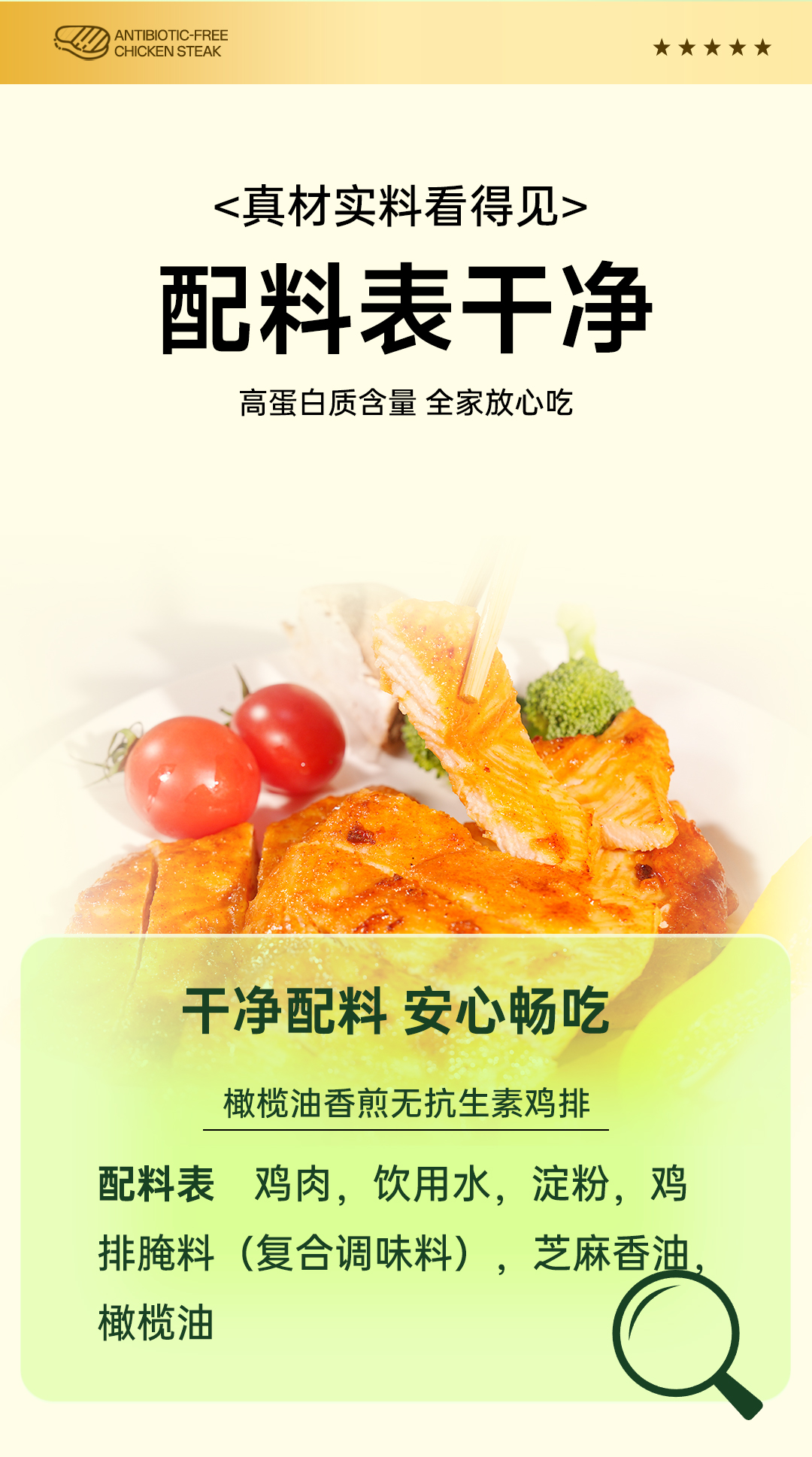 自营(台之美)-【全程无抗生素】橄榄油香煎无抗鸡排鸡胸肉半成品高蛋白轻食鸡肉