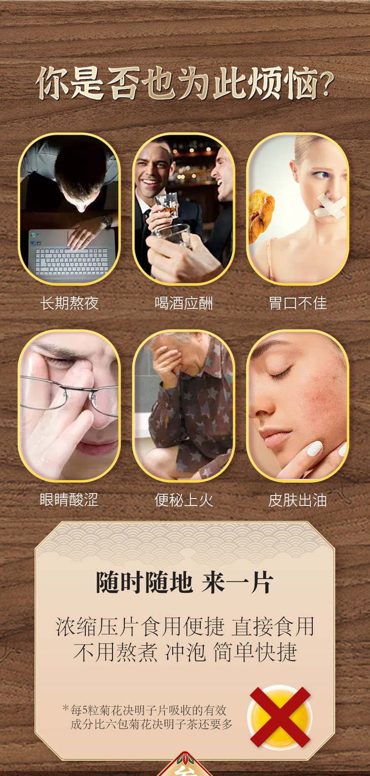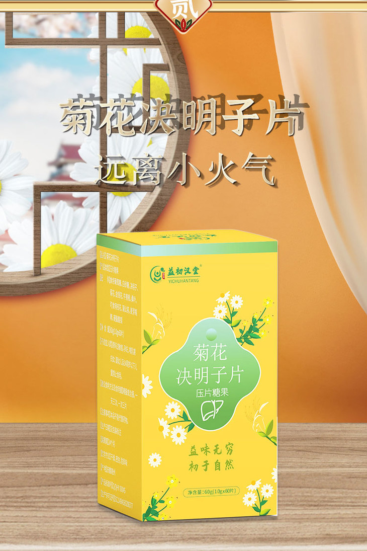 【呵护你的小心“旰”】益初汉堂菊花决明子片 精选7味草本10倍浓缩精华 呵护旰脏滋养身体 加班熬夜面黄长痘 肚子赘肉饮食不规律 肝养甘片压片糖果60片/盒