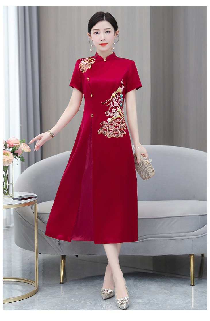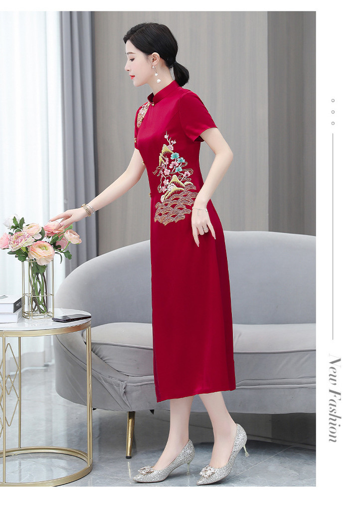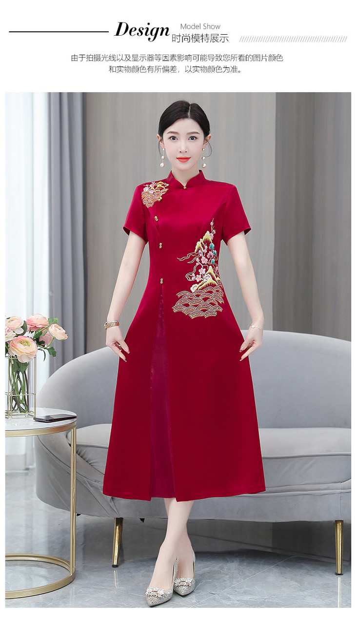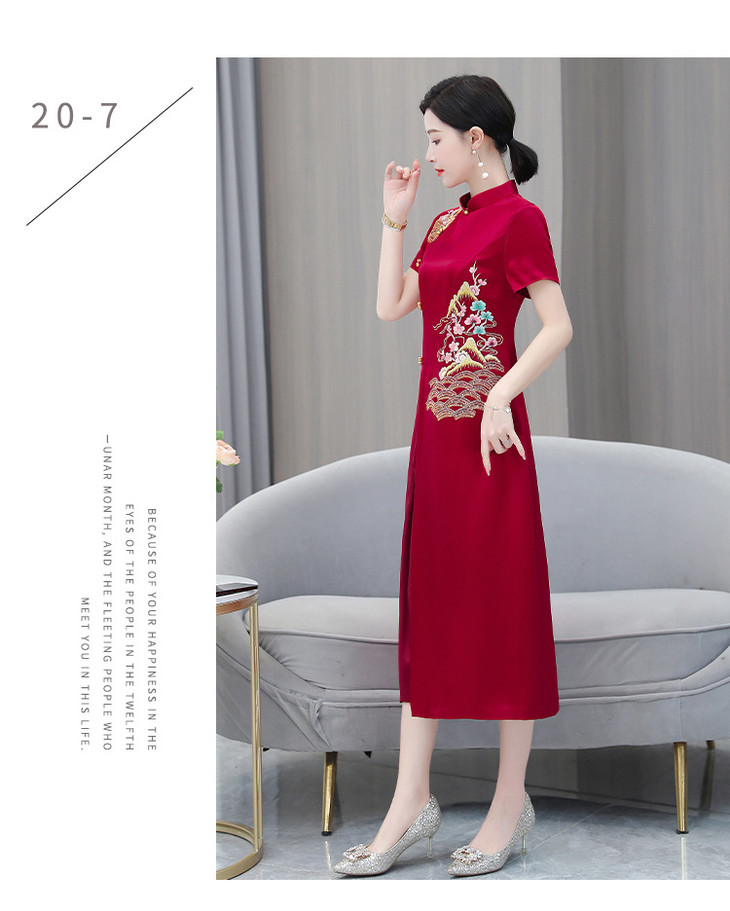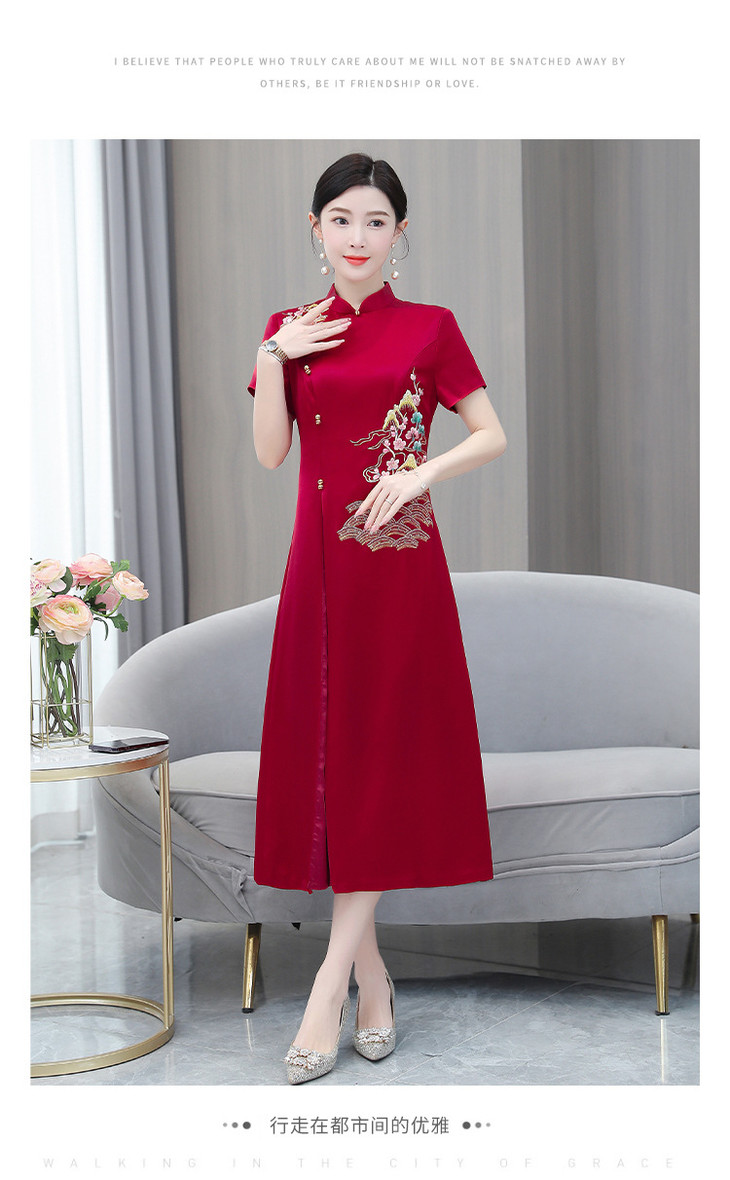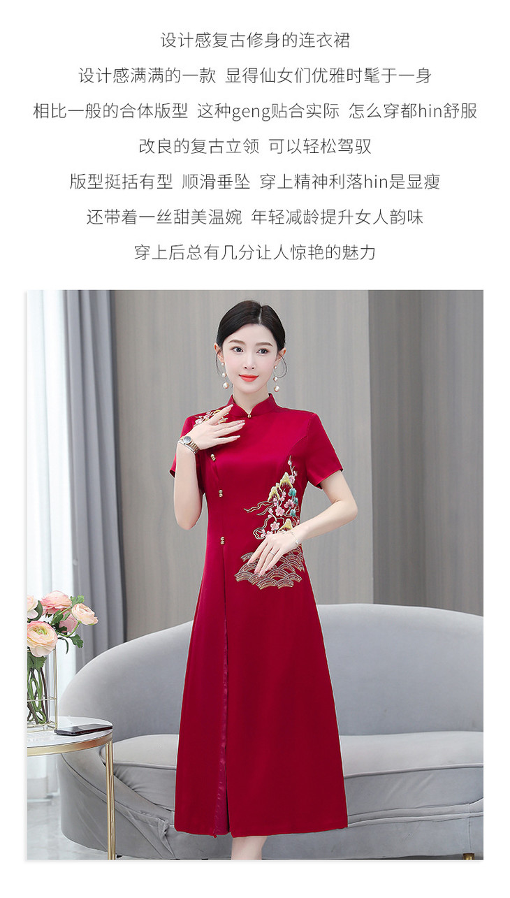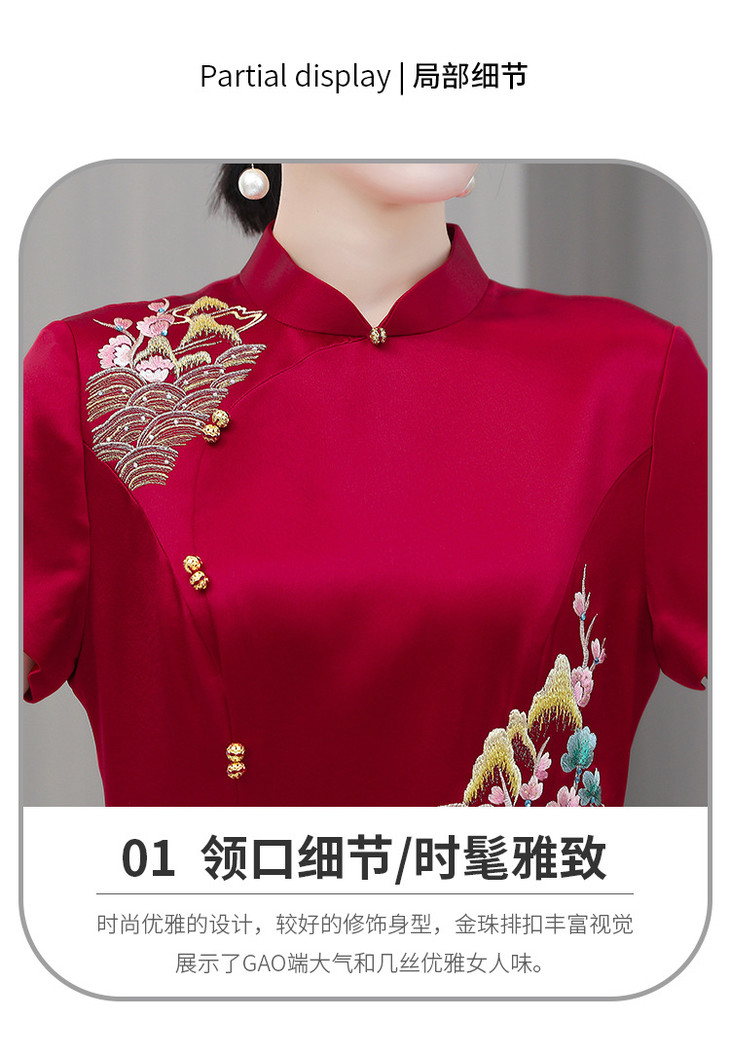 婚宴装绣花连衣裙2023夏季新款时尚洋气优雅复古修身显瘦长裙AHM-yhfs7543