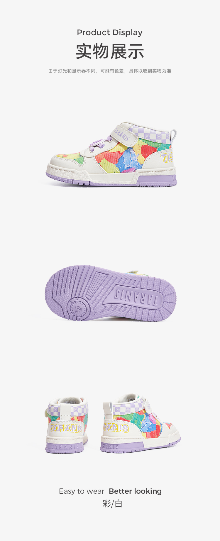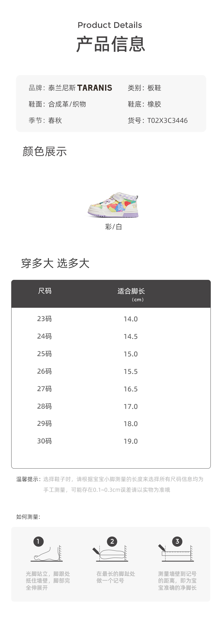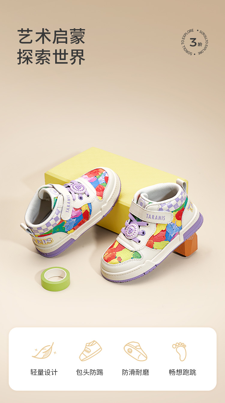 泰兰尼斯秋季小童段七彩涂鸦运动板鞋 T02X3C3446