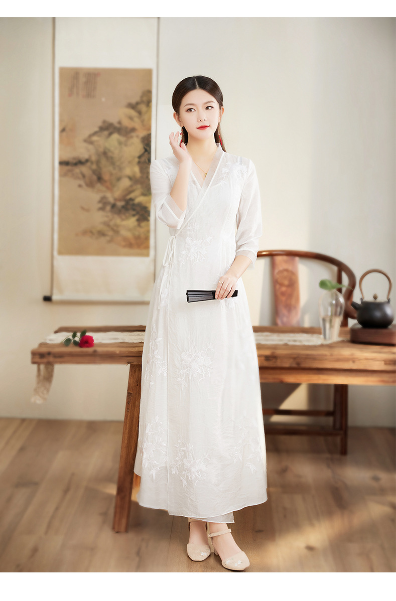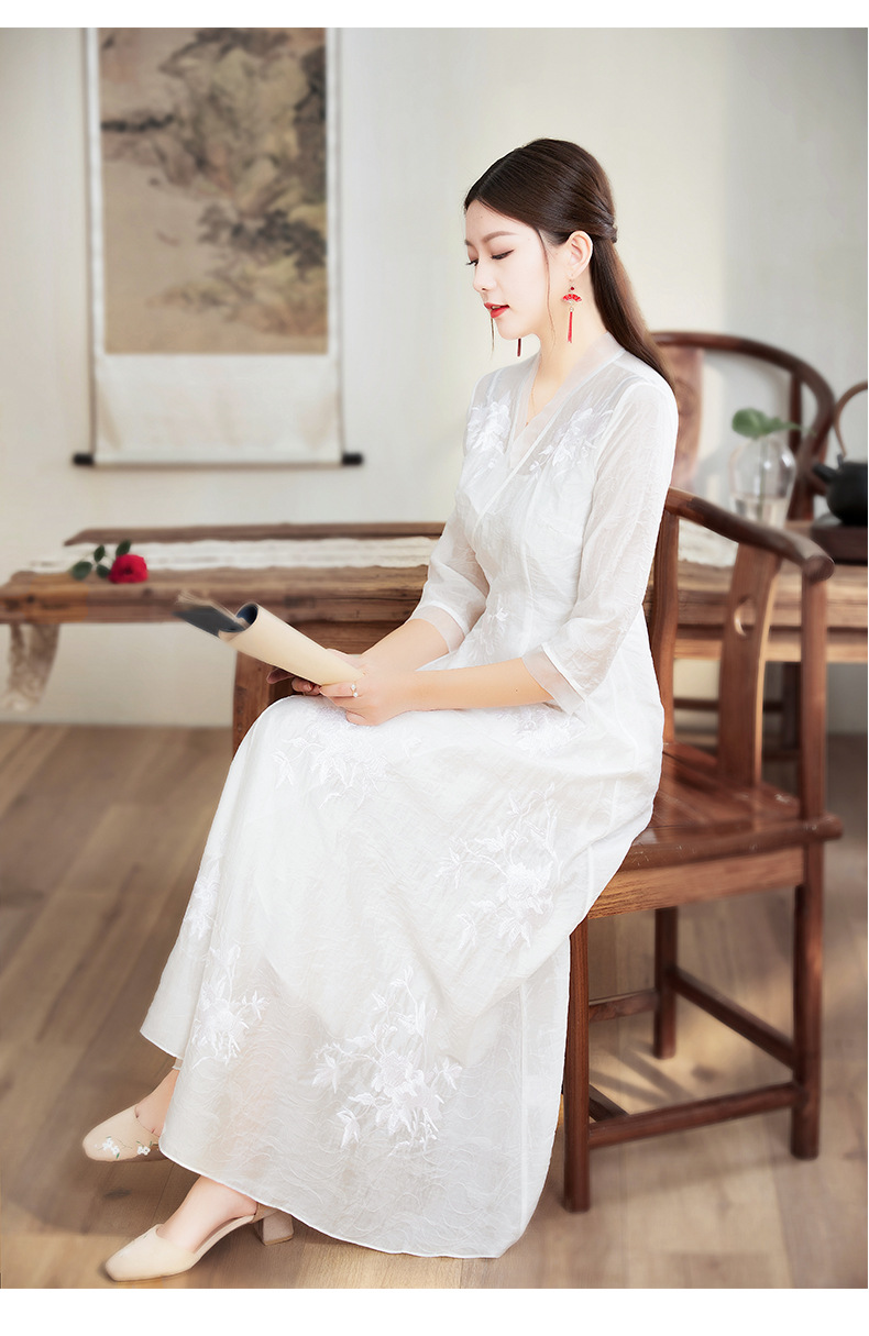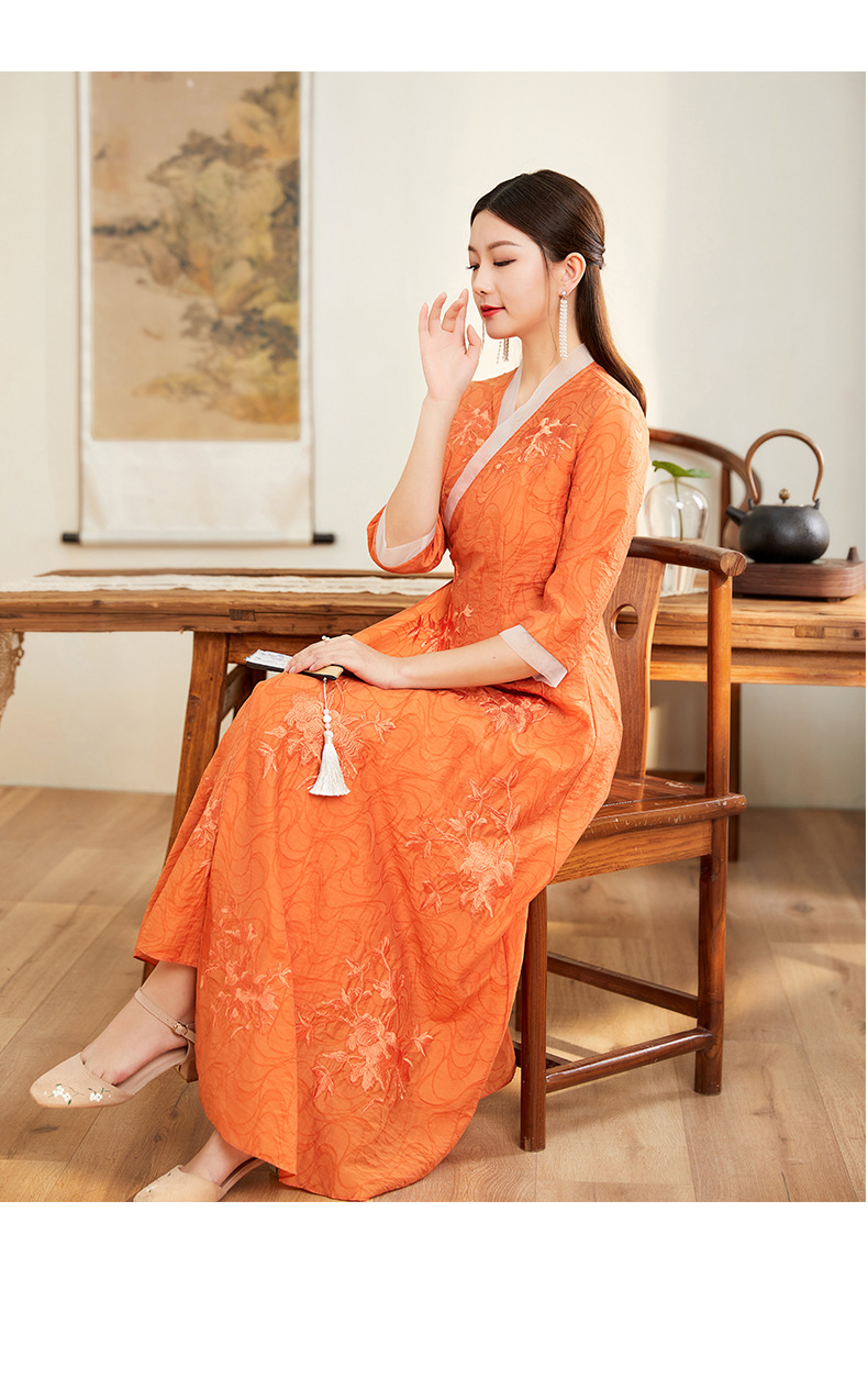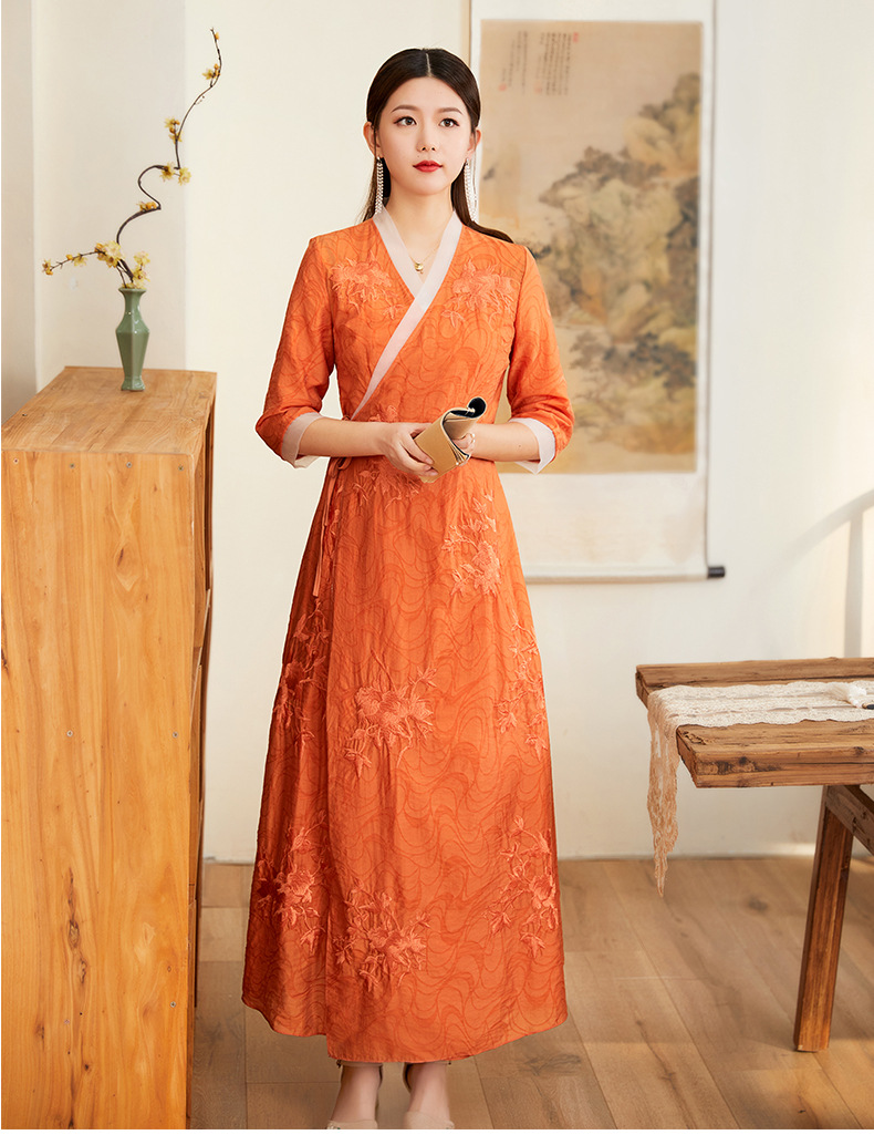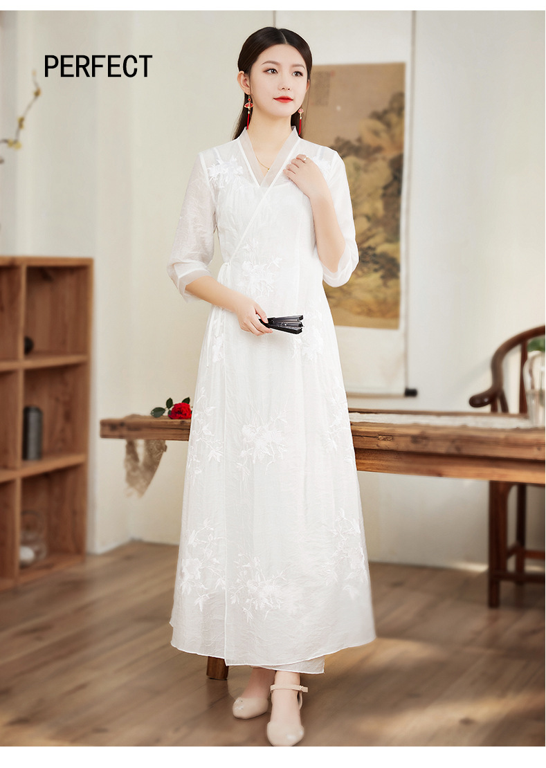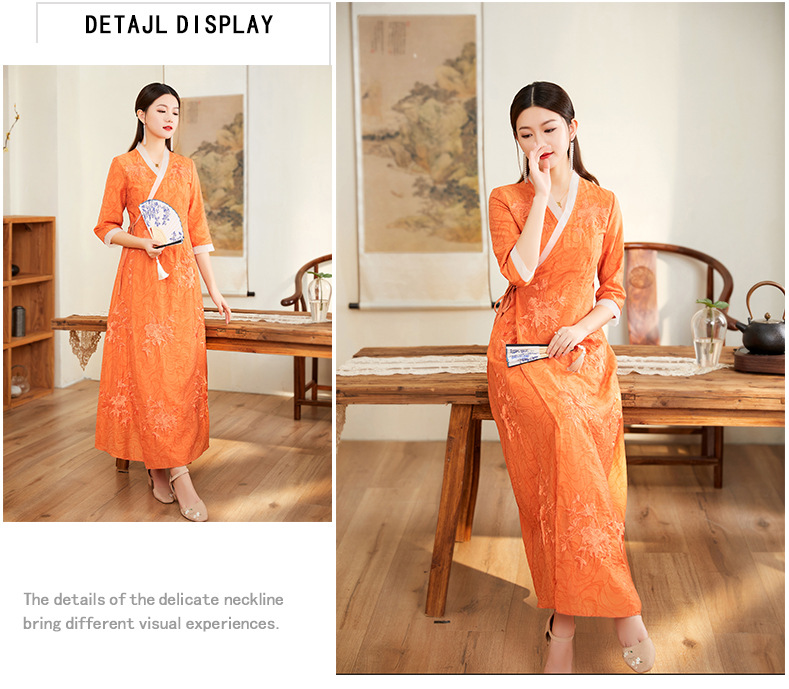 中国风复古禅意茶服改良旗袍连衣裙FL-6307