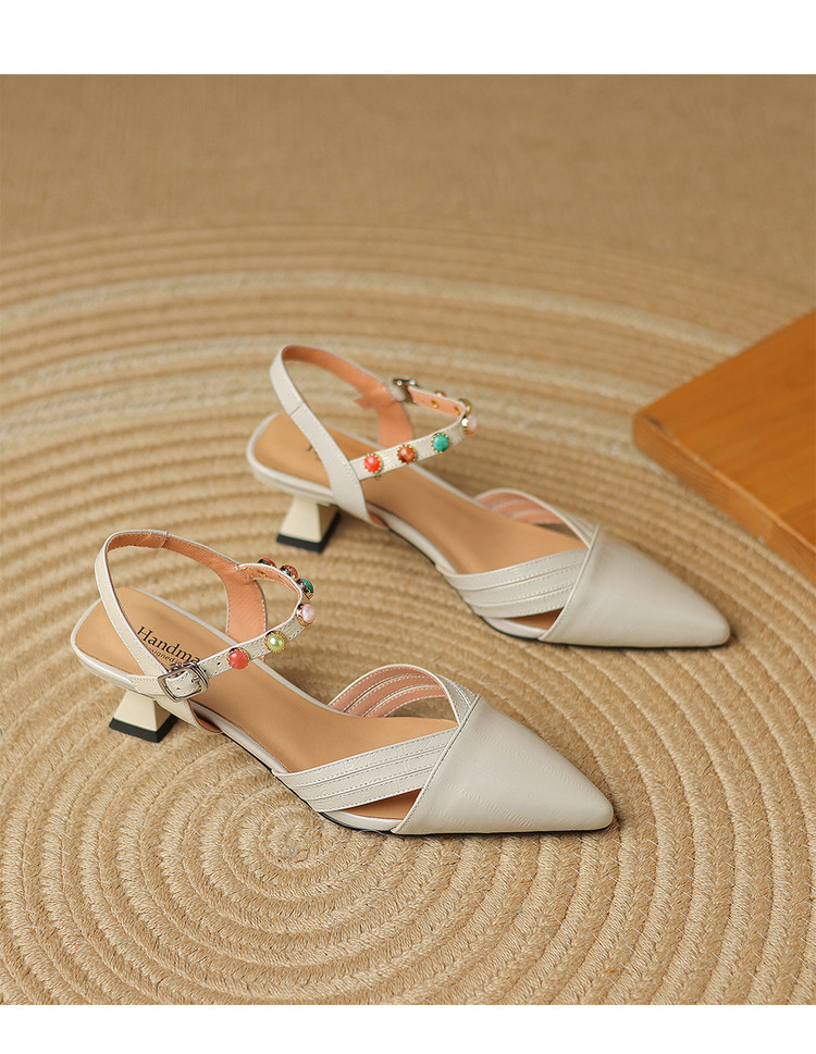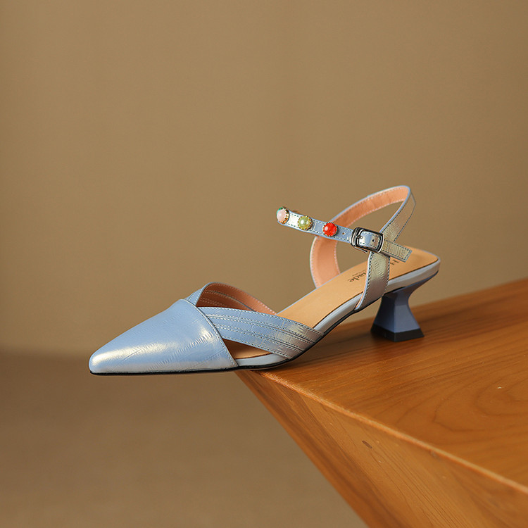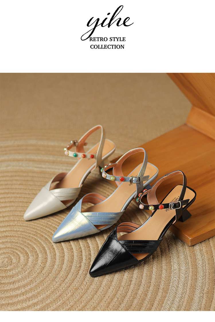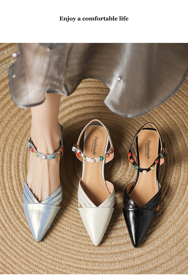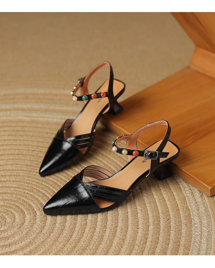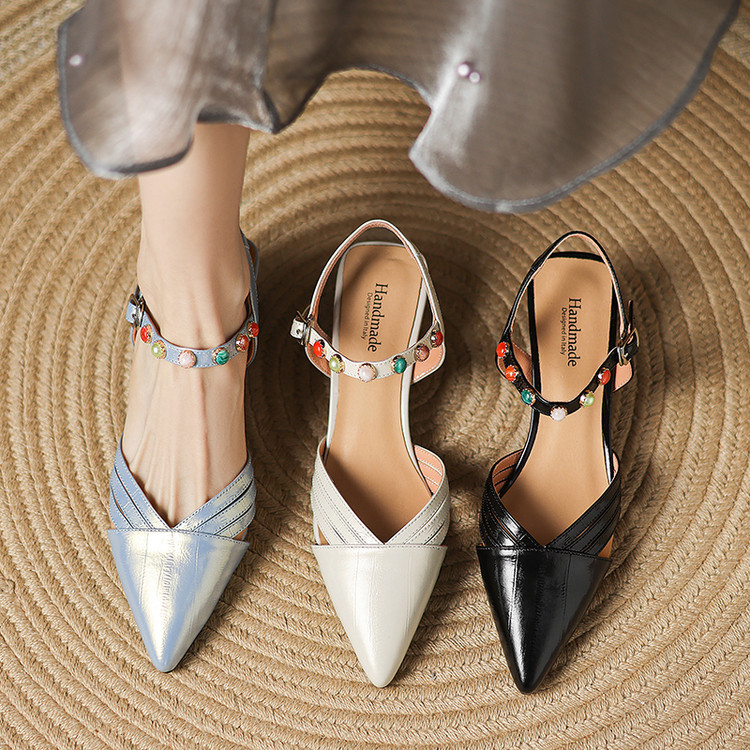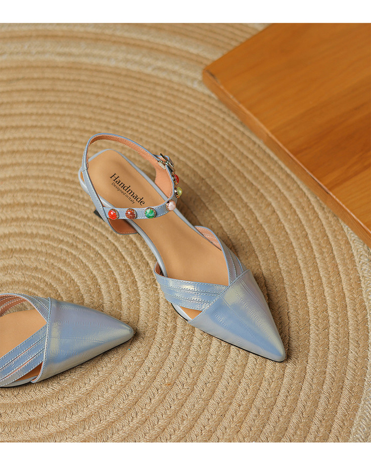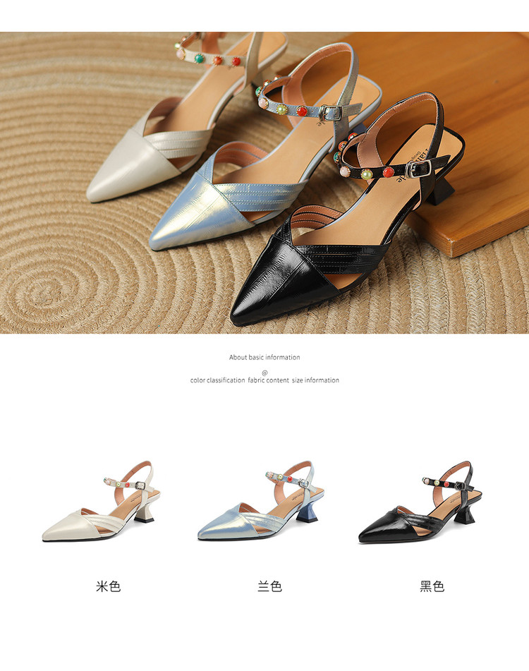 【预售5天】兰色尖头凉鞋女款夏季高跟鞋女粗跟镂空法式气质一字带包头单鞋女LD&7346